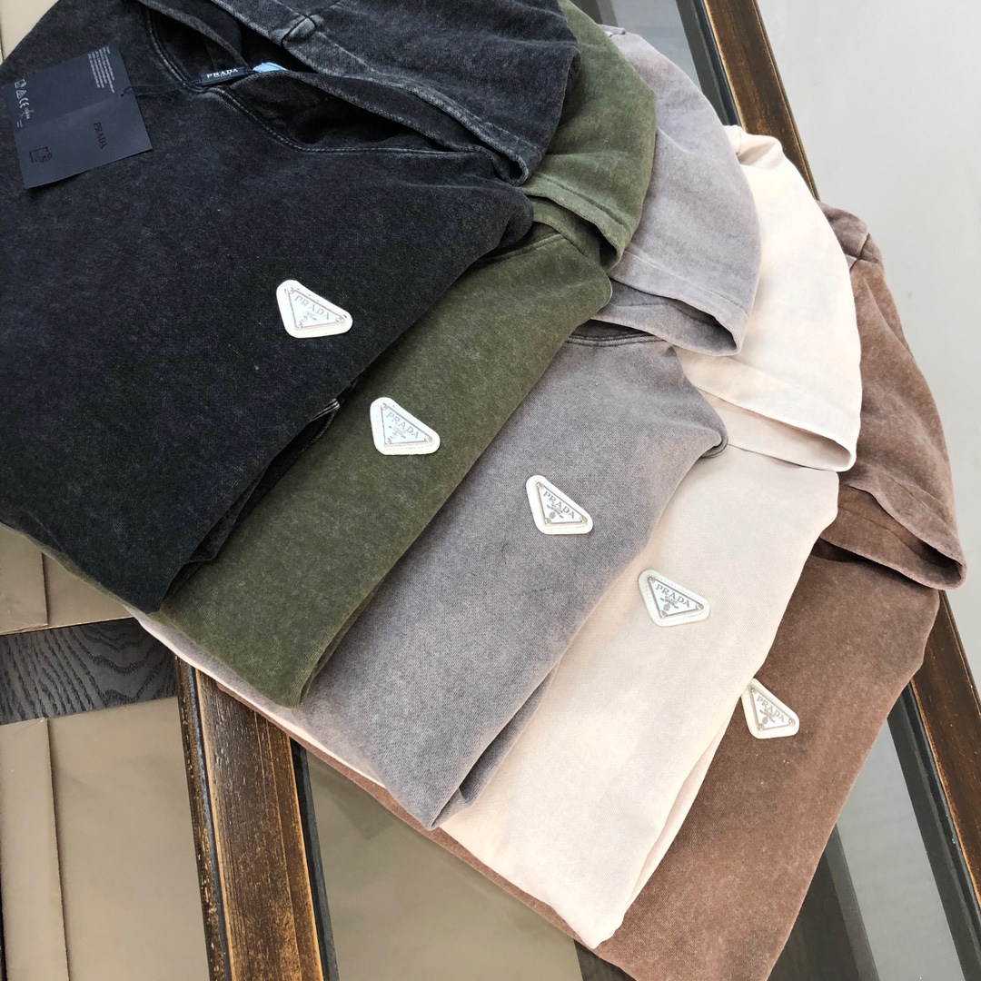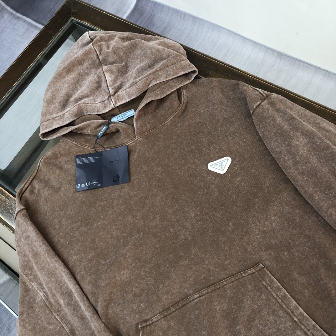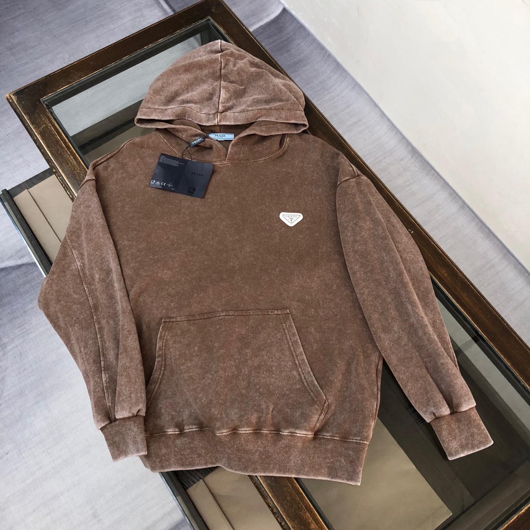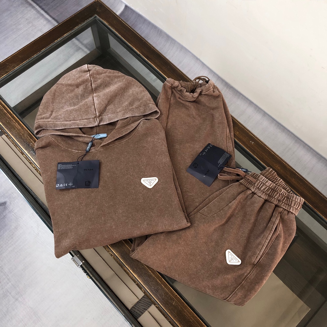 Prada 2025 early autumn couple's washed hoodie & straight-leg pants set. Top quality, custom fabric, breathable. Vintage wash, Italian import. Sizes S-XXL (oversized fit).