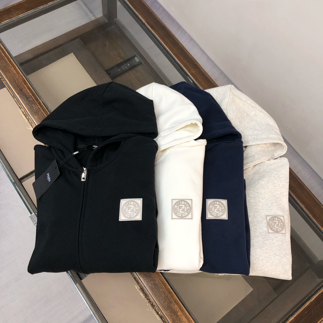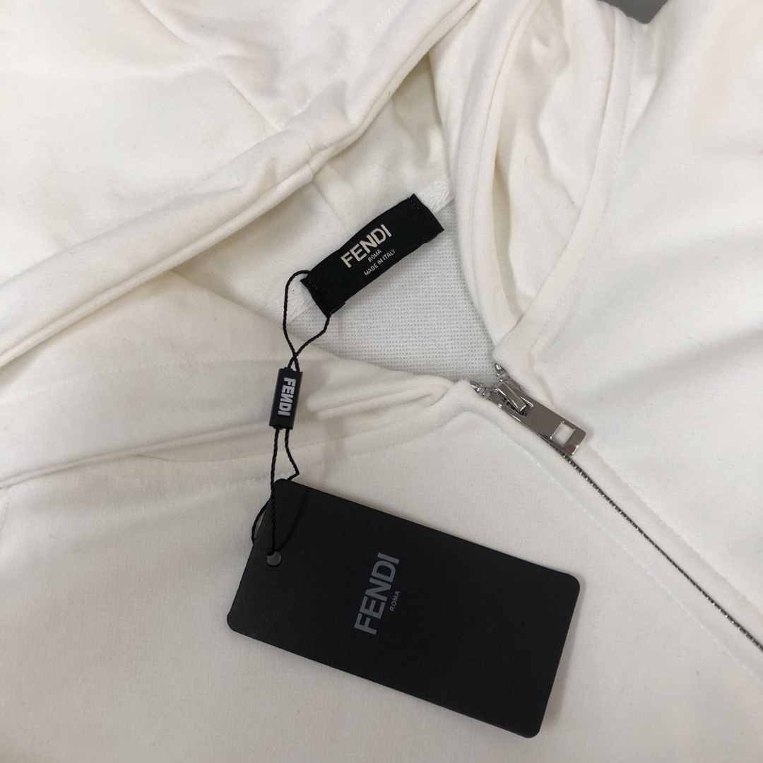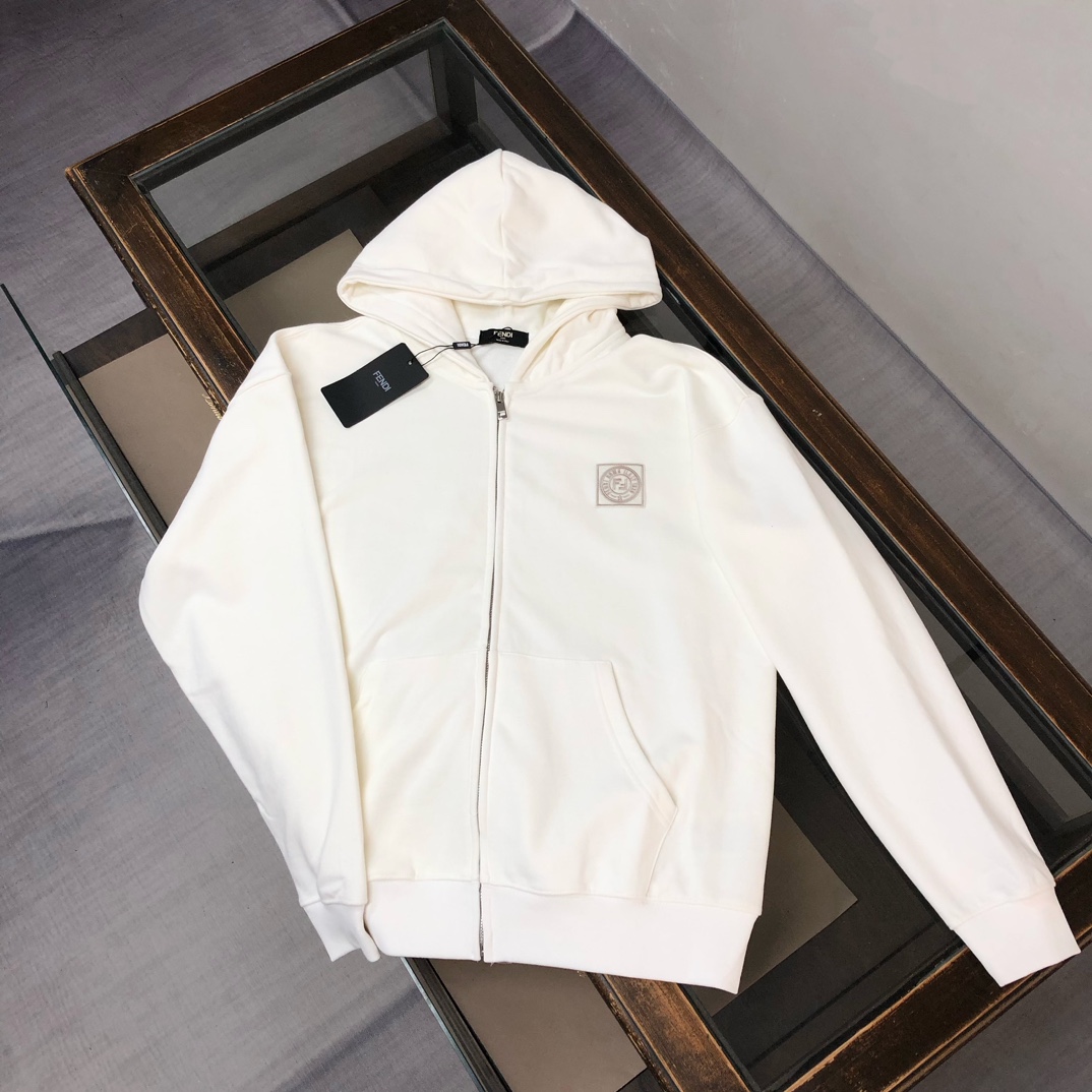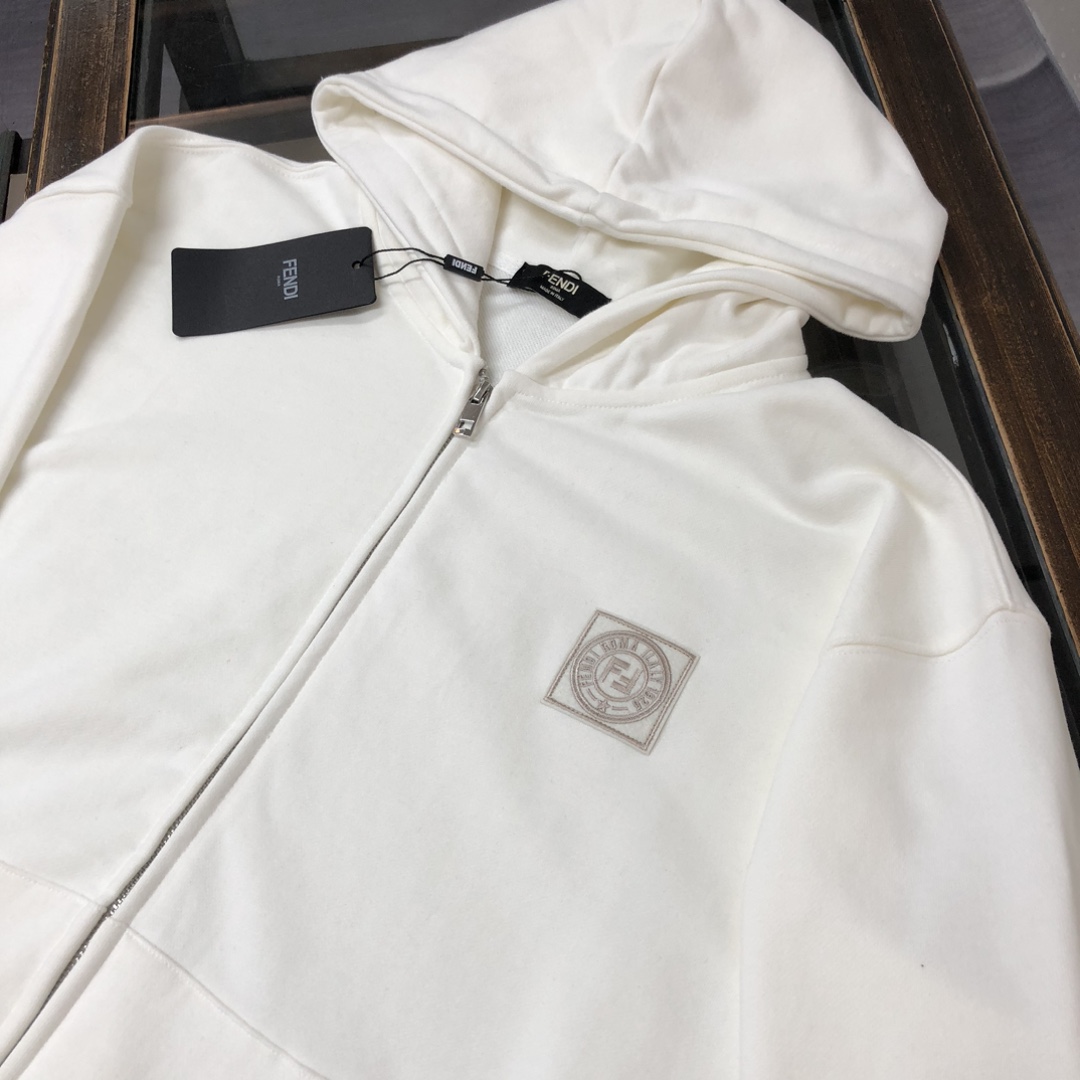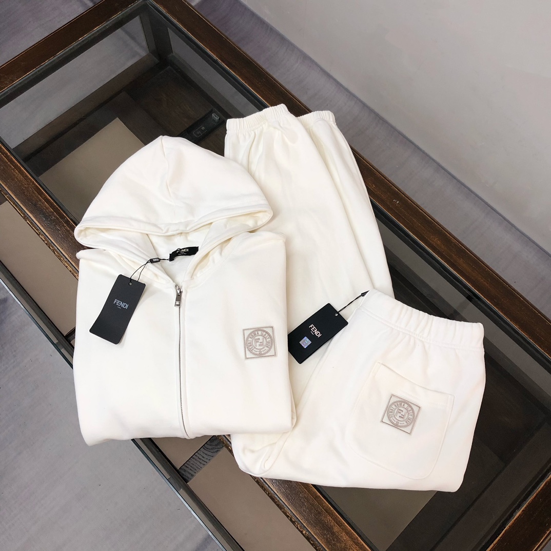 FENDI 2025 early autumn hoodie and sweatpants set. Custom 420g cotton, breathable fabric. Colors: black, white, blue, gray. Sizes: S to XXL.