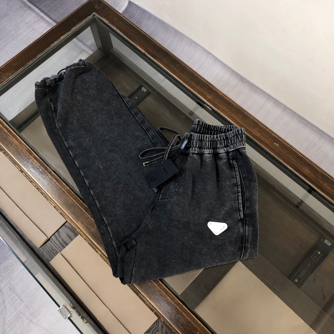 Prada 2025 early autumn couples washed hoodie & straight-leg pants set. Top quality, custom fabric, 3D cut, vintage wash. Sizes S-XXL (oversized).
