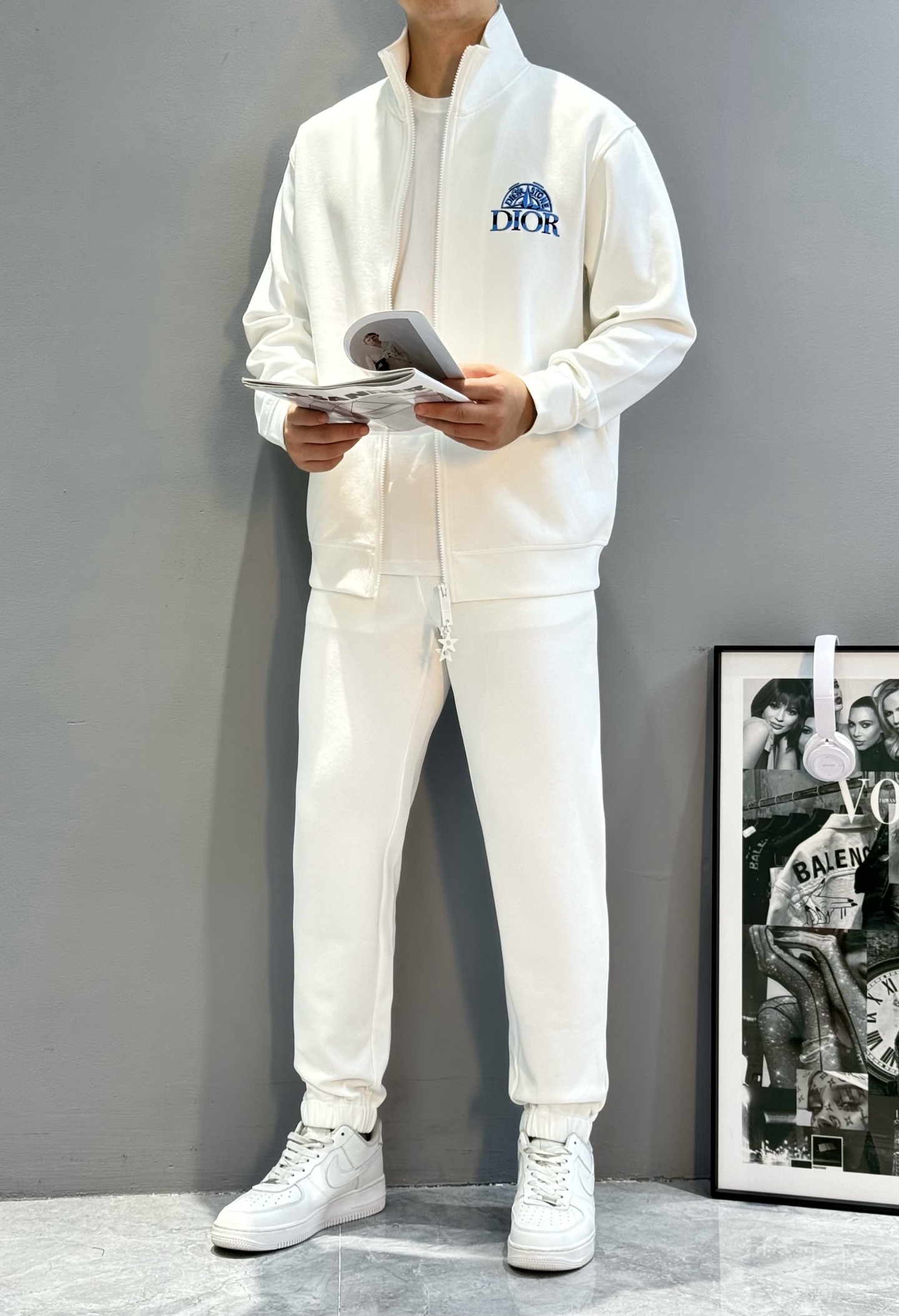 Dior 2025s leisure lyocell set. Detachable. Boutique sync. Logo details, trendy. Slim cuffs, metal zipper. Colors: white, black. Sizes: M-3XL.
