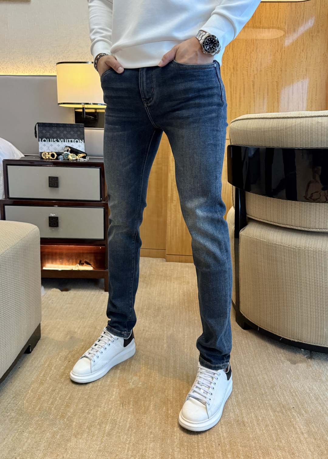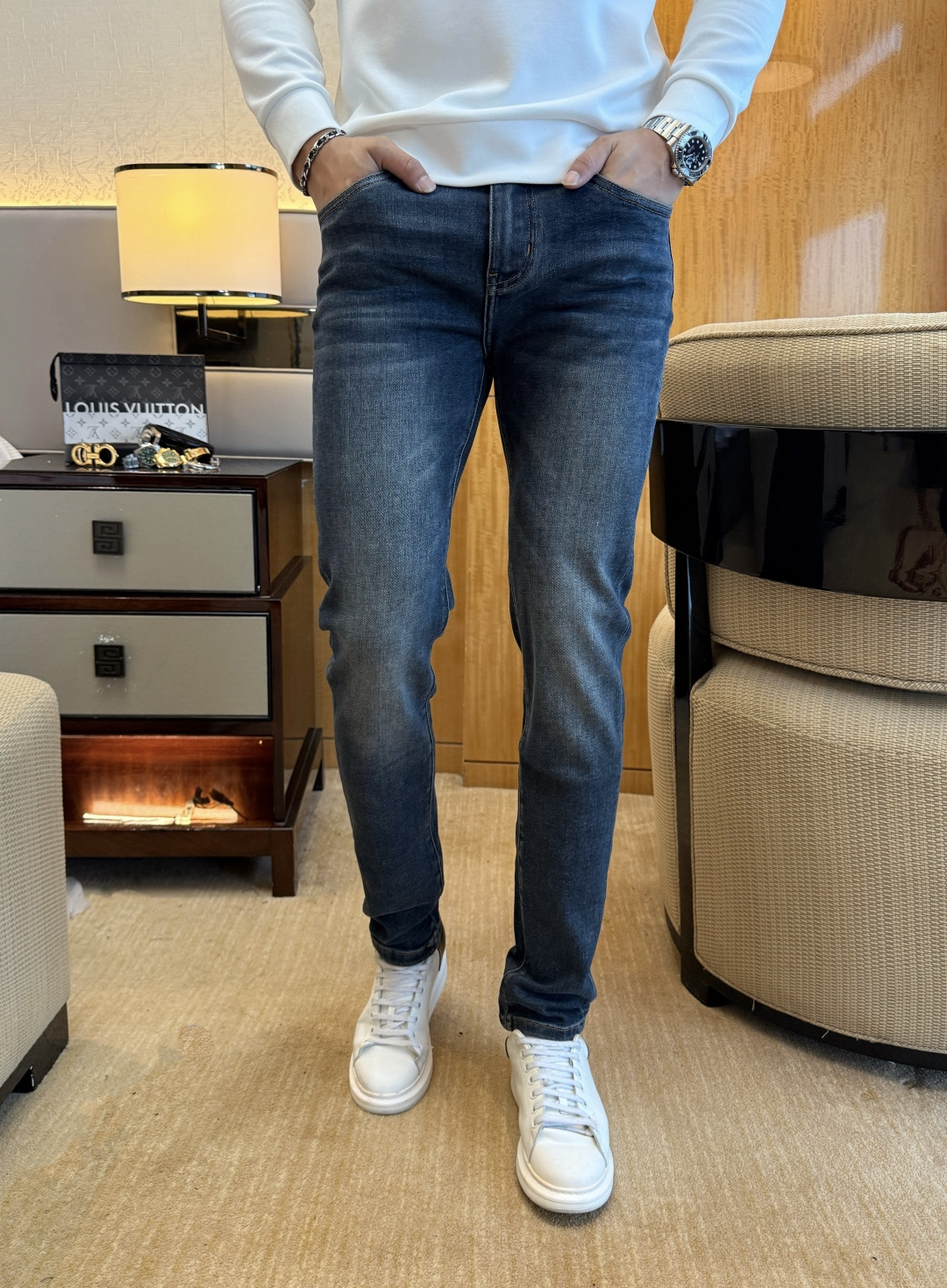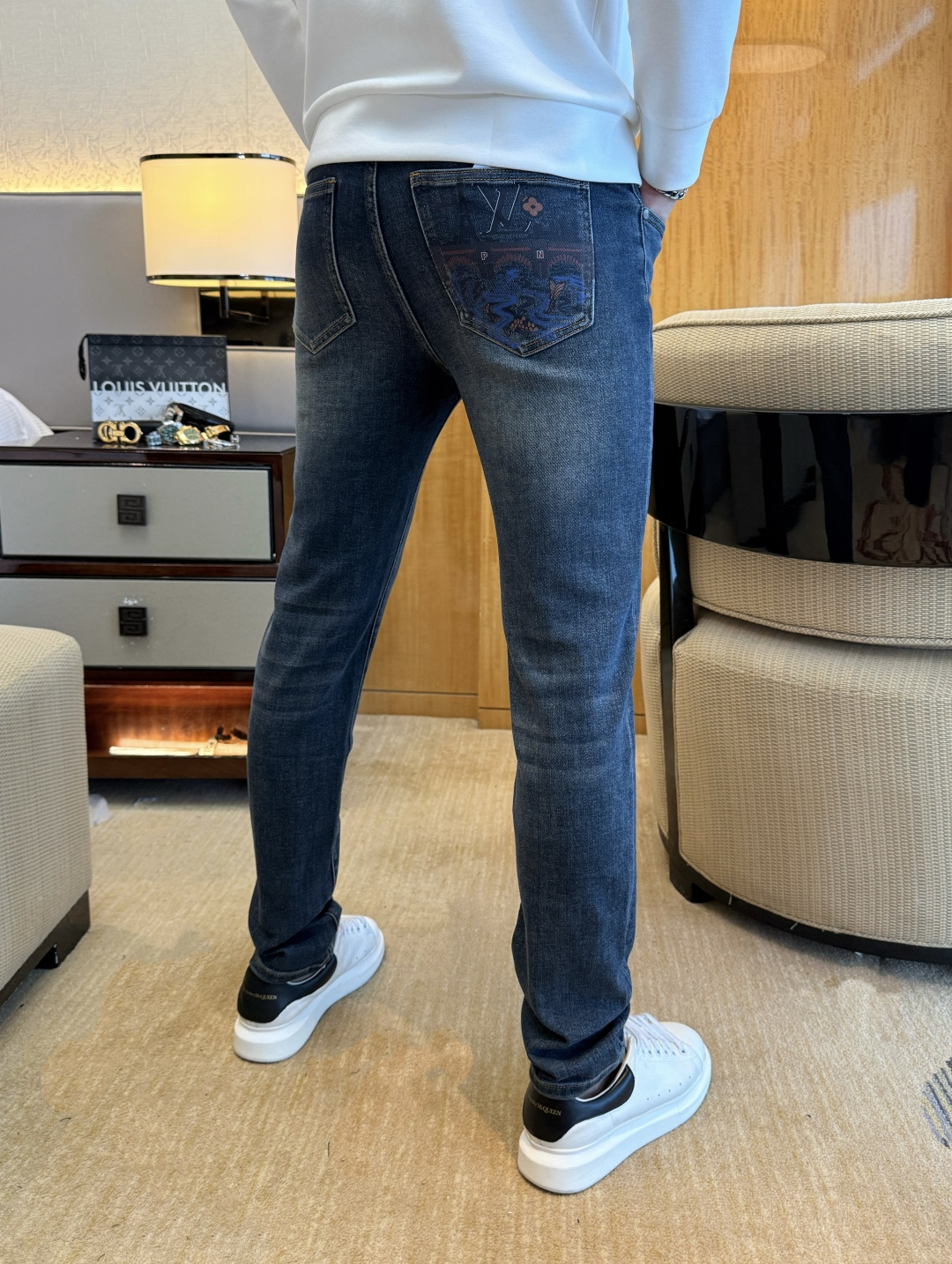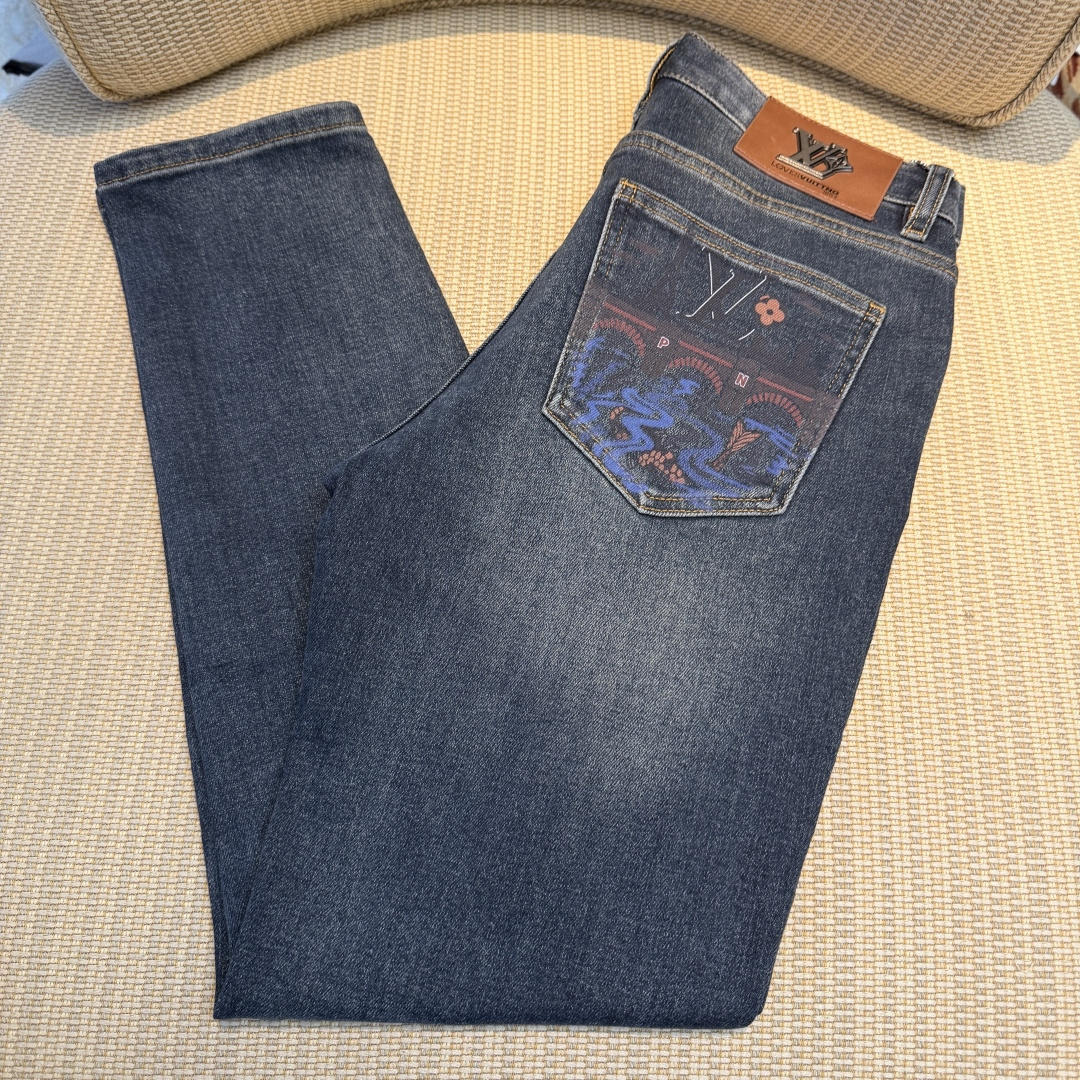 LV 2025SS Snake Year Autumn/Winter jeans. 1:1 replica, essential daily choice. Custom imported denim, complex craftsmanship. Soft, stretchy, comfortable. Sizes 29-38.