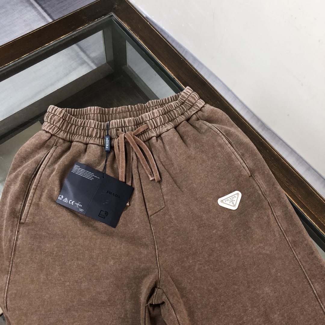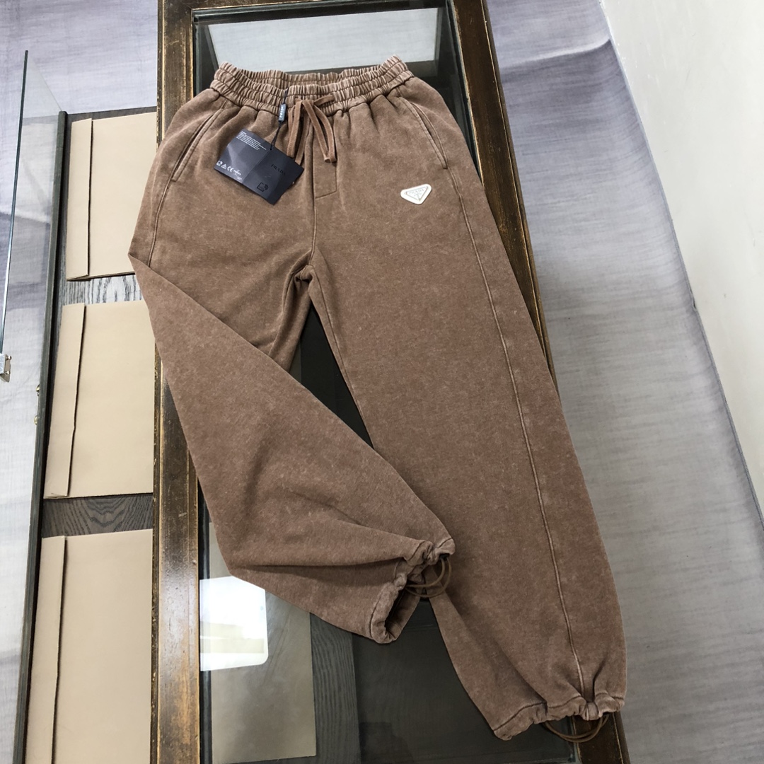 Prada 2025 early autumn couple's washed hoodie & straight-leg pants set. Top quality, custom fabric, 3D cut, vintage wash. Sizes S-XXL (oversized).