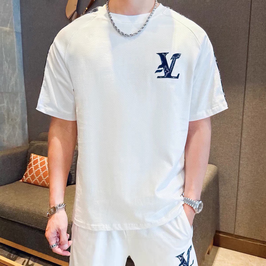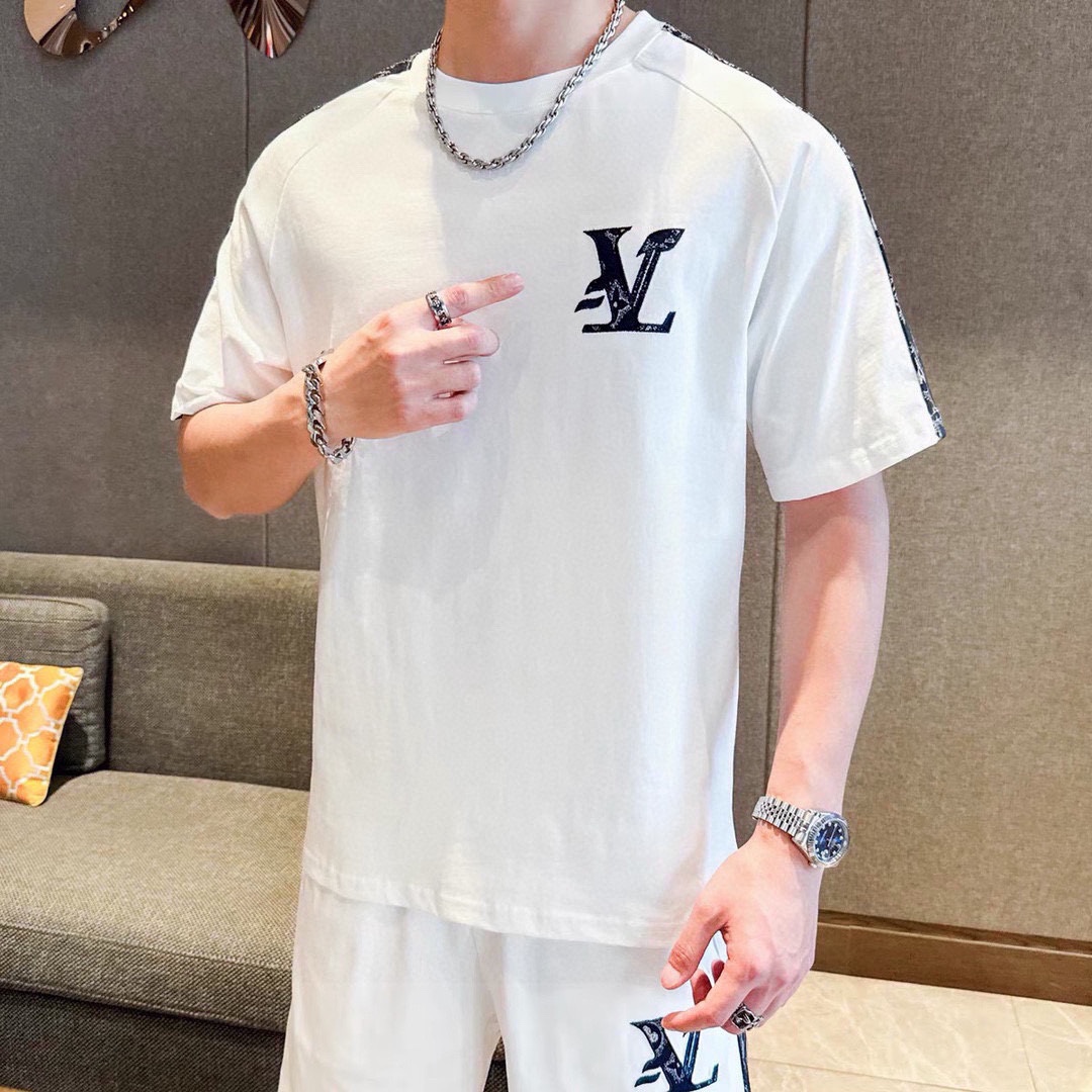 Official Louis Vuitton men's summer short sleeve and shorts set. High quality, imported fabric, fashionable and versatile. Sizes M-4XL.