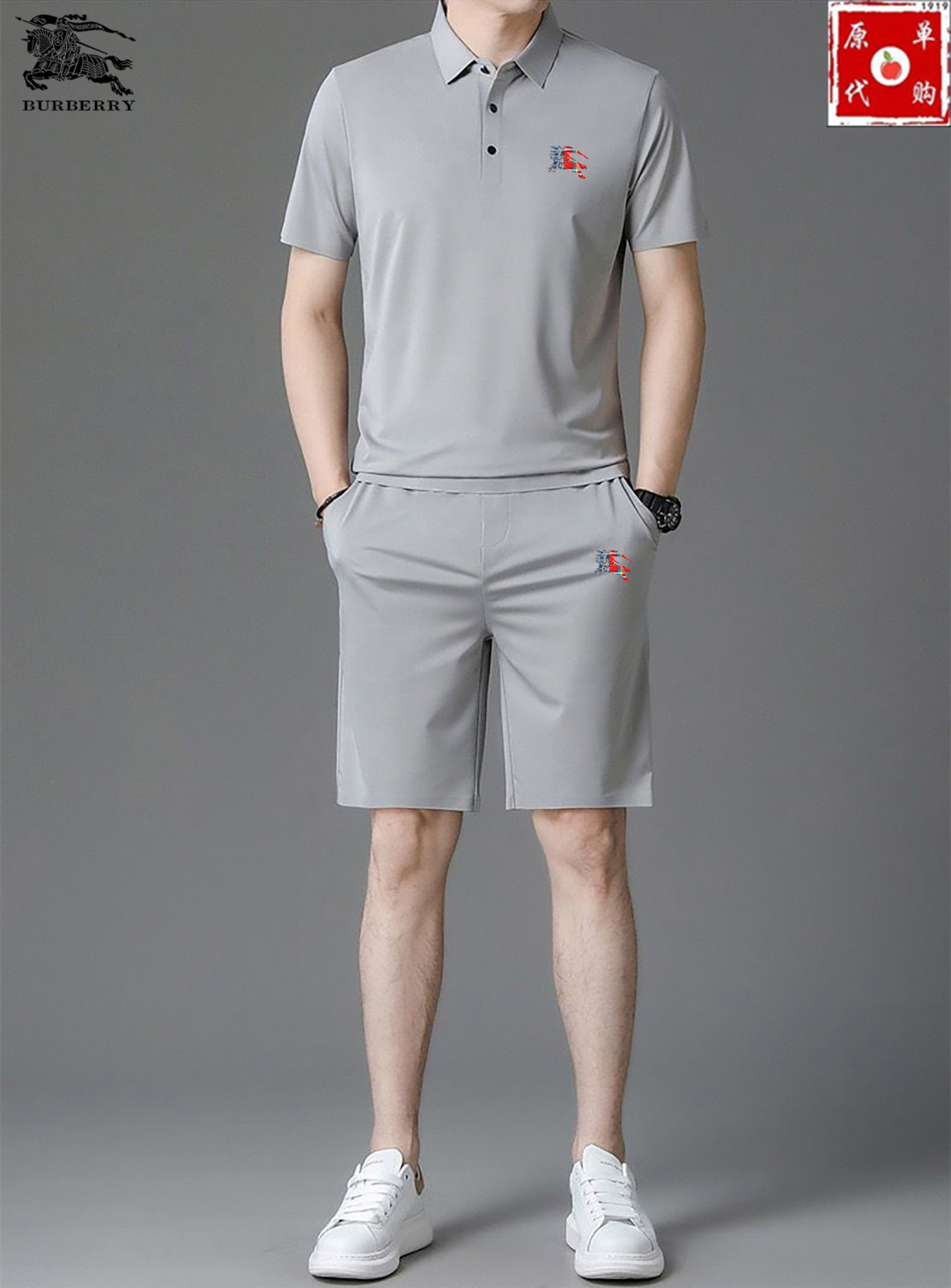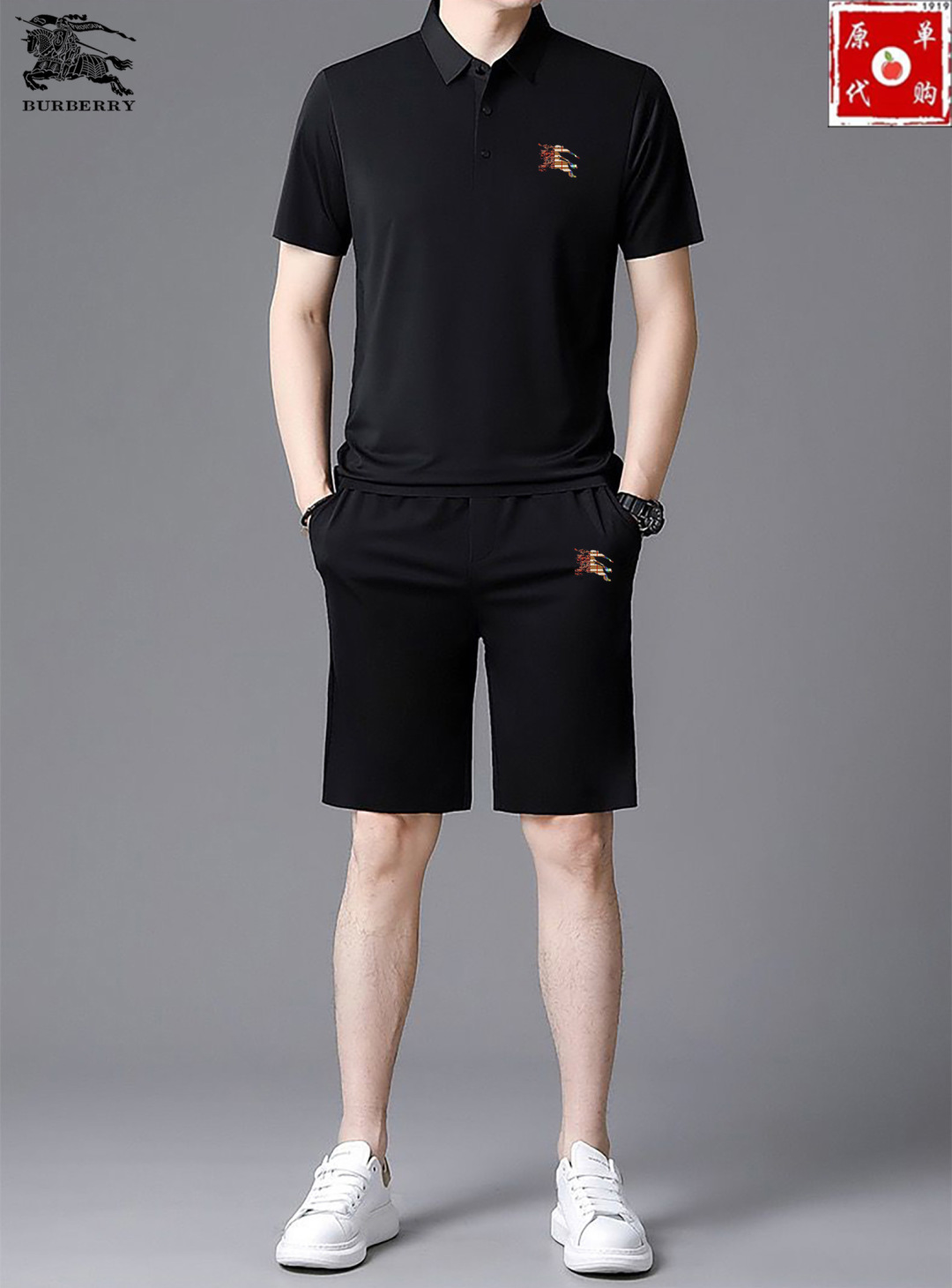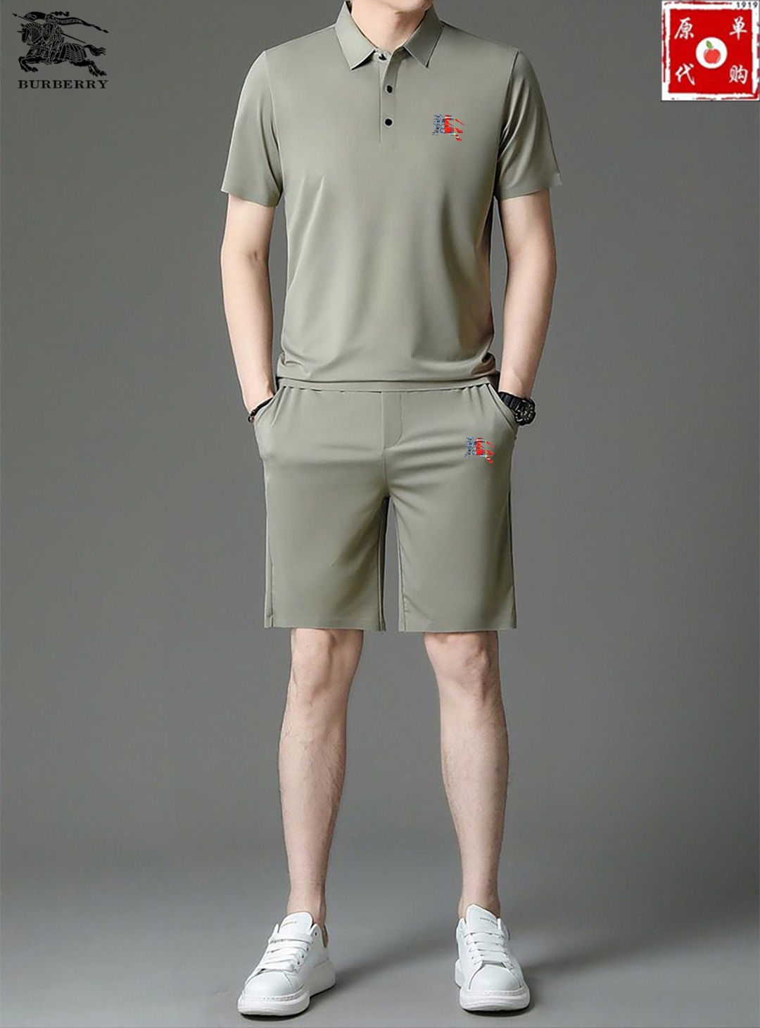 BURBERRY summer shorts set. Silk fabric, 2025 SS Milan runway style. Real photos, premium quality. Sizes M-4XL. Comfortable, luxurious Italian custom texture. Versatile design.