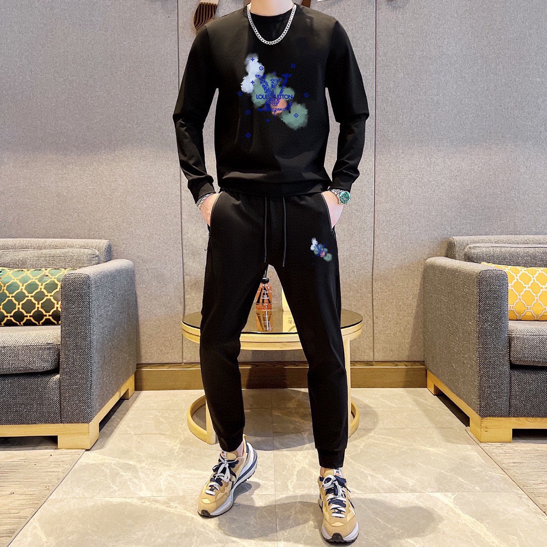 LV Louis Vuitton plus-size sweatsuit set. 2025 new designer hoodie set. Premium Roman cotton, comfortable fit. Sizes M-5XL (up to 220kg).