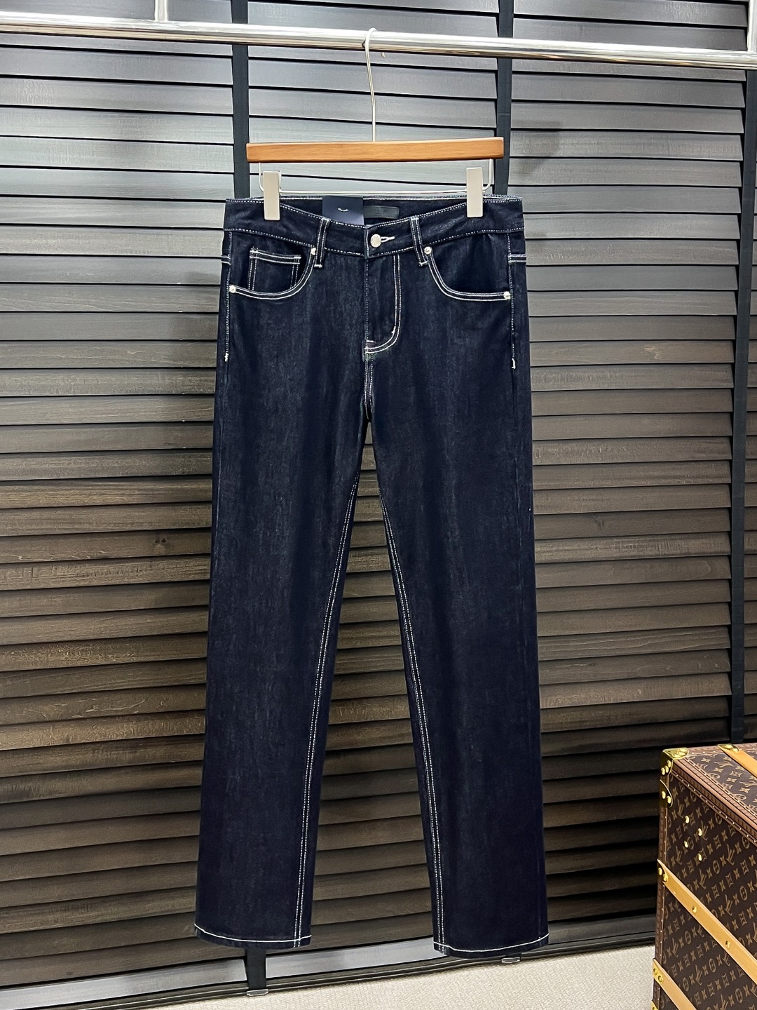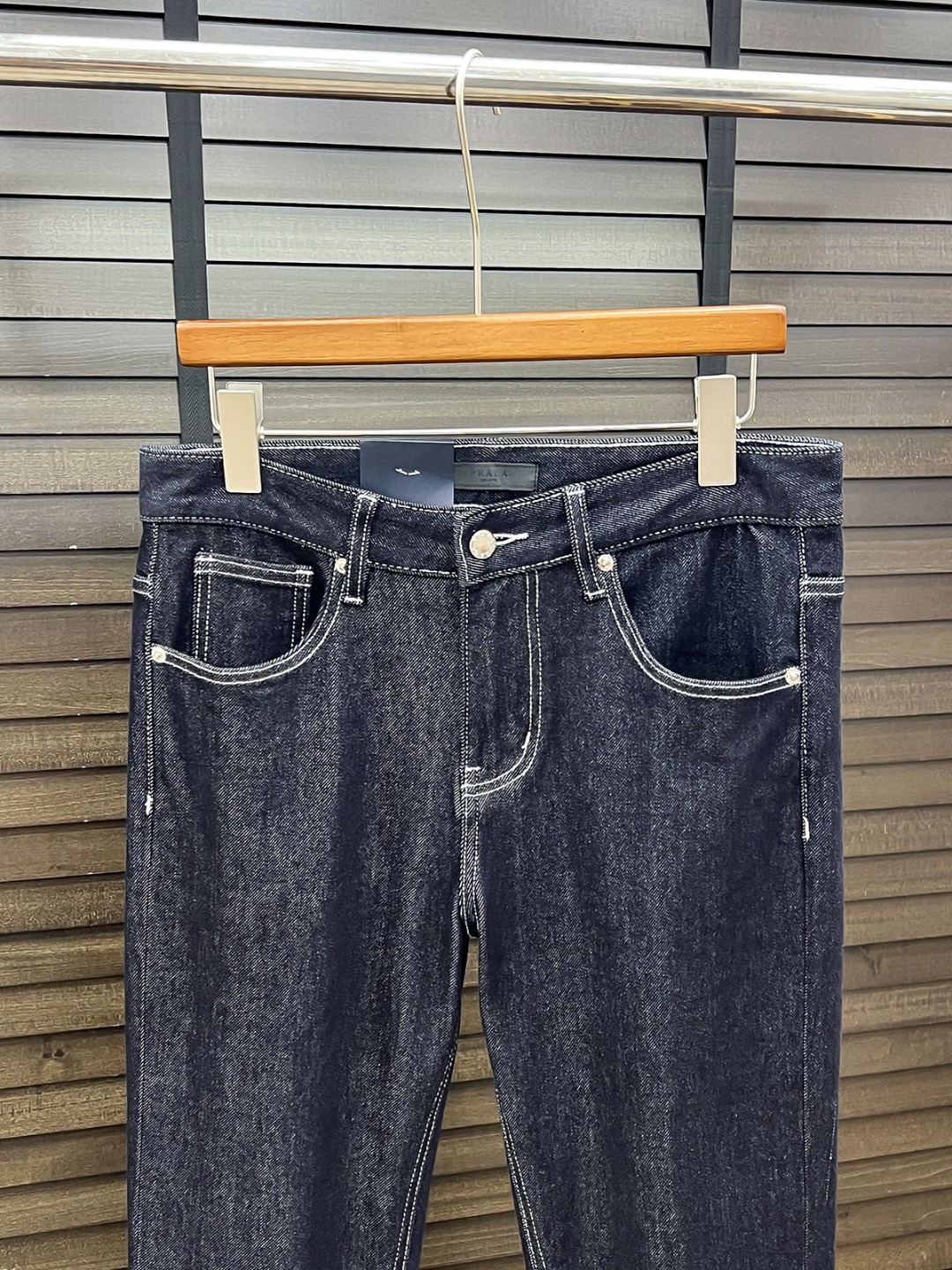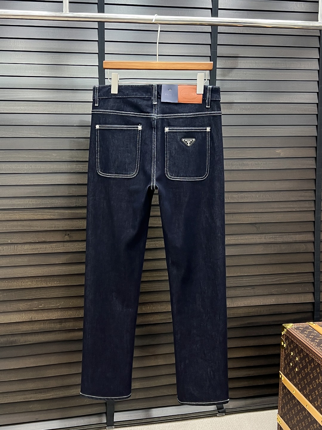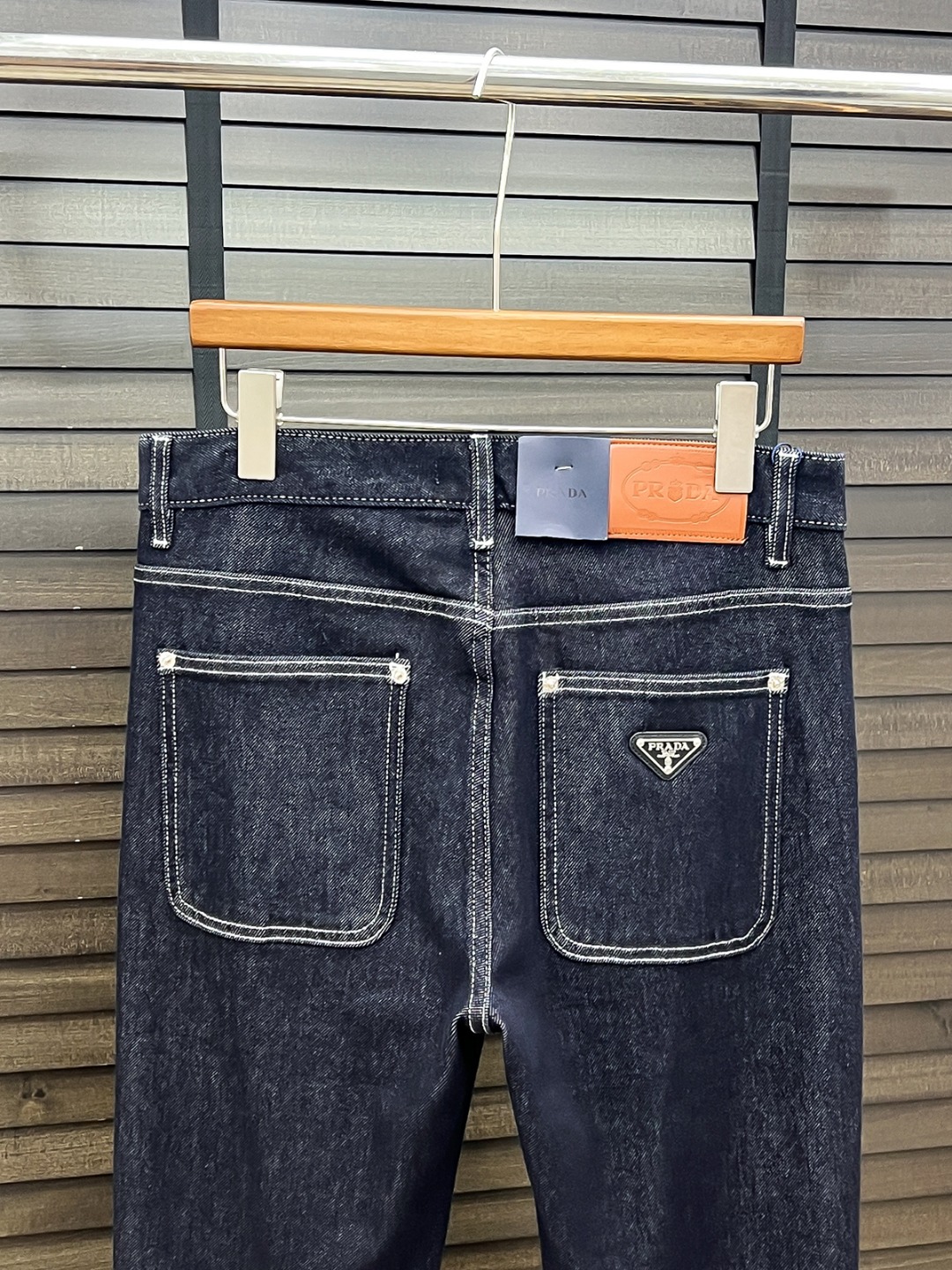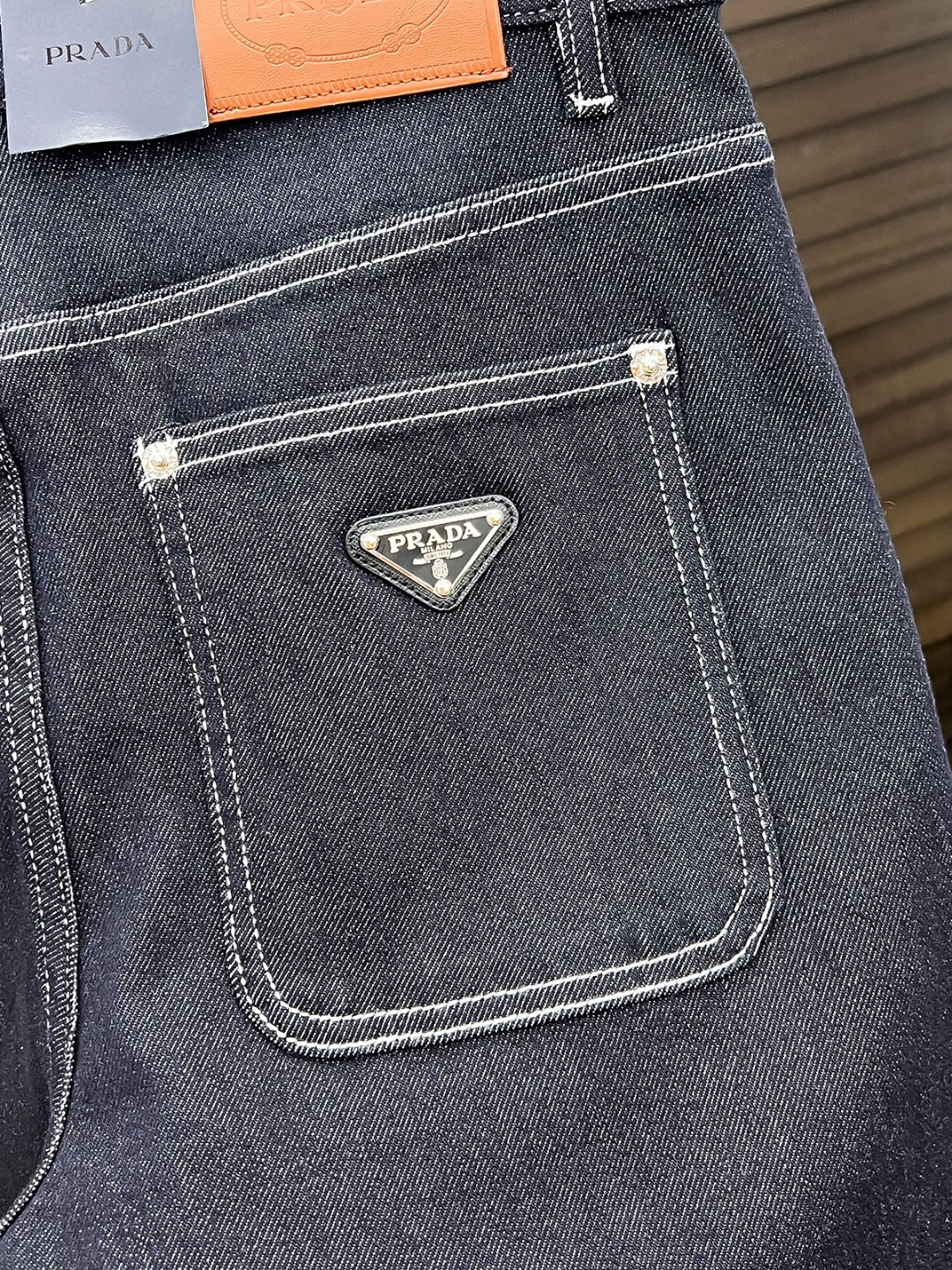 Prada men's denim jeans for Fall/Winter 25. Minimalist design, premium Japanese 13oz fabric, eco wash. Versatile style, perfect fit. Colors: Black. Sizes: 29-38.