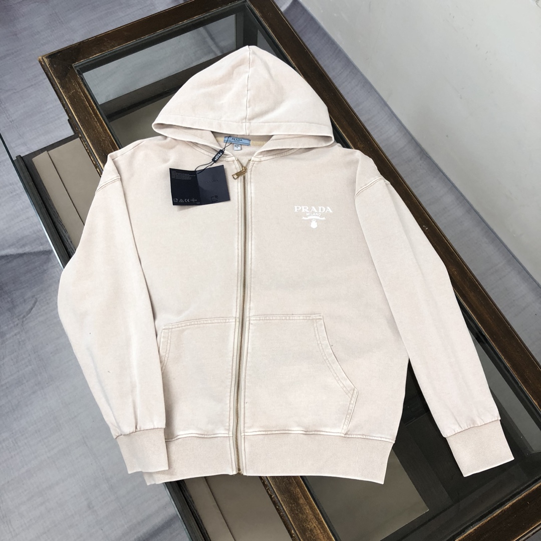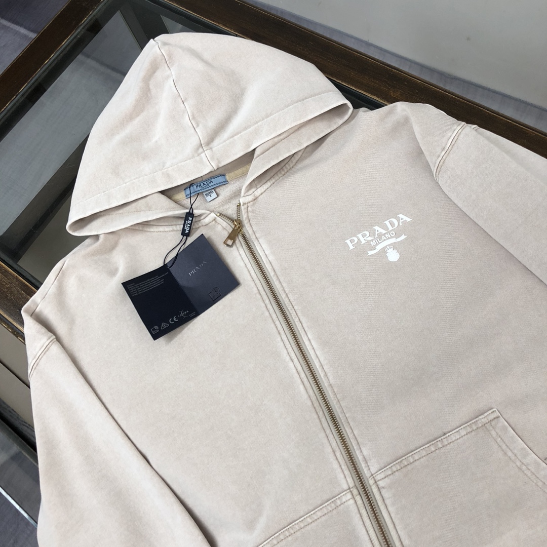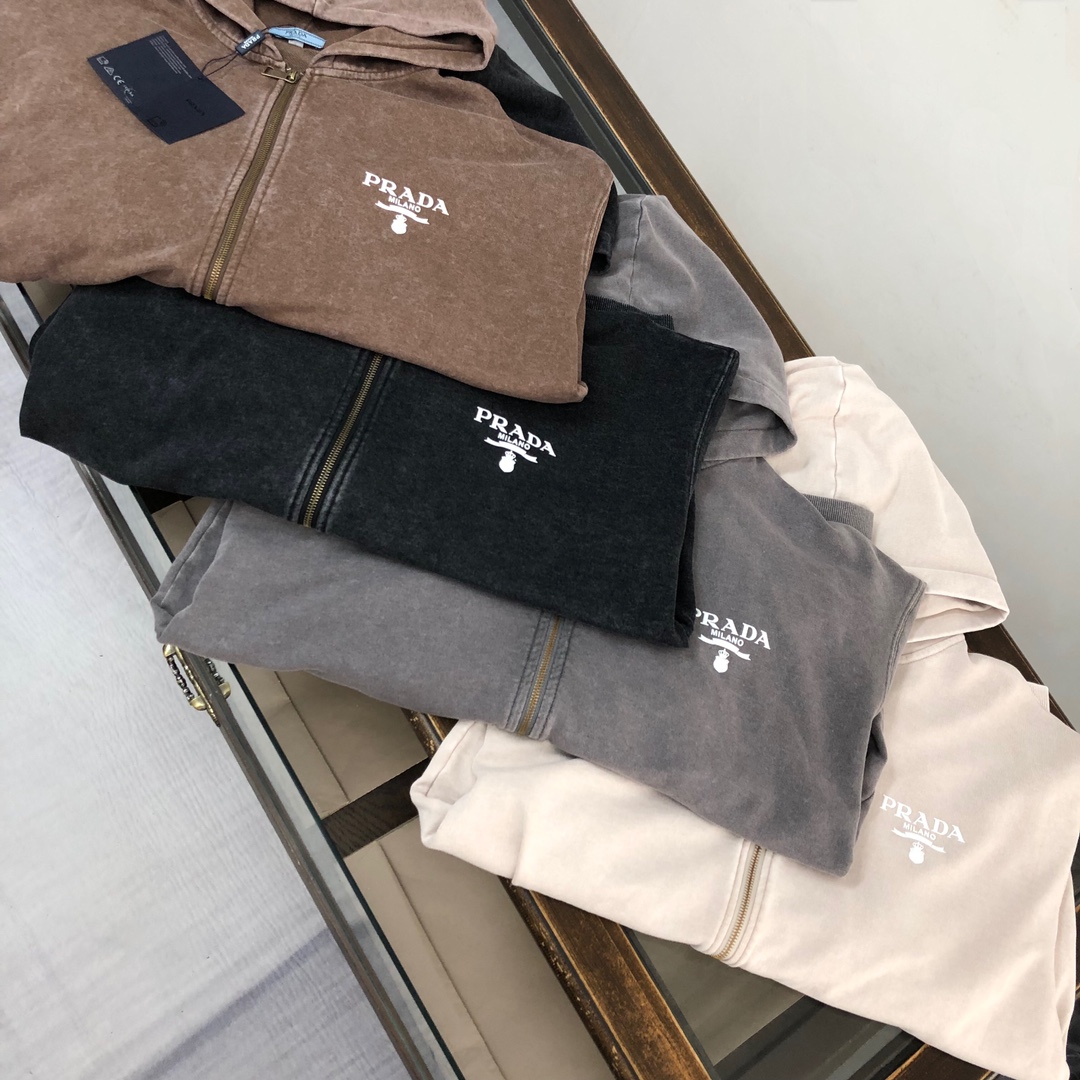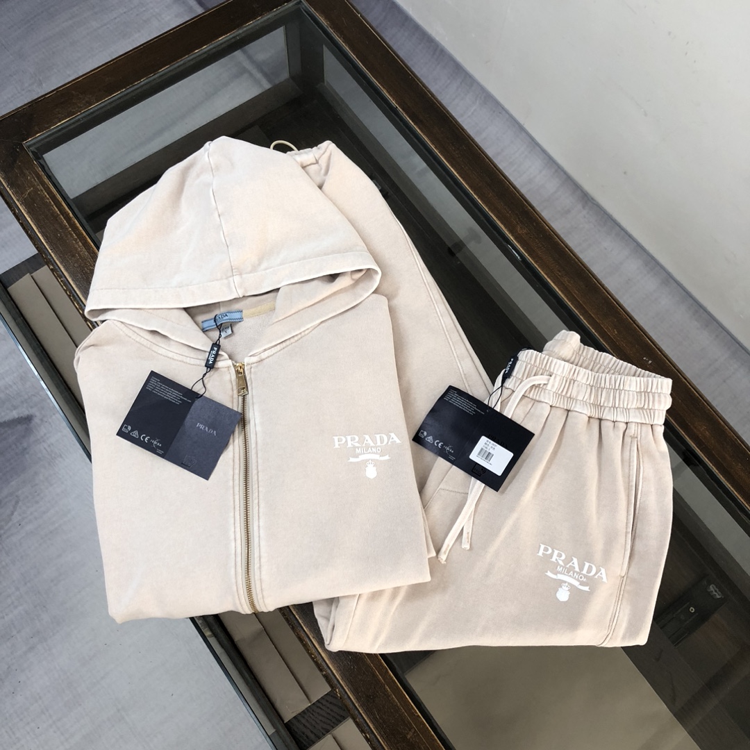 Prada 2025 early autumn couples washed hoodie & straight-leg pants set. Top quality, custom Italian fabric, vintage wash. Sizes S-XXL (oversized fit).