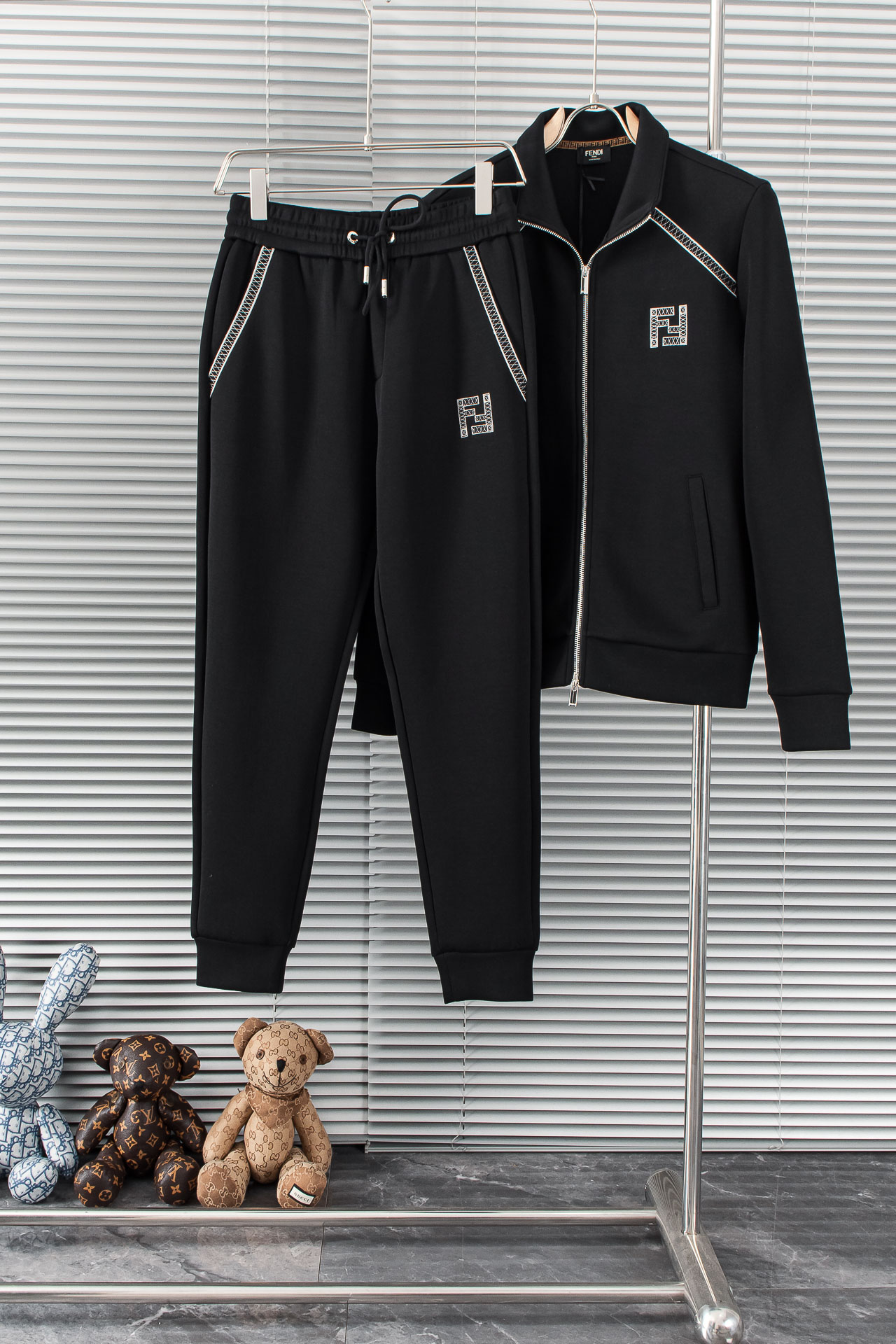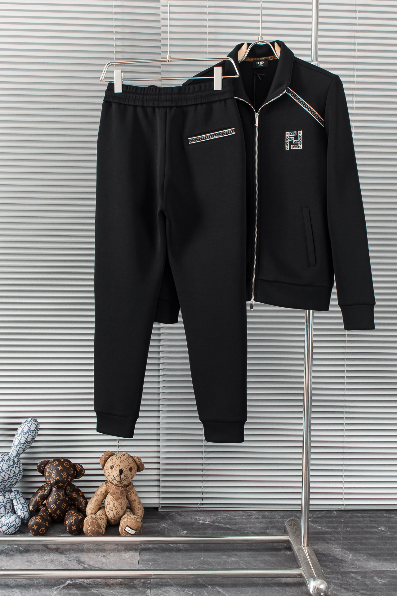 FENDI 2025 Fall/Winter minimalist sportswear set (jacket + pants). 100% premium cotton, adjustable waistband, iconic embroidery. High-quality tailoring, versatile for casual or work wear.