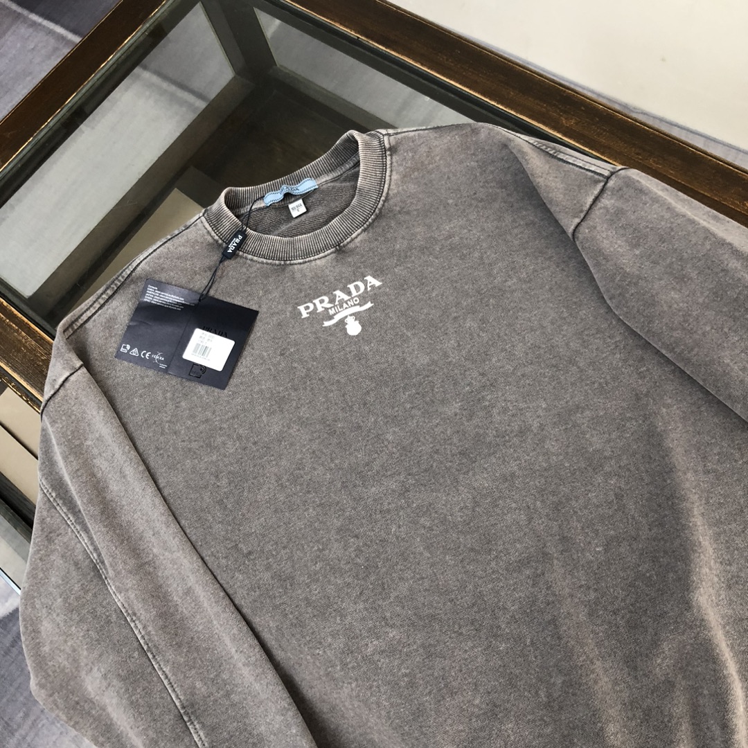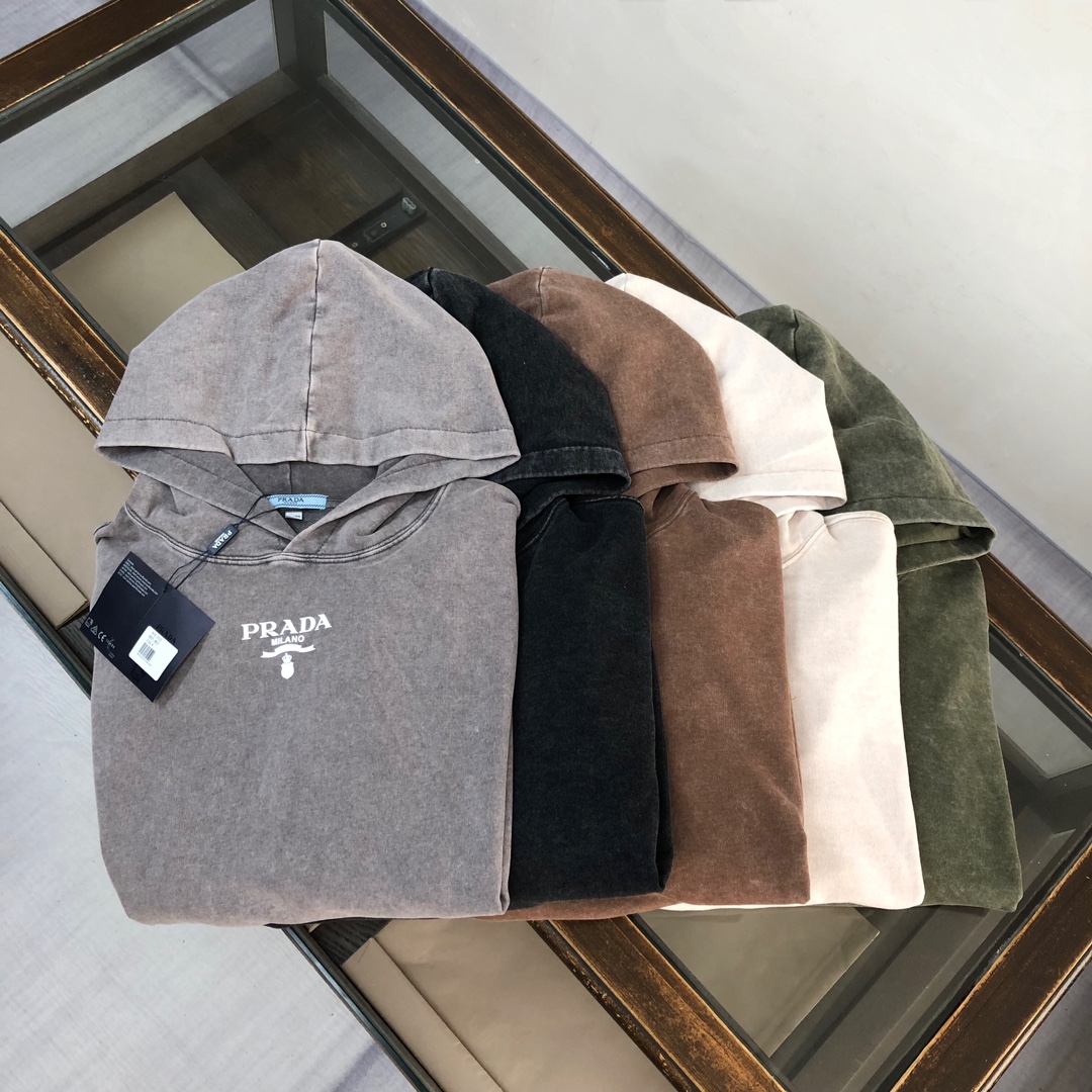 Prada 2025 early autumn washed hoodie & straight-leg pants set. Oversized fit: S-XXL. Premium Italian fabric, vintage wash, comfortable & breathable.