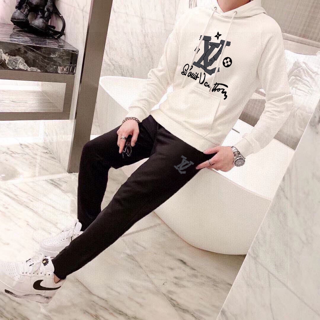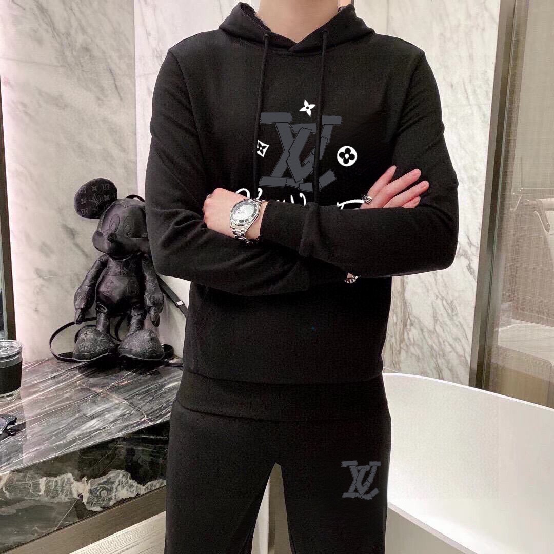 LV Louis Vuitton plus-size sweatsuit set. 2025 new designer hoodie set. Premium Roman cotton, comfortable fit. Sizes M-5XL.