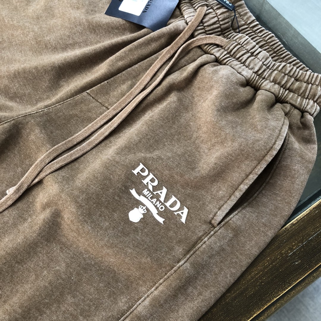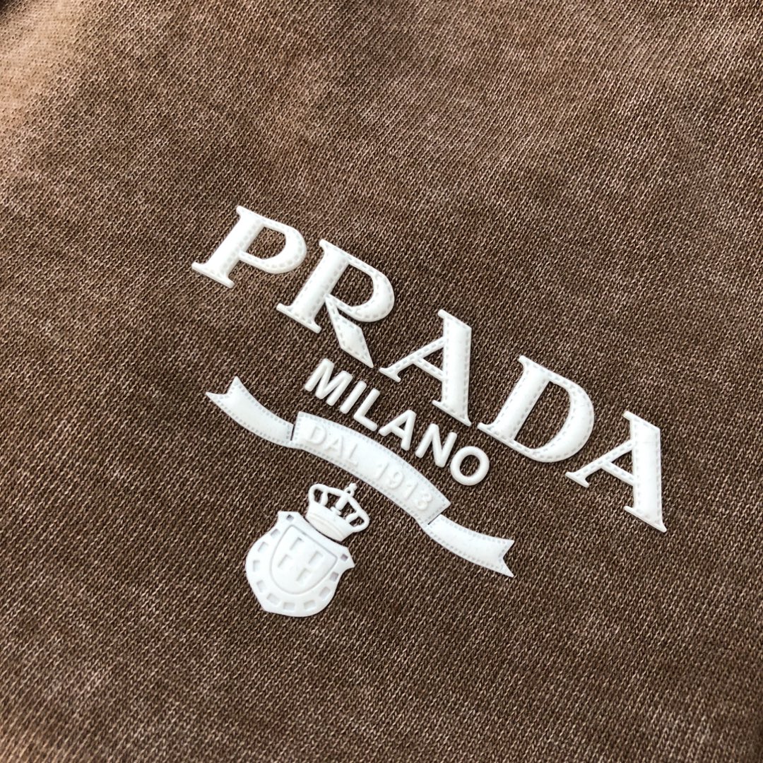 Prada 2025 early autumn couple's washed hoodie and straight-leg pants set. Top quality, custom Italian fabric, retro wash, comfortable. Sizes S-XXL, loose fit.