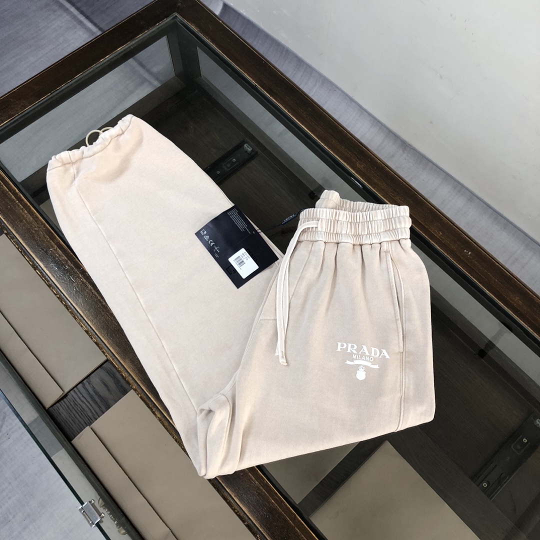 Prada 2025 early autumn couples washed hoodie and straight-leg pants set. Oversized fit. Top quality, retro style, comfortable.