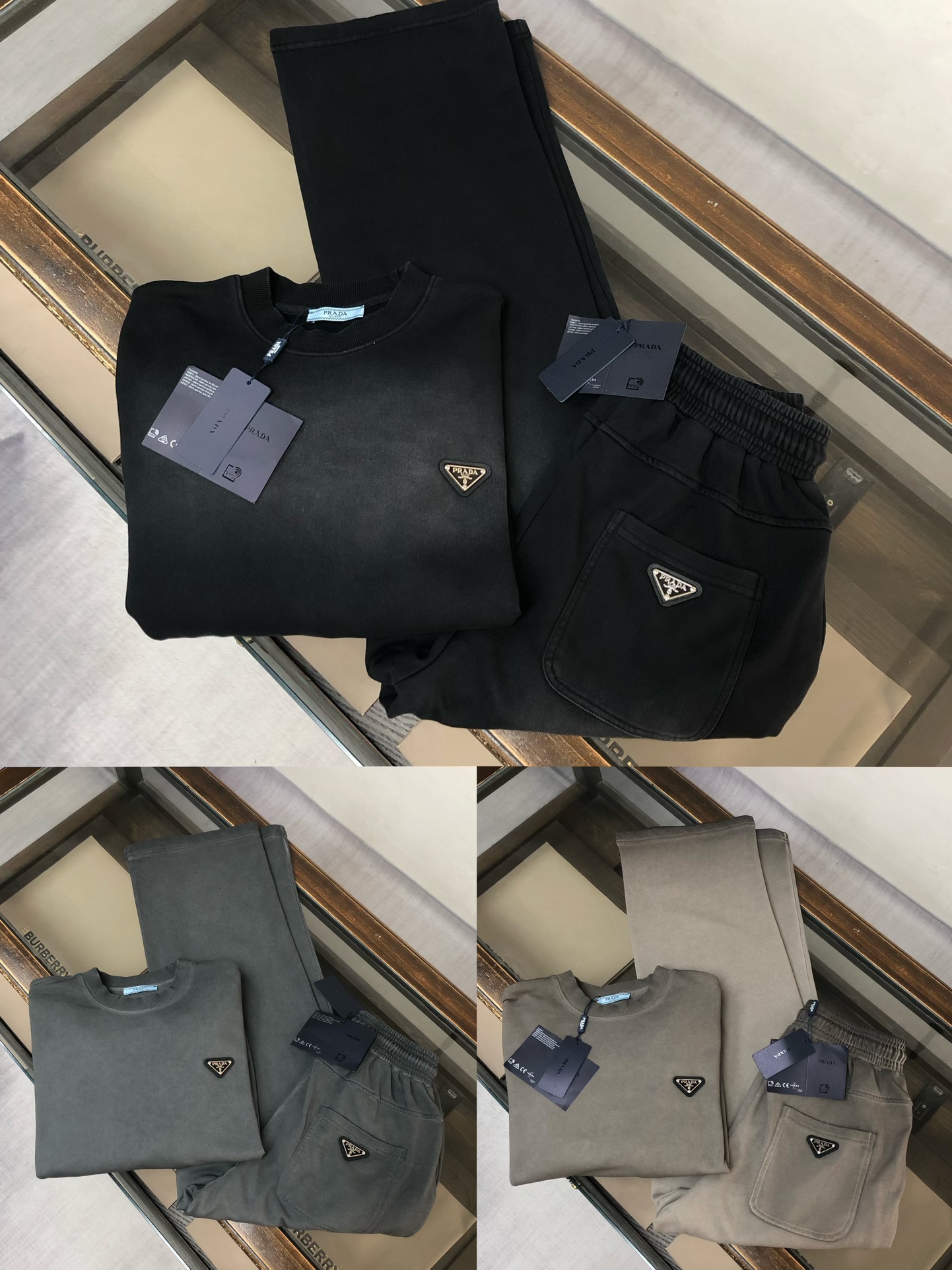 PRADA heavy wash set. Round neck, hooded, zipper, pants. Sizes: S M L XL.