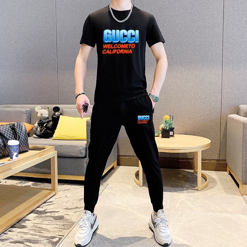 GUCCI men's summer high-quality set. Imported fabric, fashionable, versatile. Sizes M-5XL (up to 220斤).