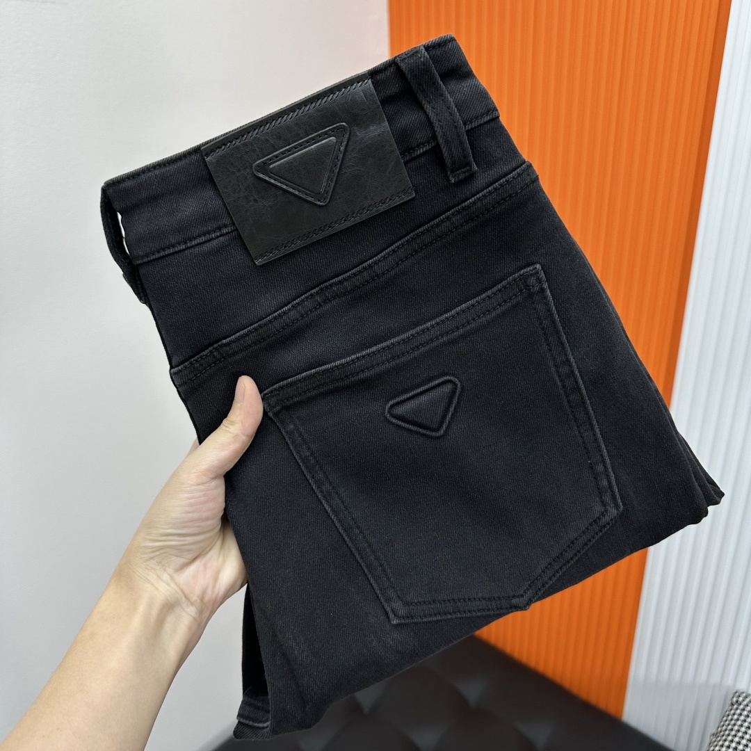 Prada high-end custom 2025 autumn-winter jeans. Imported color-fast fabric, original quality, intricate washing. Sizes 30-38 (35 available, 37 not available).