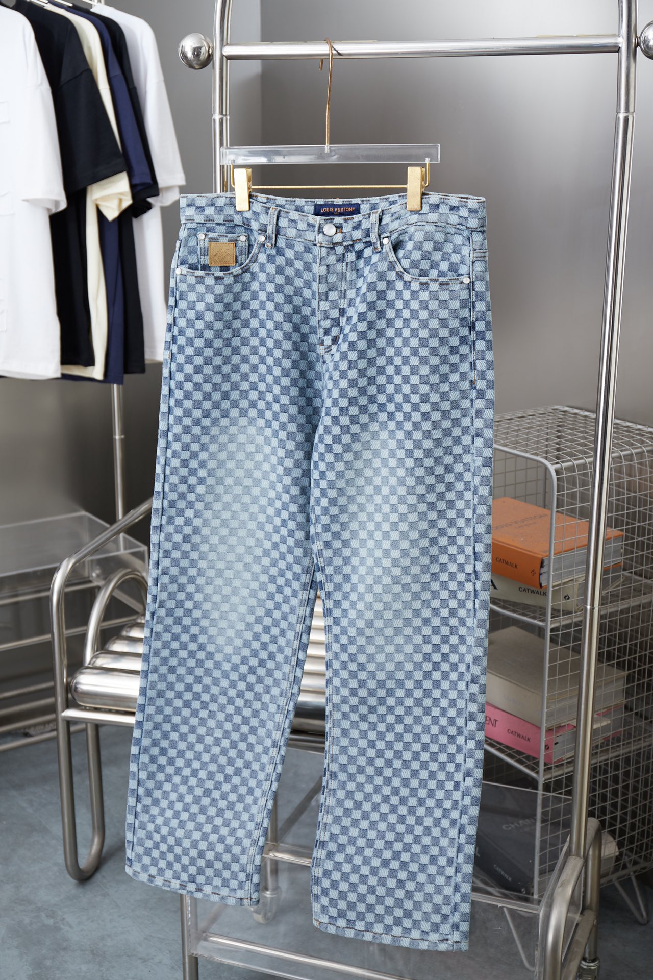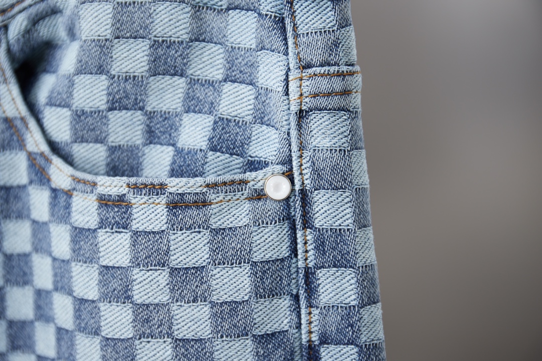 Louis Vuitton x Nigo FW25 jacquard check denim jeans. Sizes S,M,L,XL. 480g denim, comfortable, breathable, excellent finish. Unisex.