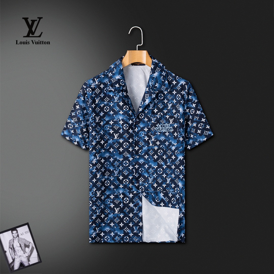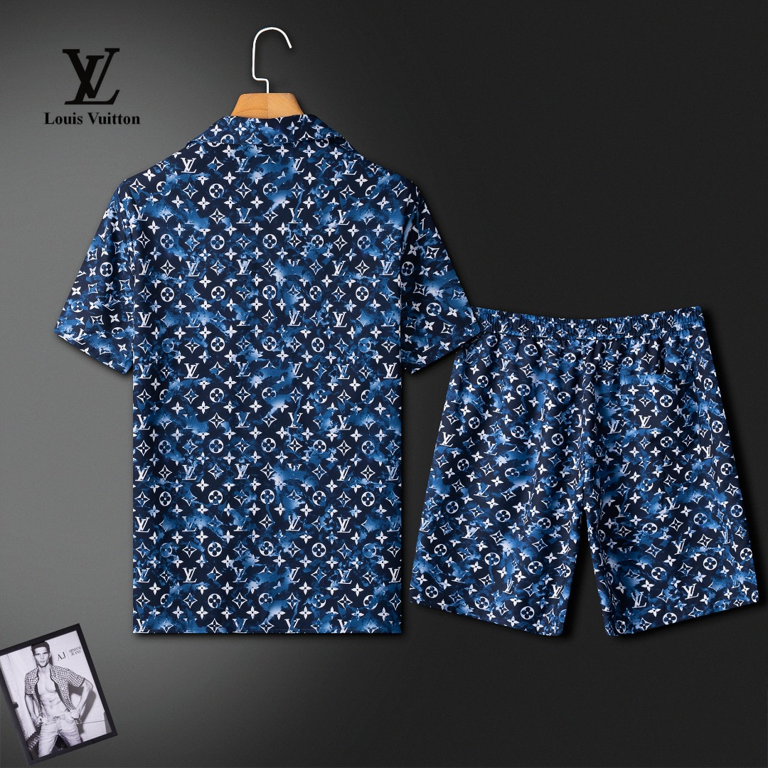 LV Louis Vuitton summer shorts set. High-end custom fabric, new 2025ss Milan runway style. Real photos, top quality. Sizes M-3XL, fits up to 190kg. Comfortable, breathable, luxurious Italian texture.