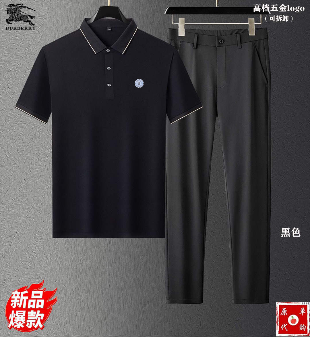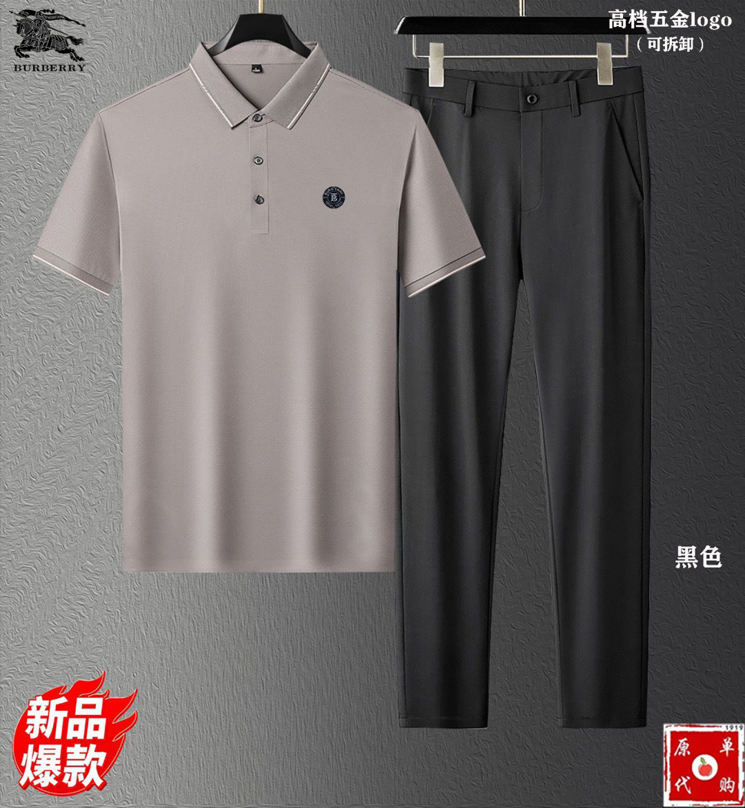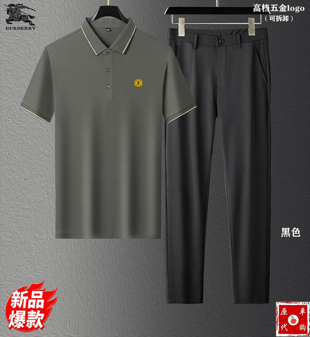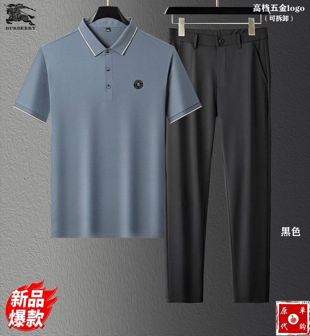 BURBERRY summer set: silk fabric, Milan runway style. Real photos, top quality. Sizes: top M-4XL, pants 29-40. Comfortable, luxurious Italian custom fit.