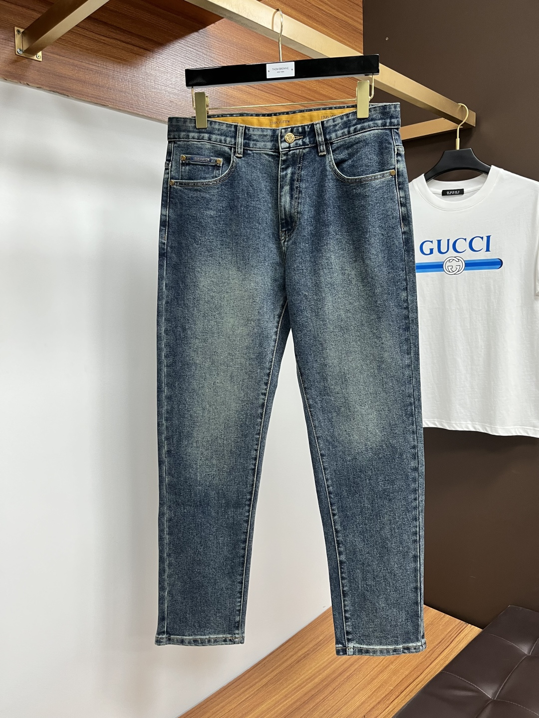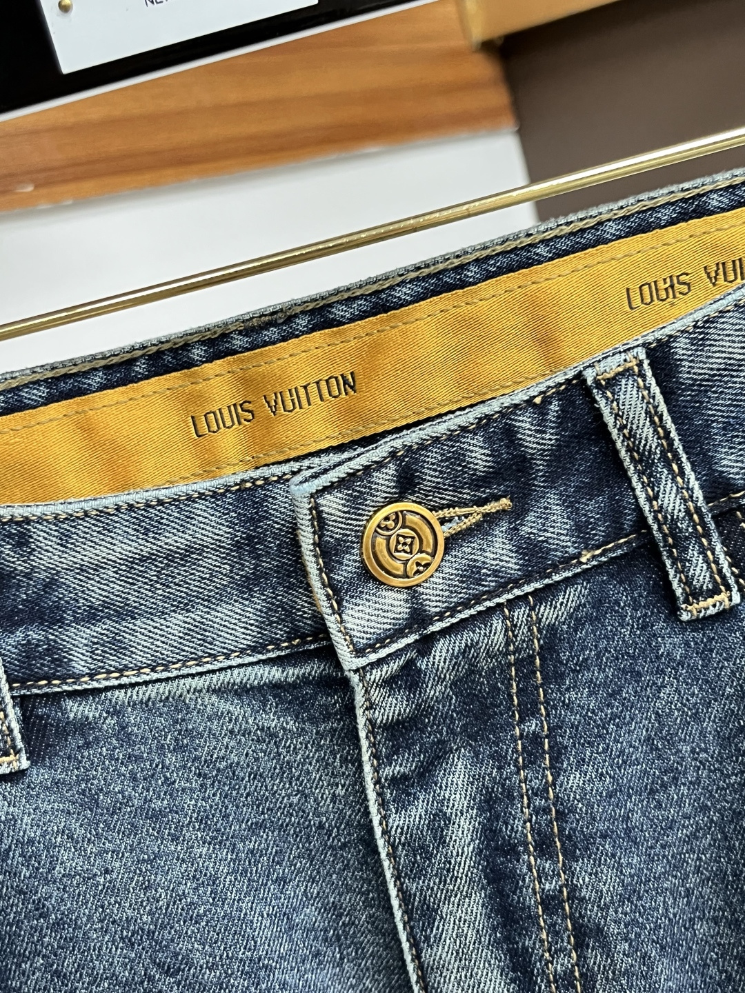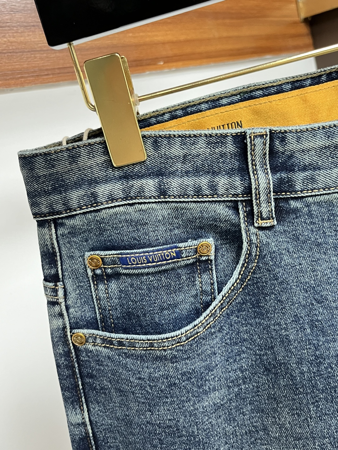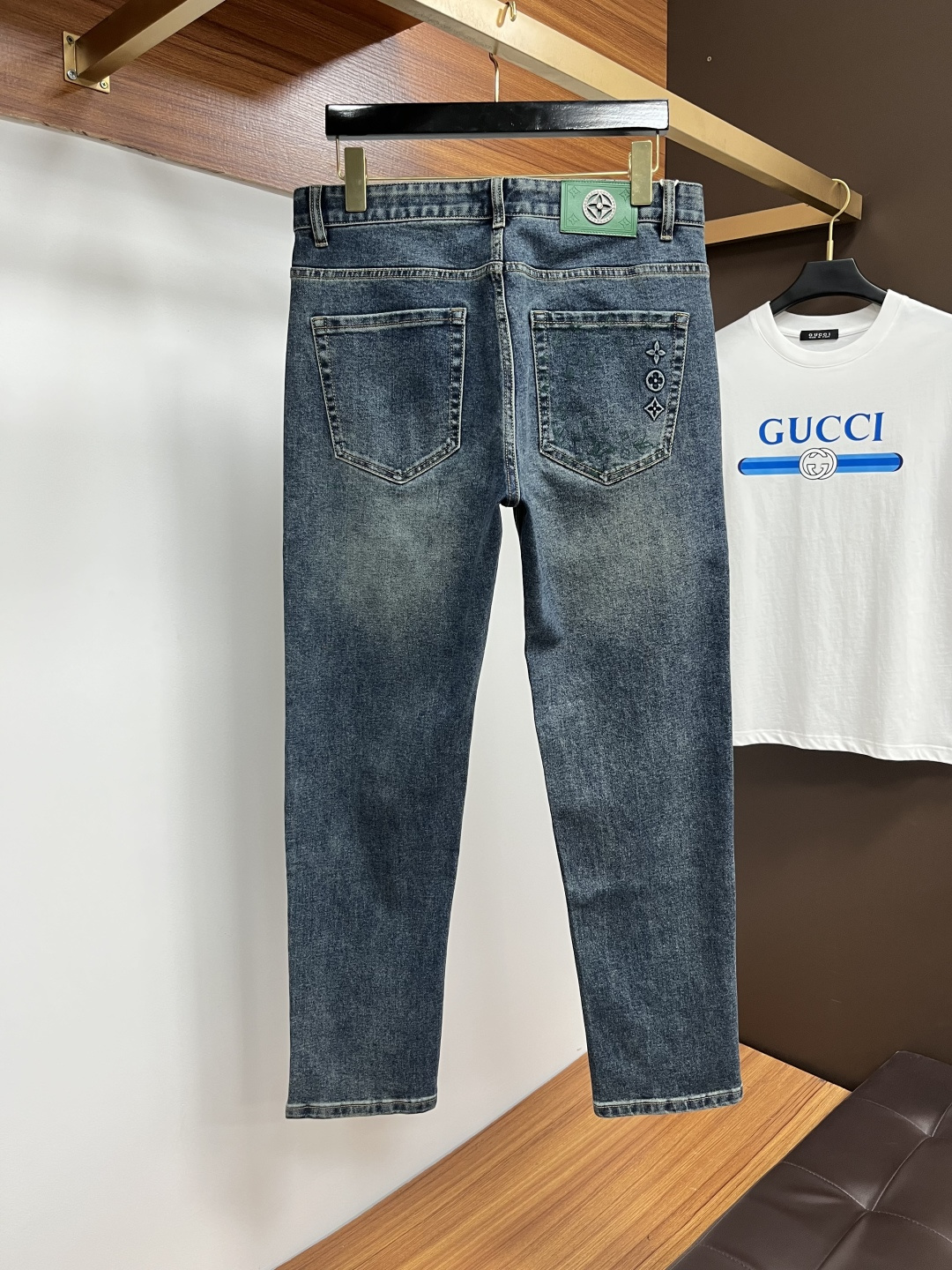 LV 2025 Fall Men's Business Casual Jeans. High-quality fabric, comfortable & breathable. Versatile for office or weekends. Slim fit, sizes 29-40.