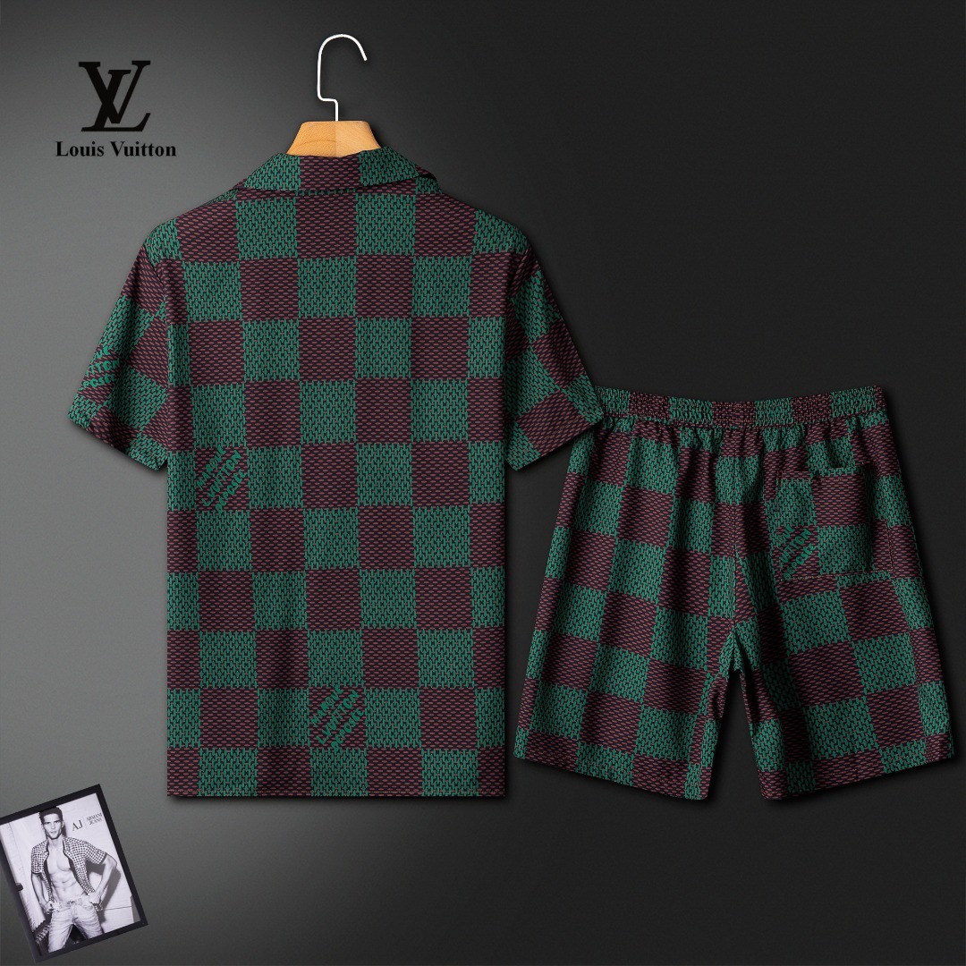LV Louis Vuitton summer shorts set. High-end custom fabric, Milan runway style. Real photos, top quality. Sizes M-3XL (up to 190kg).