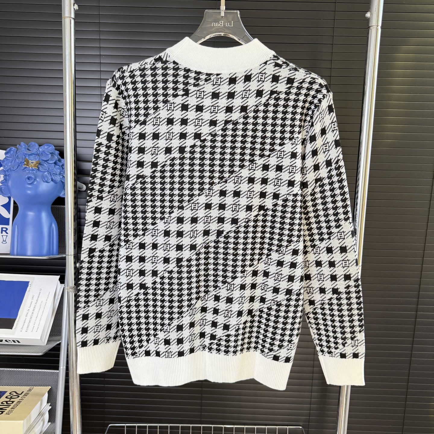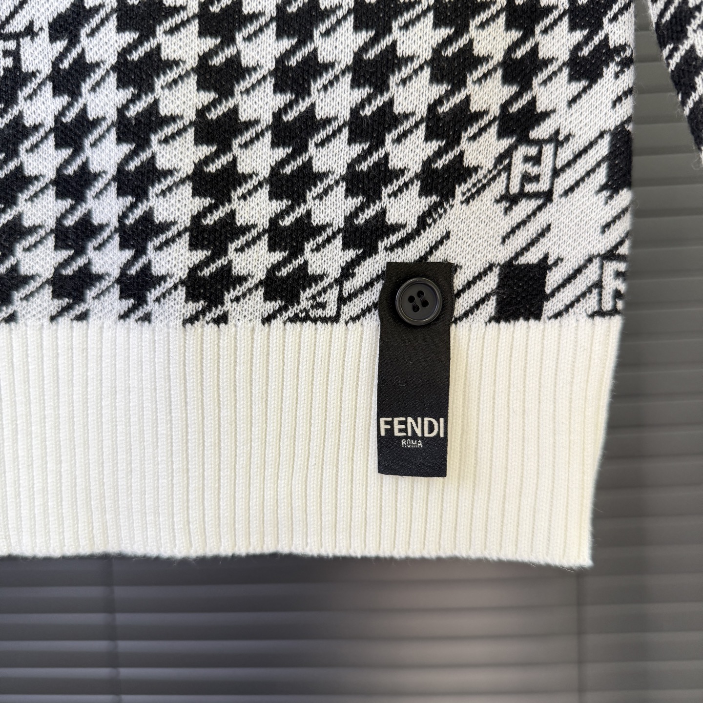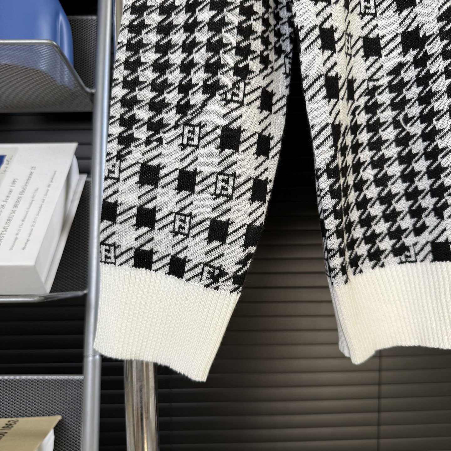 FENDI Fall/Winter houndstooth double F logo long sleeve wool sweater. Upgraded 80s retro style. 2025ss original fabric. Color: White. Sizes: M-3XL.