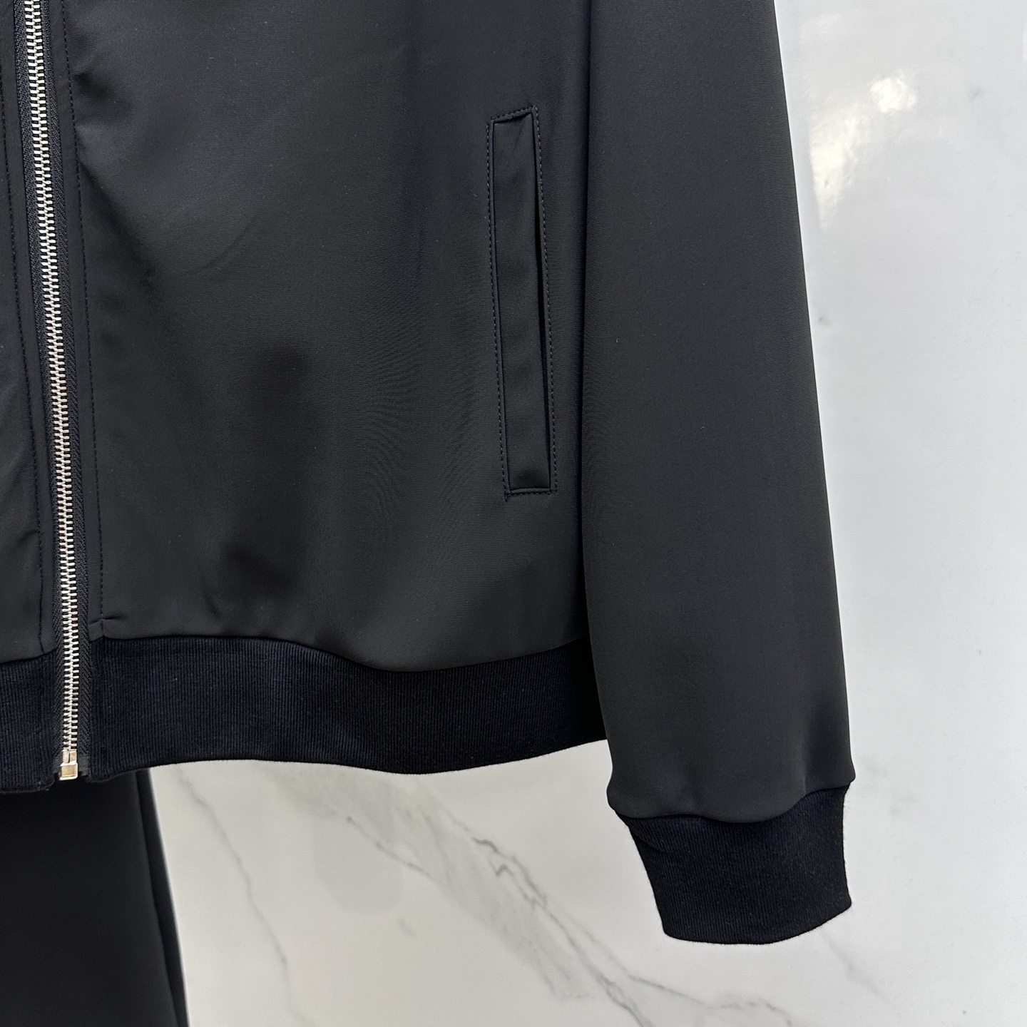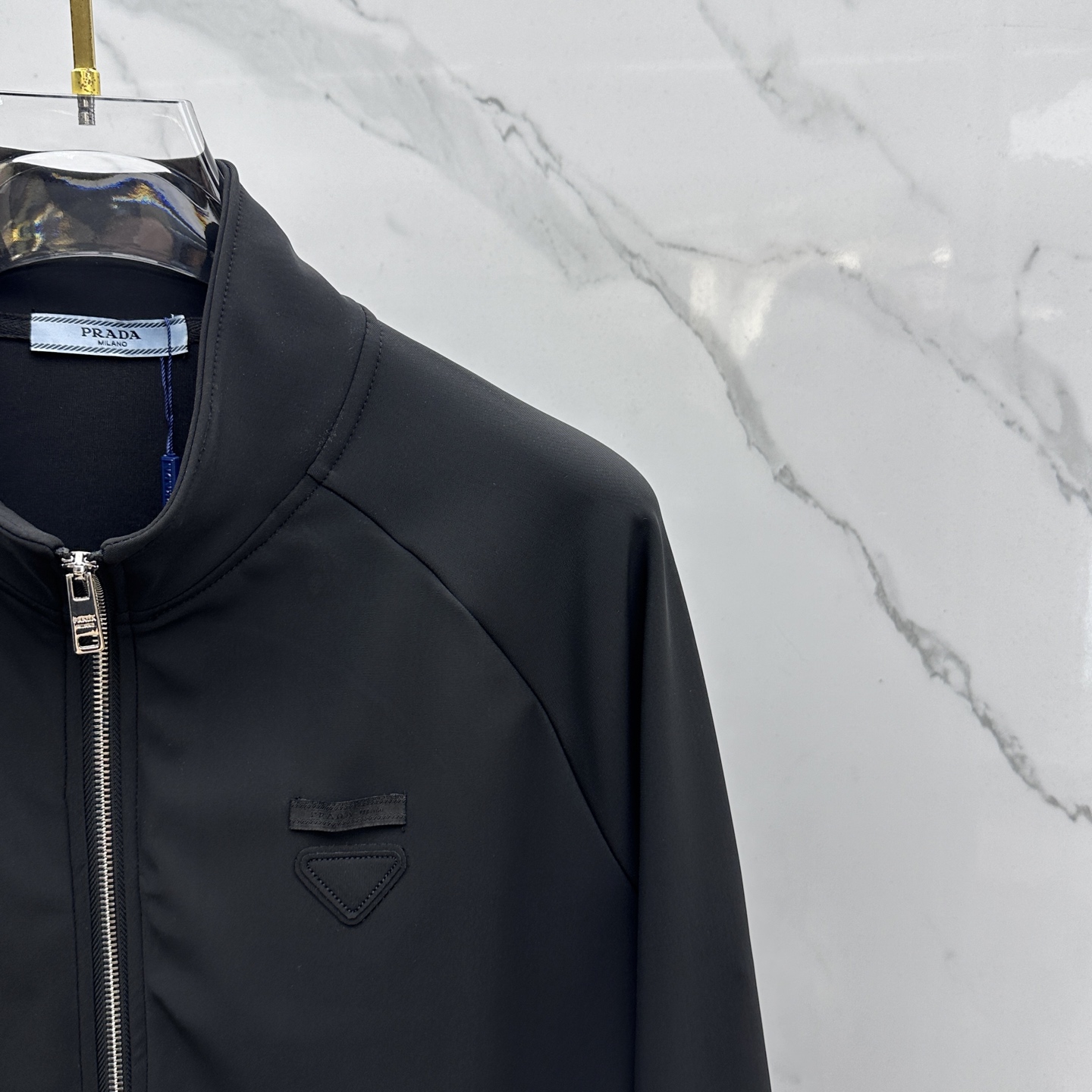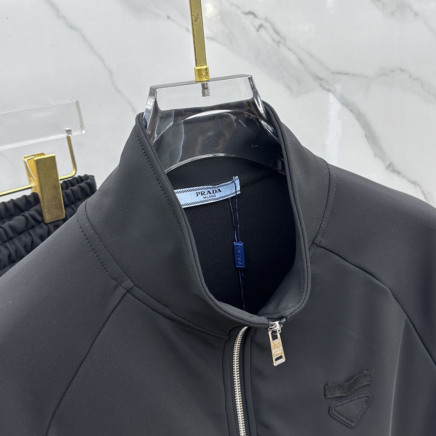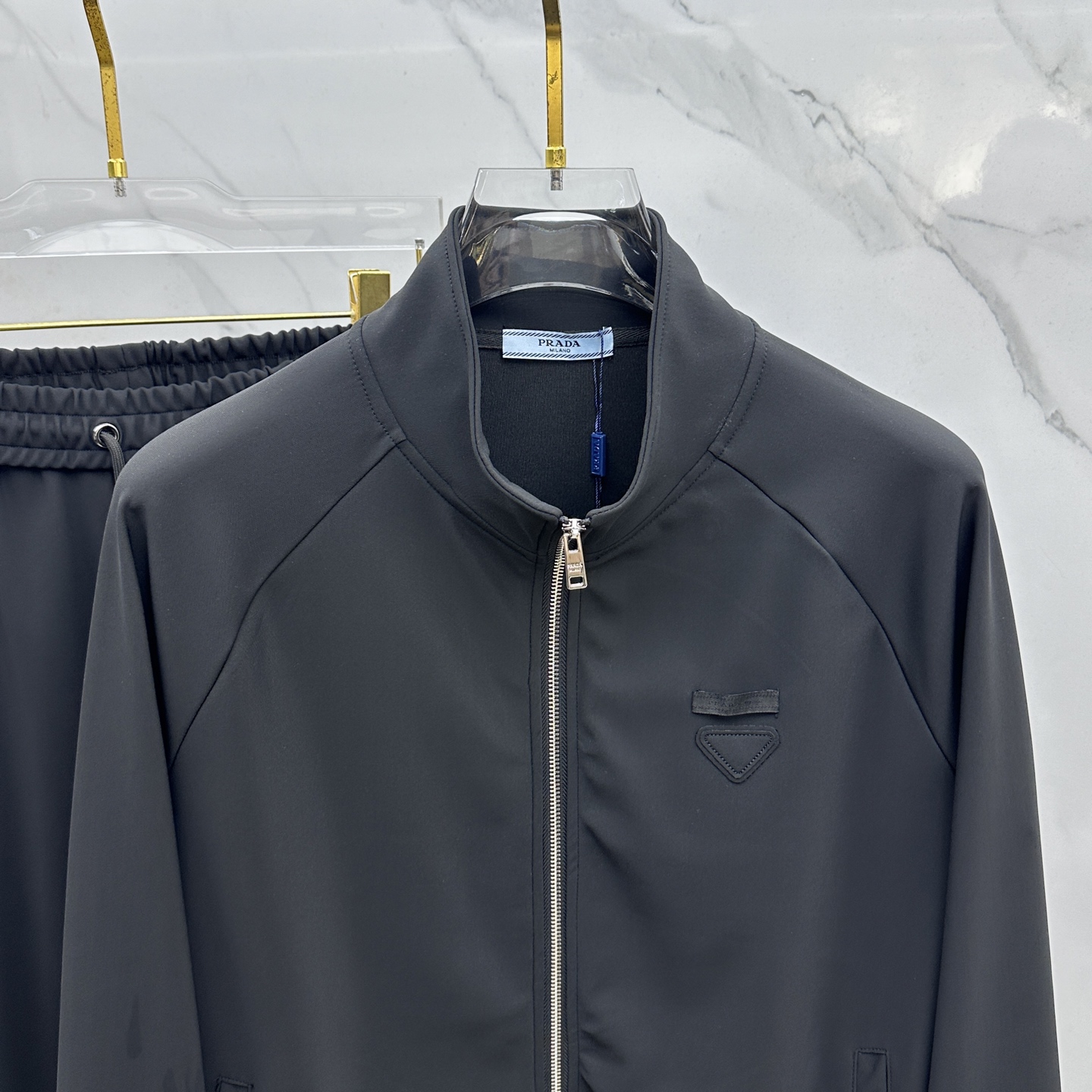 Prada Fall/Winter 2025 men's casual zip-up stand collar set. Premium cotton blend, pilling-resistant, retains shape. Features classic logo. Available in M-3XL.