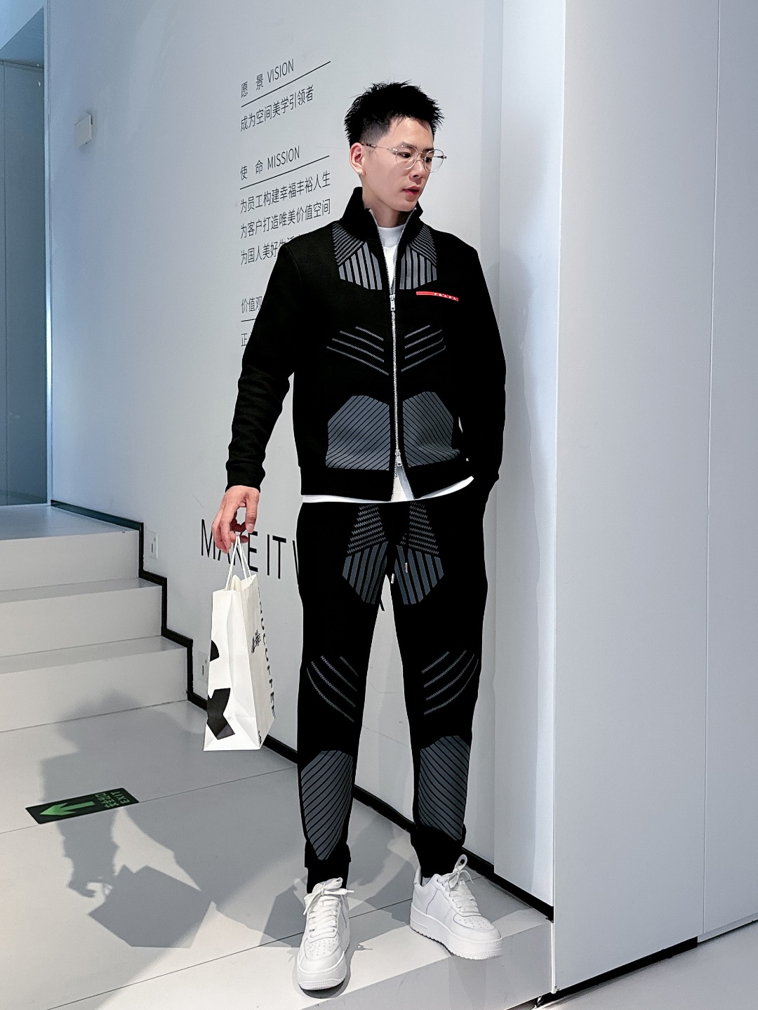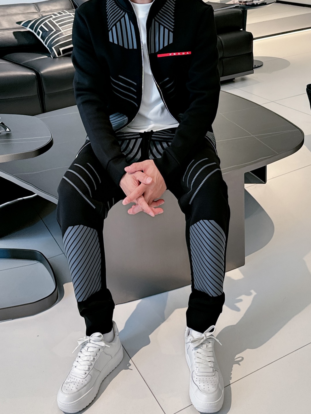 Prada 2025 Fall/Winter casual set with classic logo. Soft imported fabric, vibrant colors, fine craftsmanship. Available in sizes M-3XL.