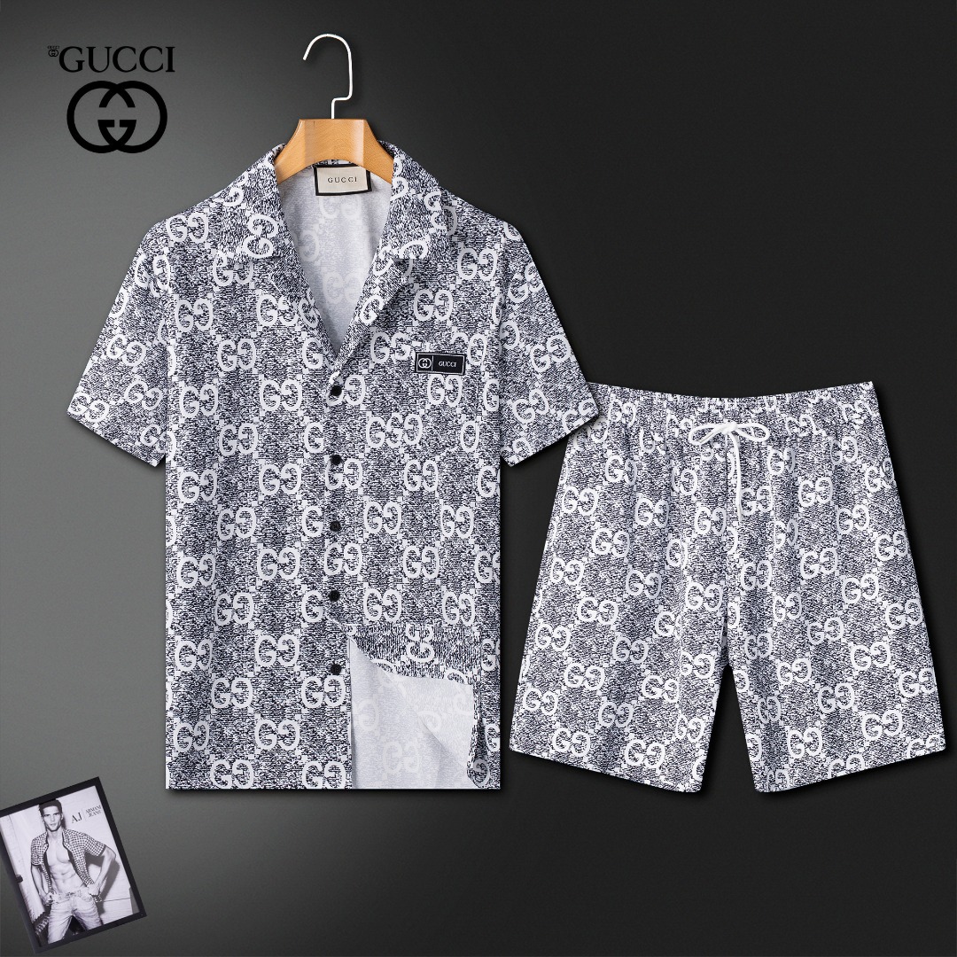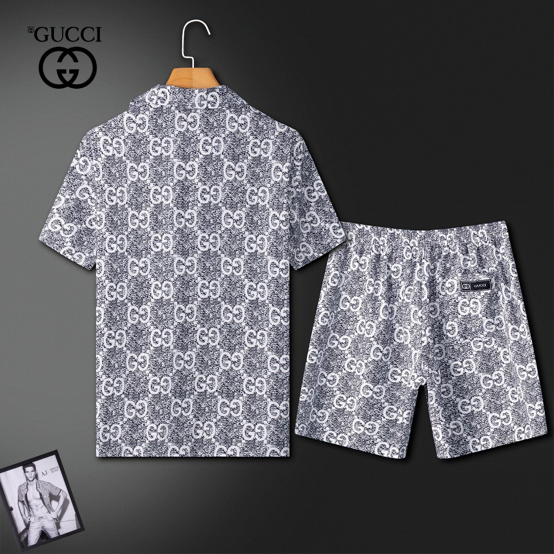 Gucci summer shorts set. High-end custom fabric, Milan fashion show style. Real photos, top quality. Sizes M-3XL (fits up to 190kg).