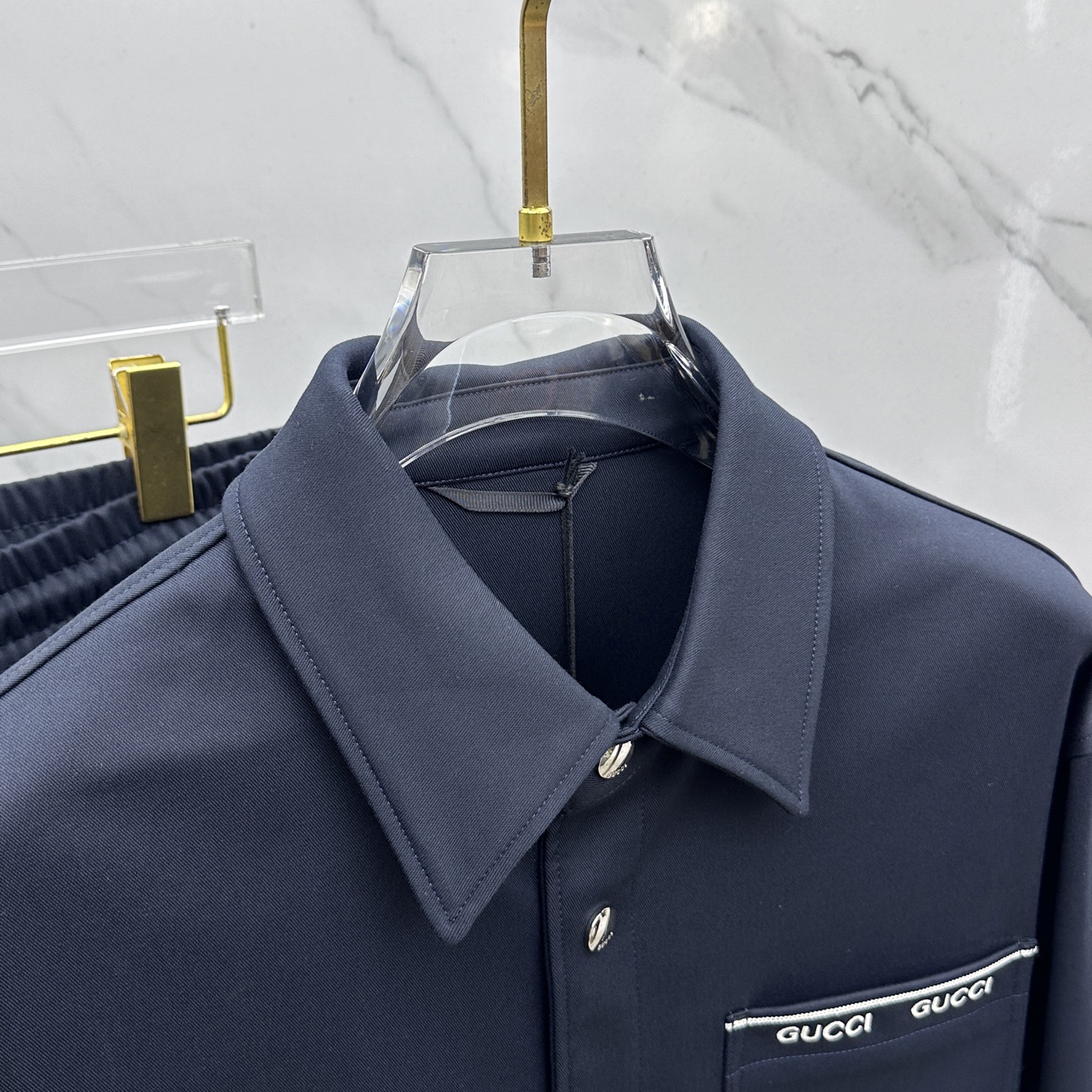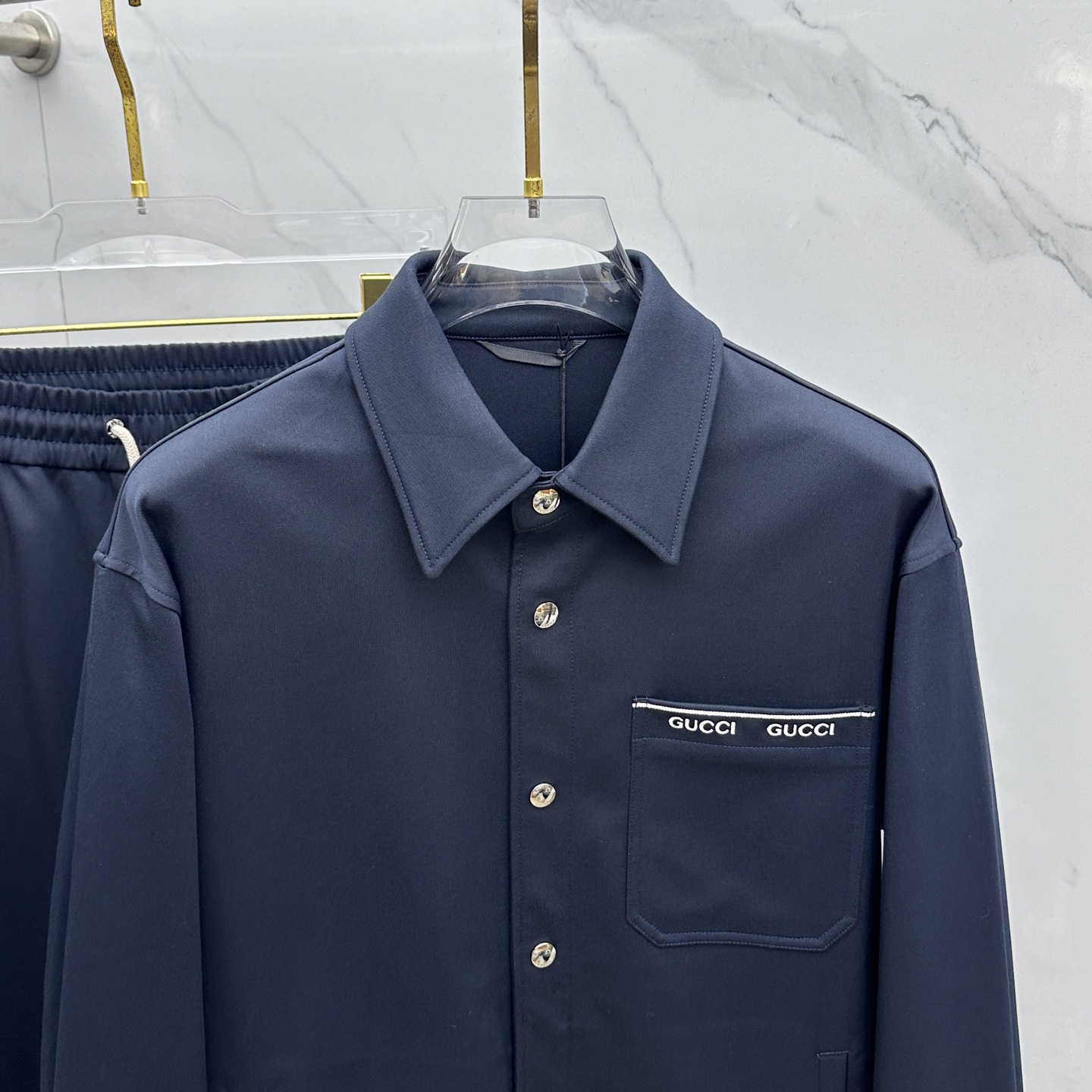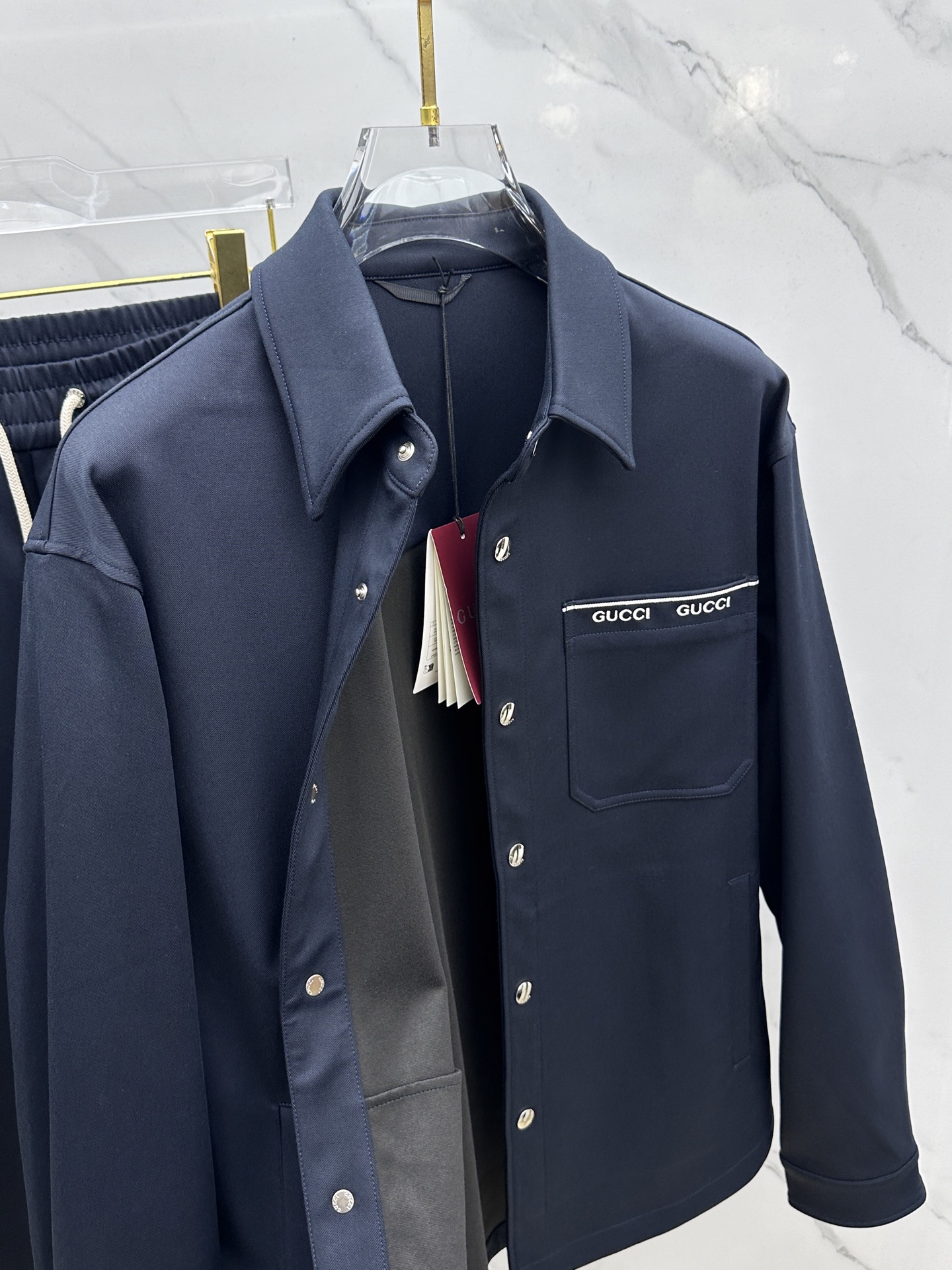 GUCCI 2025 Fall/Winter New Runway Set. Snap-button jacket, premium fabric, wrinkle-resistant. Stylish, versatile. Sizes: M-3XL.