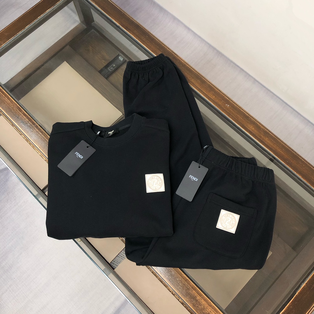 FENDI 2025 early autumn couples hoodie & jogger set. Custom 420g cotton, breathable fabric. Colors: Black, White, Blue, Gray. Sizes: S-XXL.