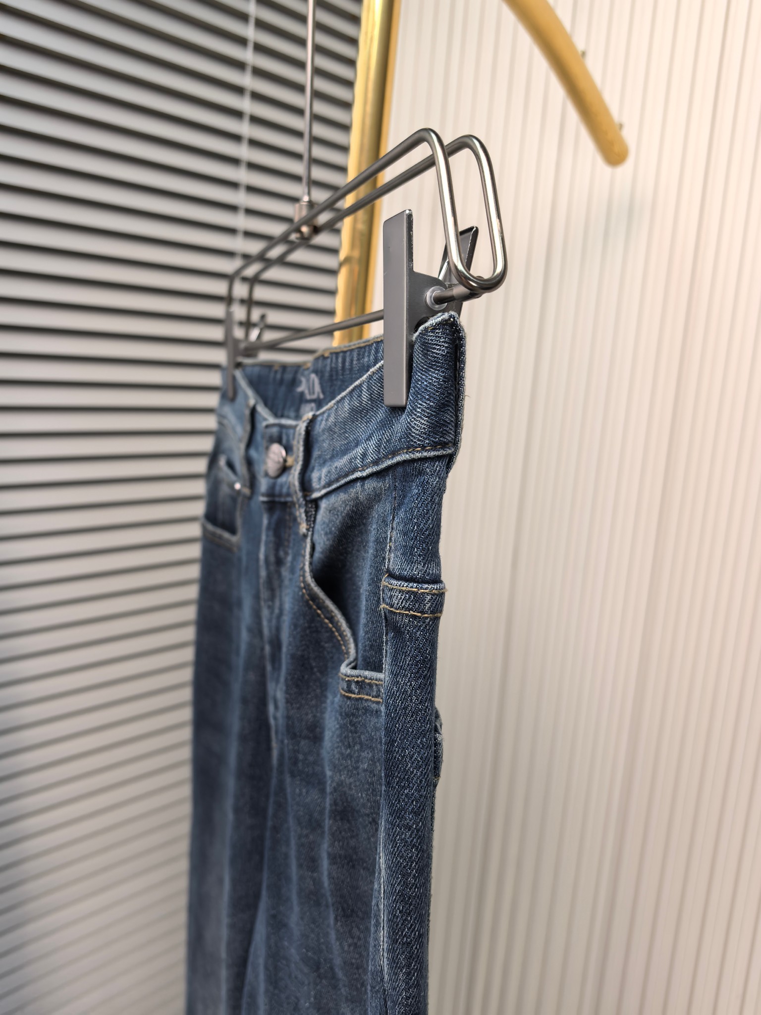 LV Thin Denim Jeans. 2025 latest style. 98% cotton, 2% spandex. Solid, slightly stretchy, comfortable. Simple design, hidden zipper, embossed pockets. Excellent fit.