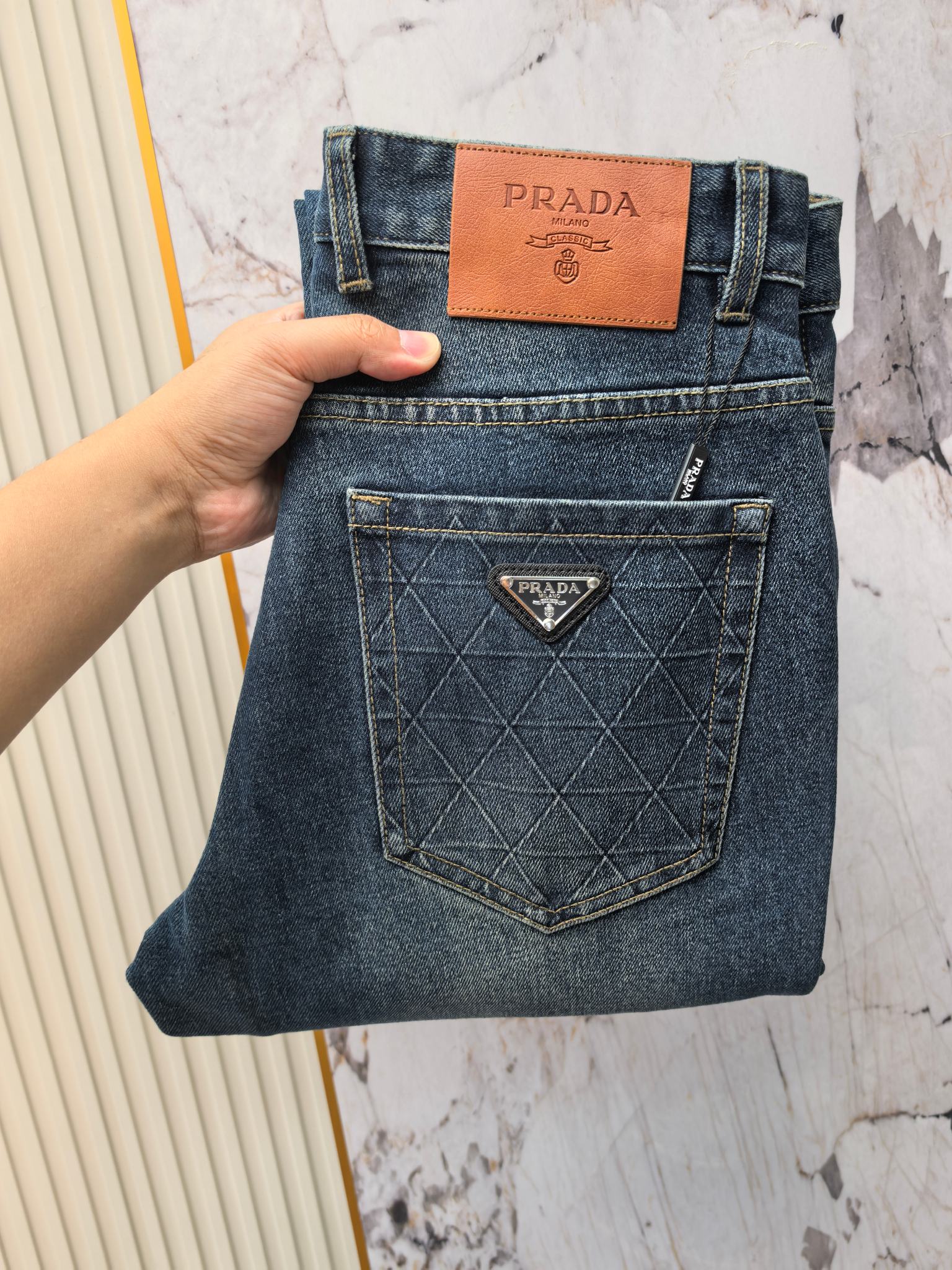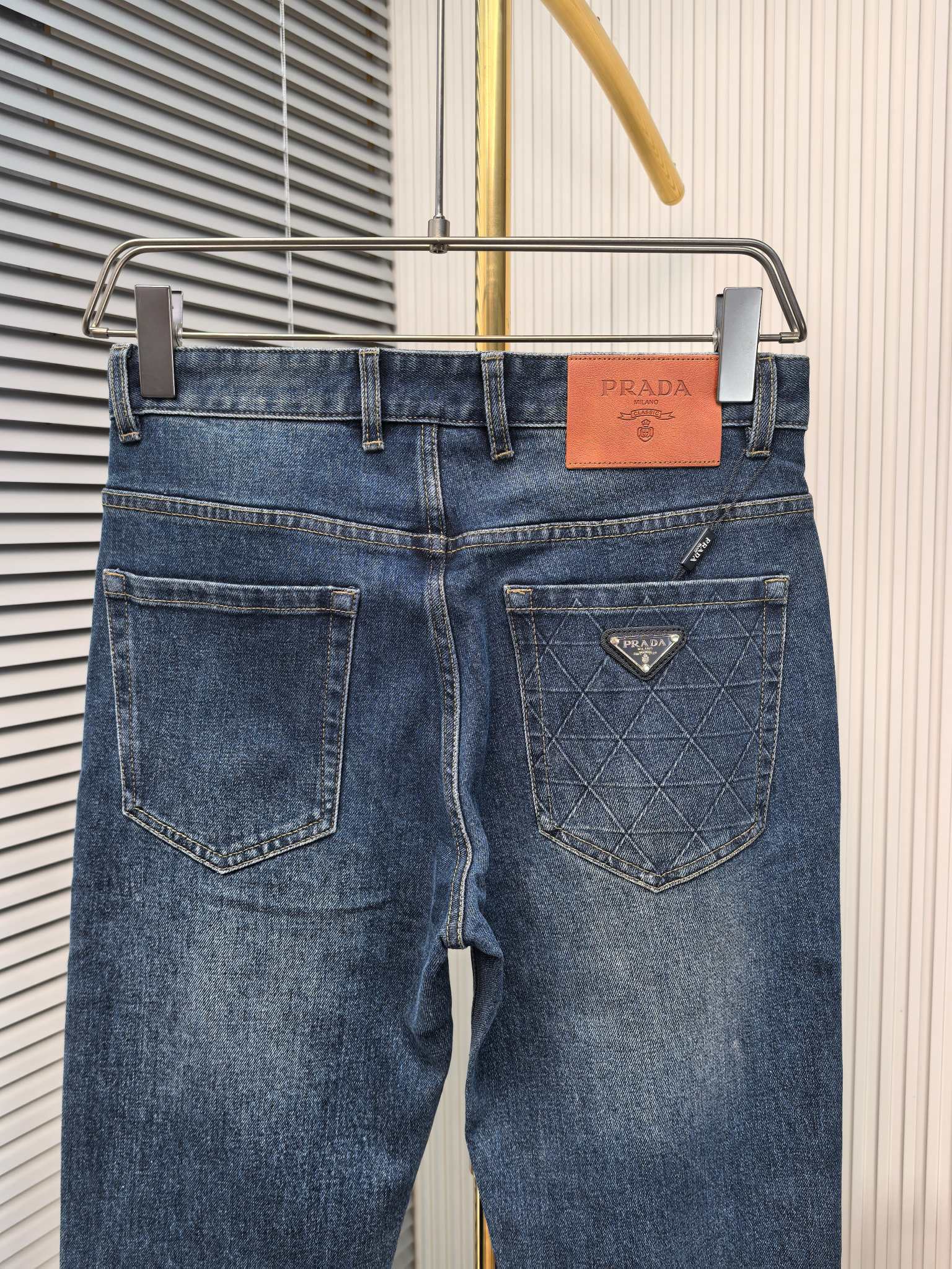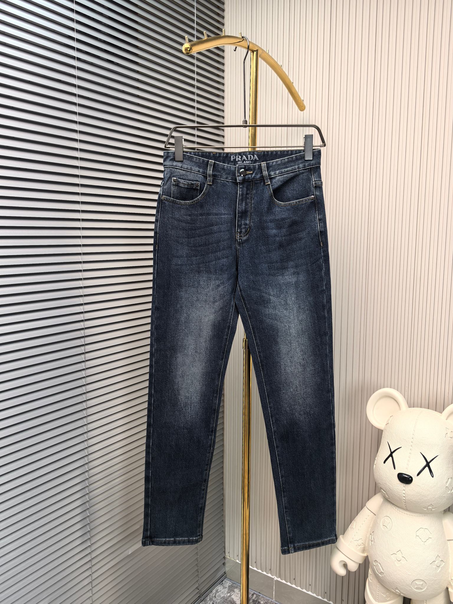 Prada 2025 early fall men's jeans. Heavy wash denim, custom soft fabric. Top craftsmanship, comfortable stretch. Low-key design. Sizes 29-40.