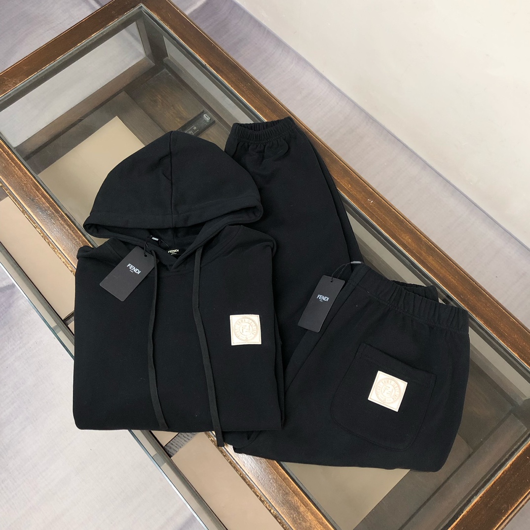 FENDI 2025 early autumn exclusive new couple hoodie and sweatpants set. Custom 420g washed cotton, premium quality. Colors: black, white, navy, gray. Sizes: S to XXL.