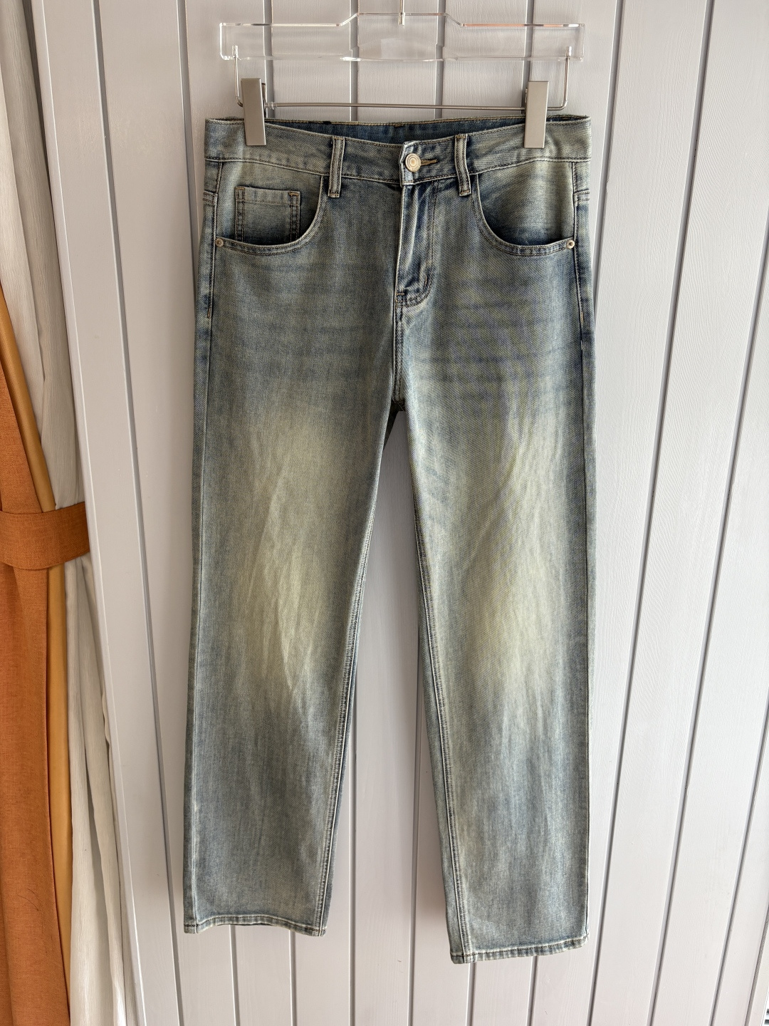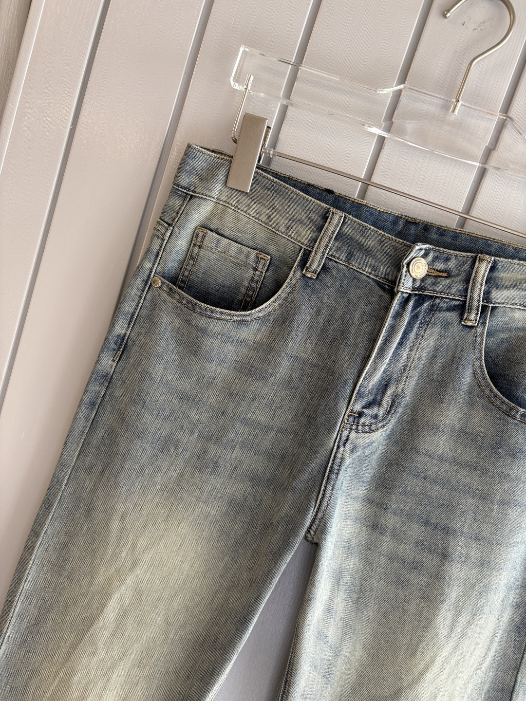 LV Thin Denim Jeans. 2025 latest style. 98% cotton, 2% spandex. Solid, slightly stretchy, comfortable. Simple design, hidden zipper, embossed pockets. Excellent fit.