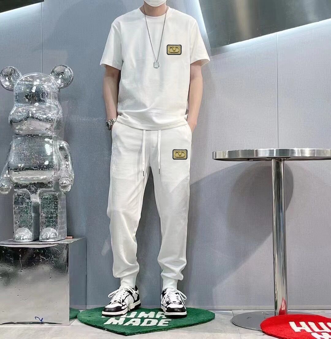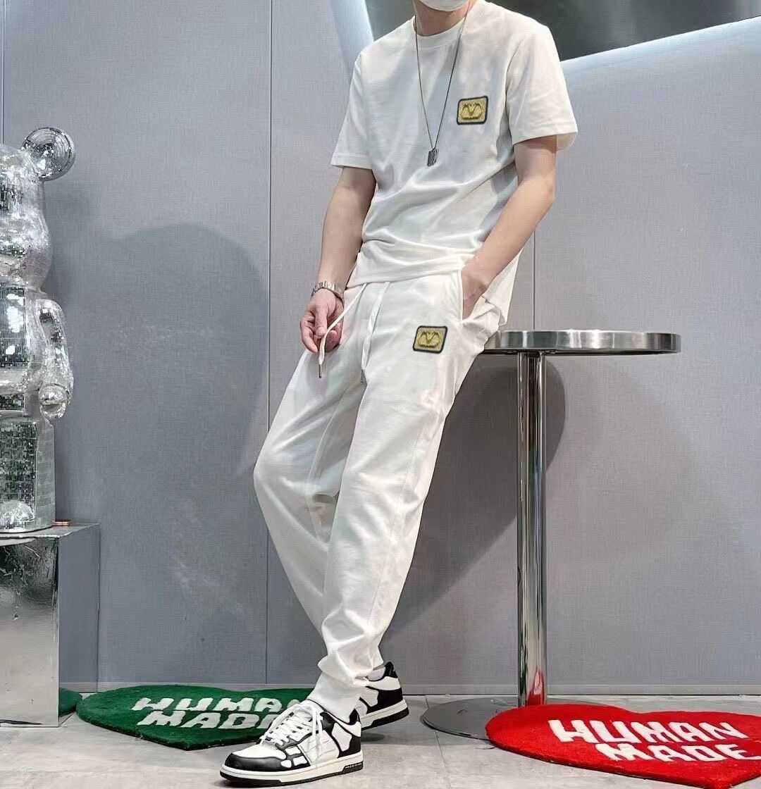 【VALENTINO】 (Good News for Big Sizes) 2025 Official Website Same Style. World-renowned Luxury Brand. Summer Men's (Double Mercerized) High-Quality Suit Set Uses Imported Original Fabric, Current Season Fashion Trend Style, Versatile Bestseller. Simple and Elegant, Precise Stitching, Lets You Stay at the Peak of Fashion. Sizes: M-5XL (Can Fit Up to 220 Jin)