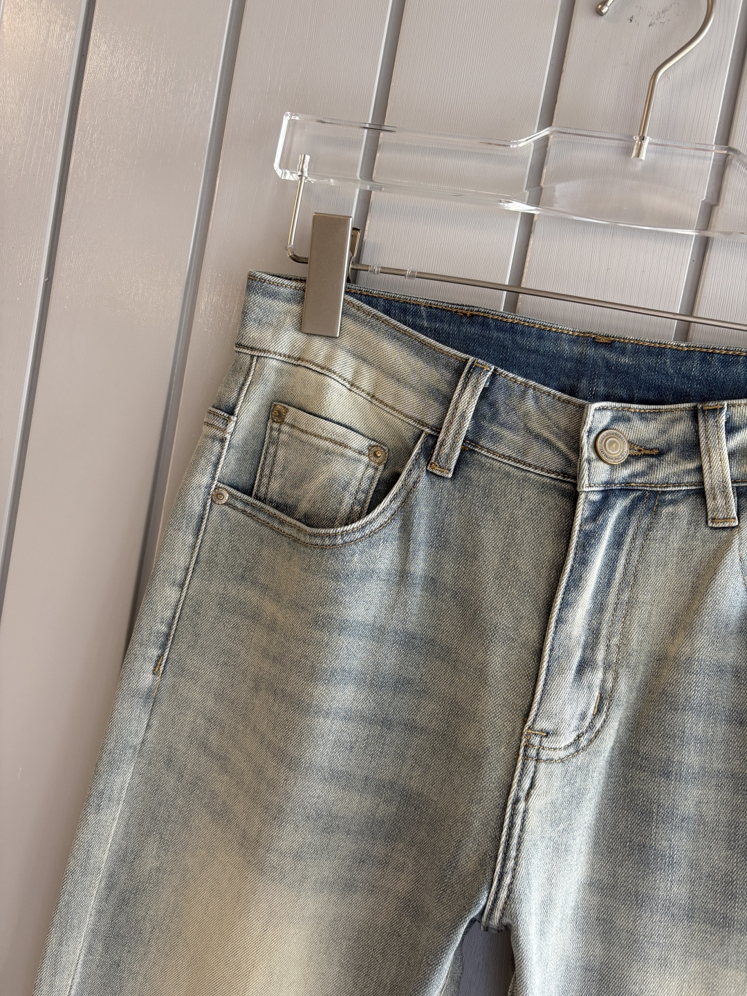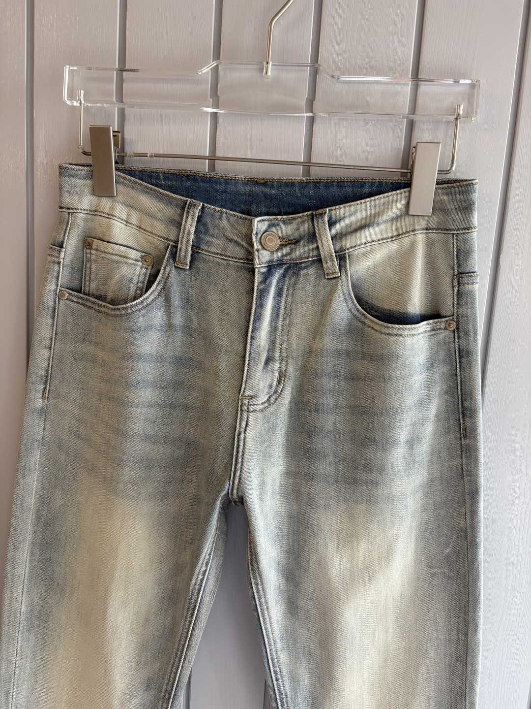 LV Thin Denim Jeans. 2025 latest style. 98% cotton, 2% spandex. Solid, slightly stretchy, comfortable. Simple design, hidden zipper, embossed pockets. Excellent fit.