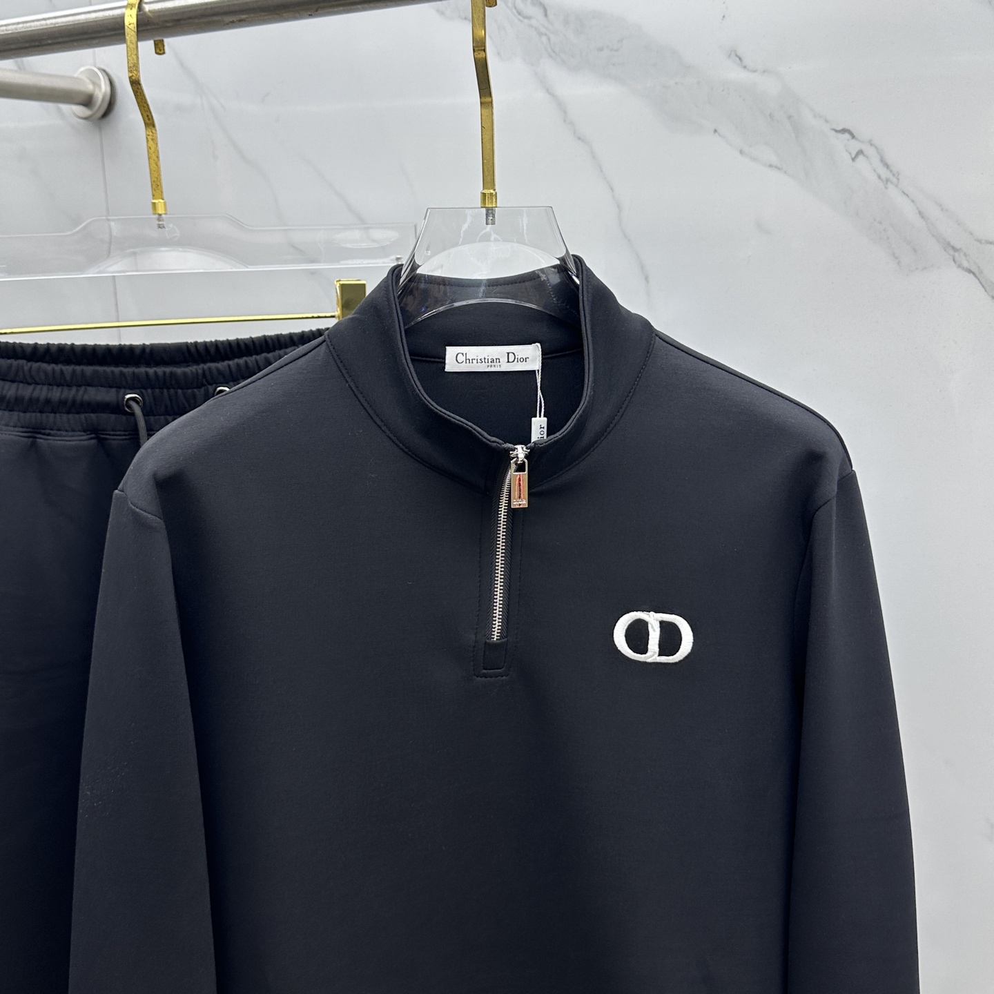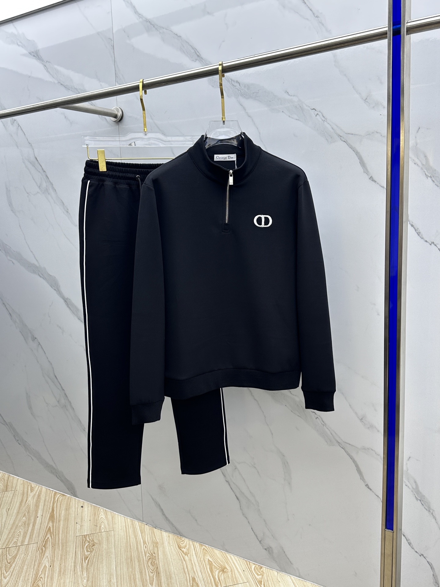 New Dior men's 2025 autumn/winter semi-zip collar set. Air-layer fabric, anti-pilling, durable. Classic logo, premium quality, imported custom thread. Sizes: M-3XL.