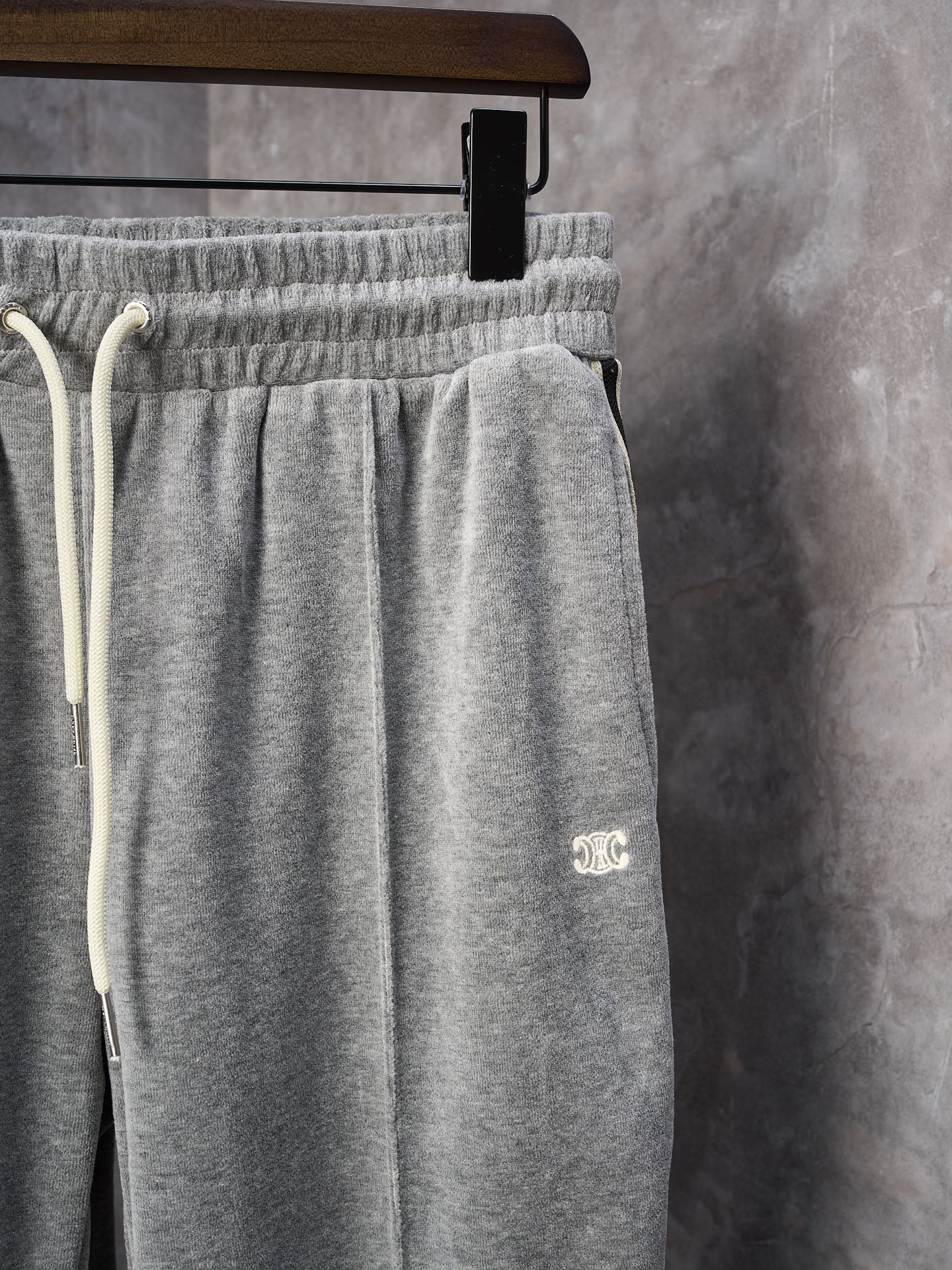 Physical hanging shot] Celine/Ash Misty Velvet Arc de Triomphe Embroidered Set Straight-leg Pants