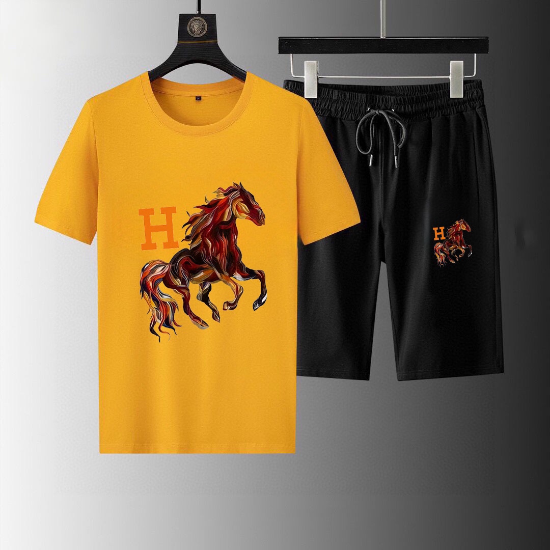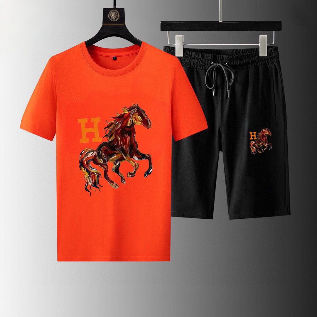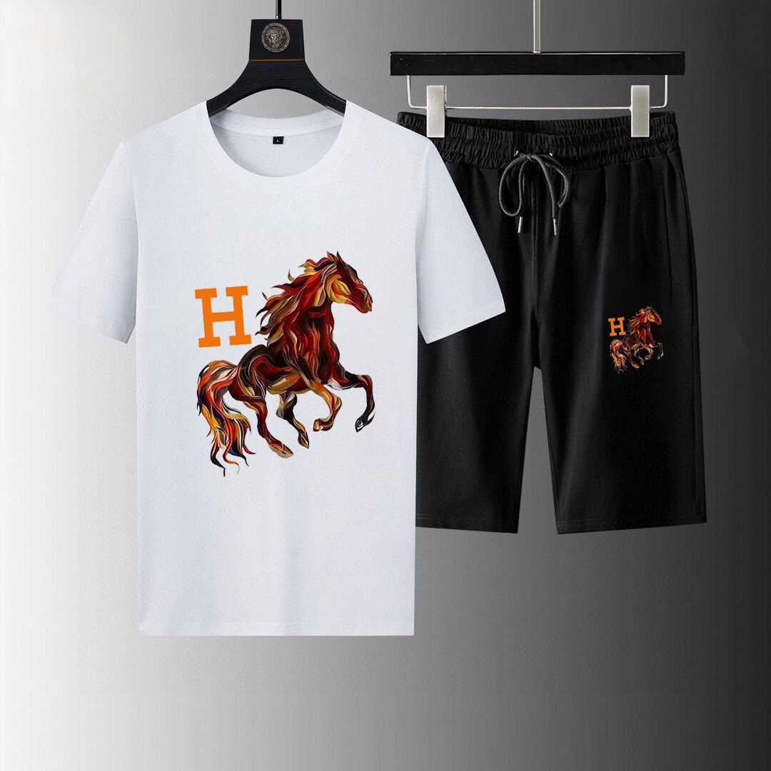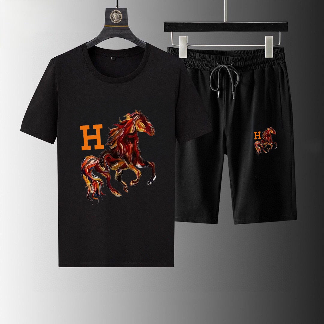 HERMES 2025 men's short sleeve and shorts set. High-end version, soft fabric, comfortable fit, 3D cut. Sizes: M-5XL.