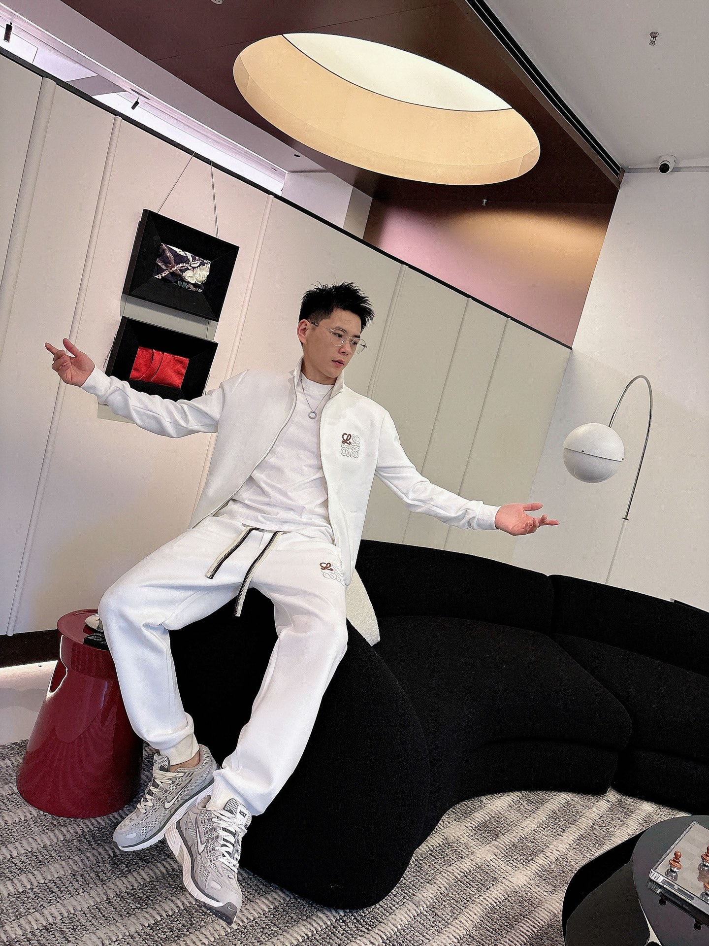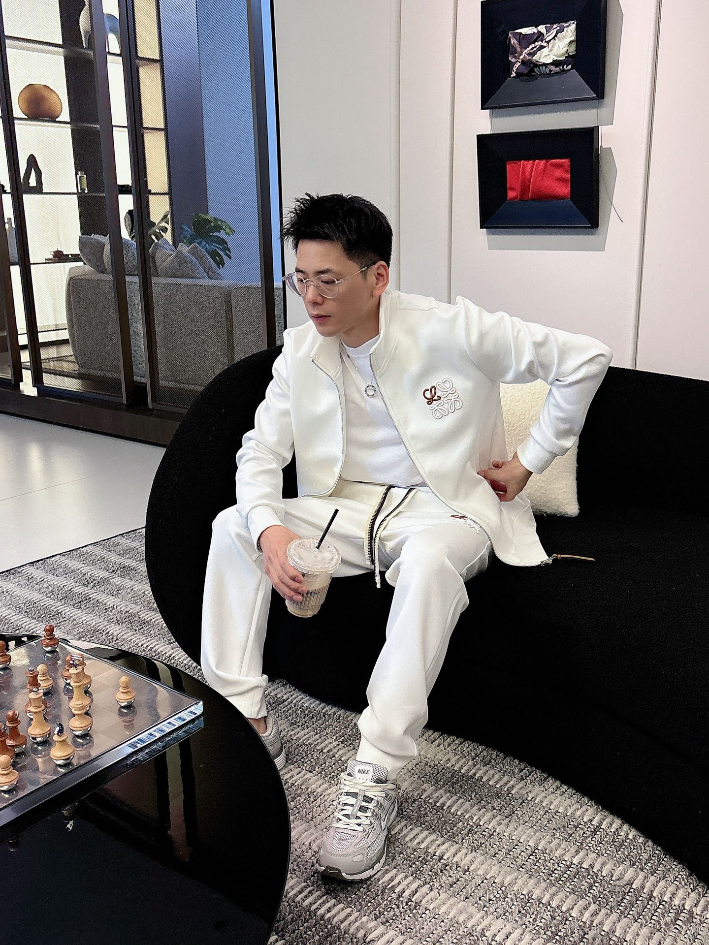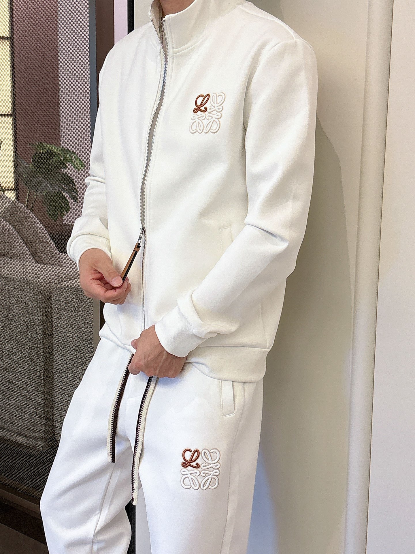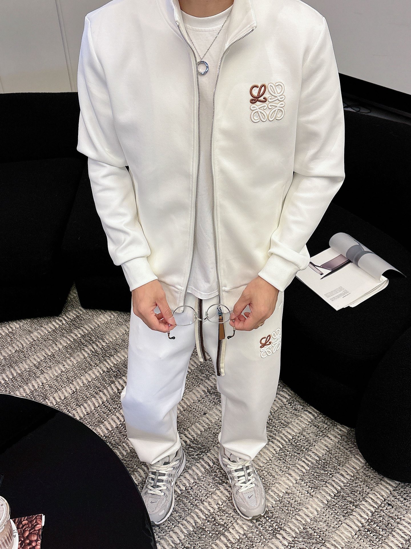 LOEWE 2025 newest knitwear set, 400g thickened air layer fabric. Heavy embroidery, classic letter pattern, trendy casual sweatshirt set. Colors: Black, White. Sizes: M-3XL.