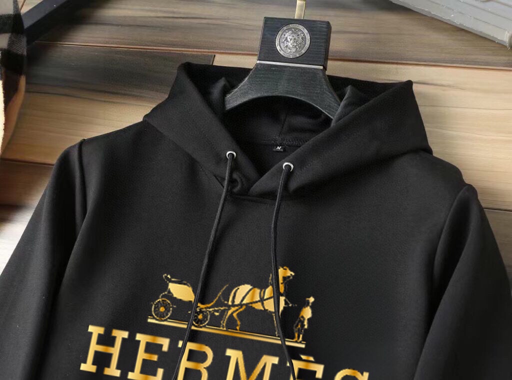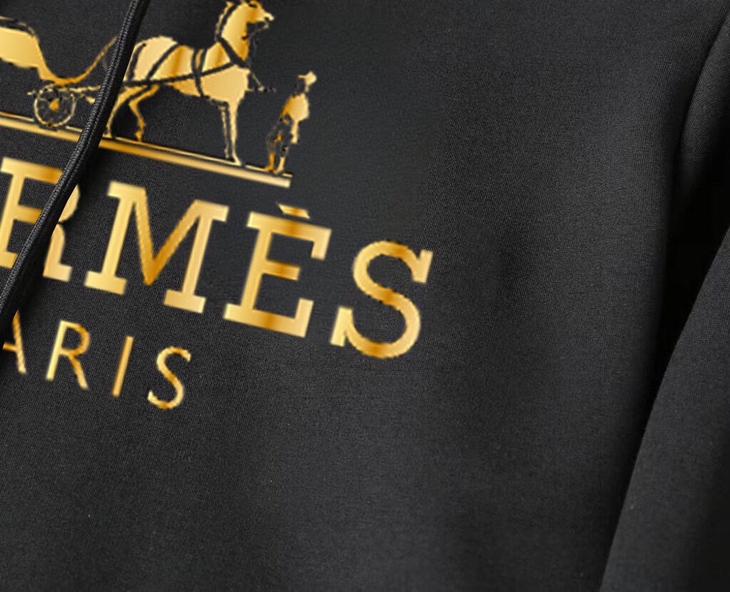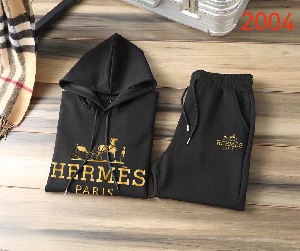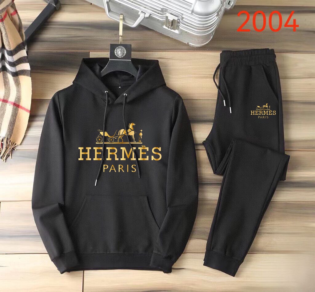 Hermes sweatsuit set: 2025 new designer styles, premium Roman cotton, comfortable fit. Sizes M-5XL, up to 220kg. Elegant and high-quality.