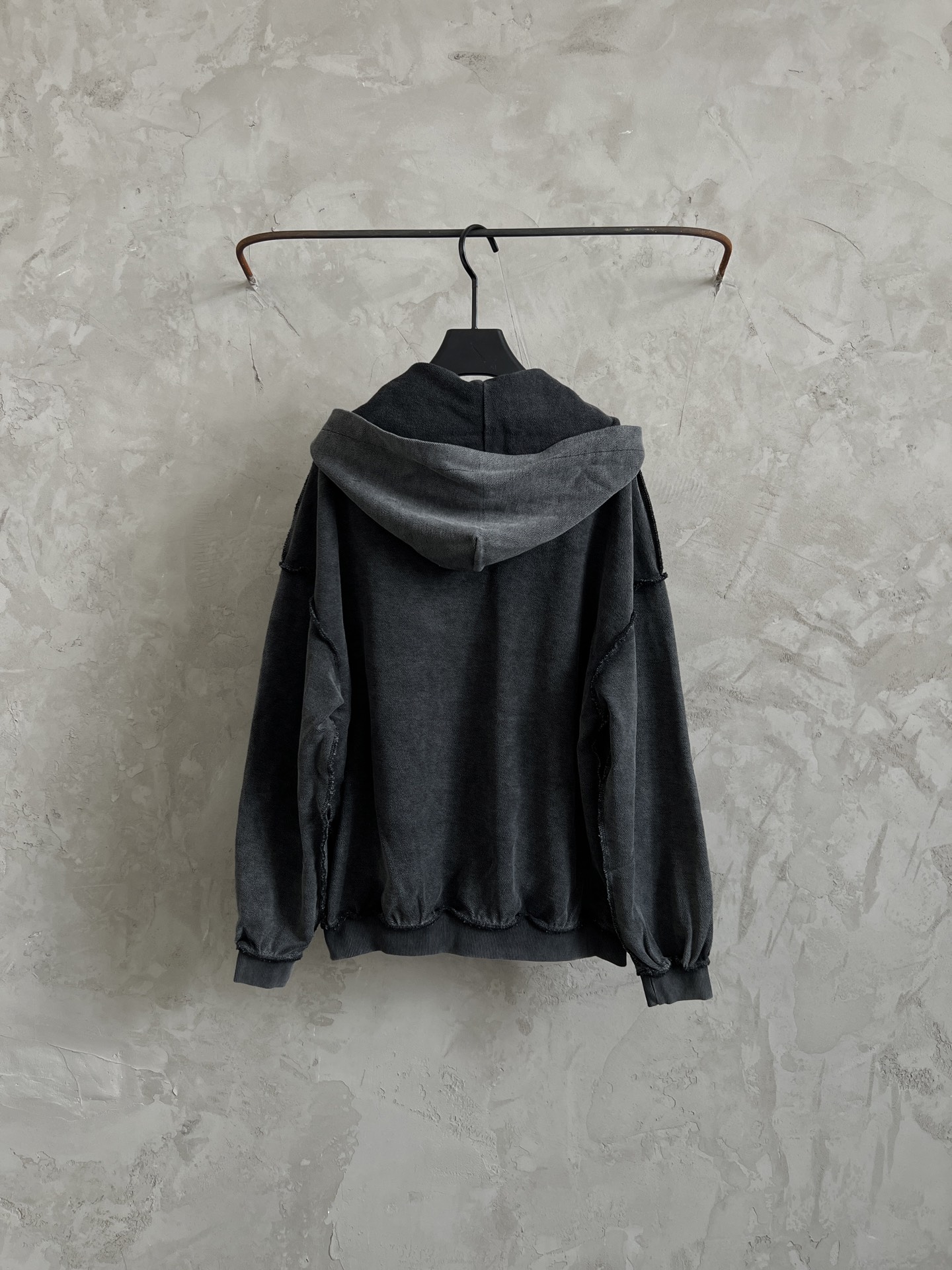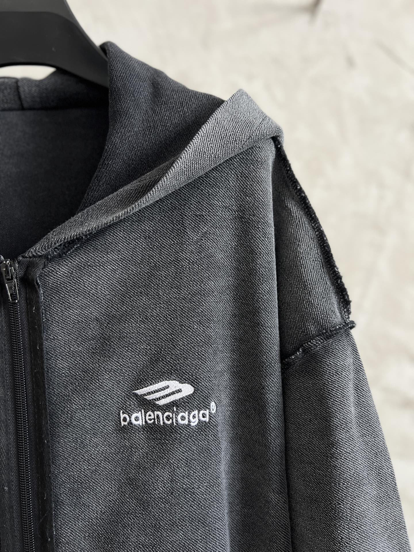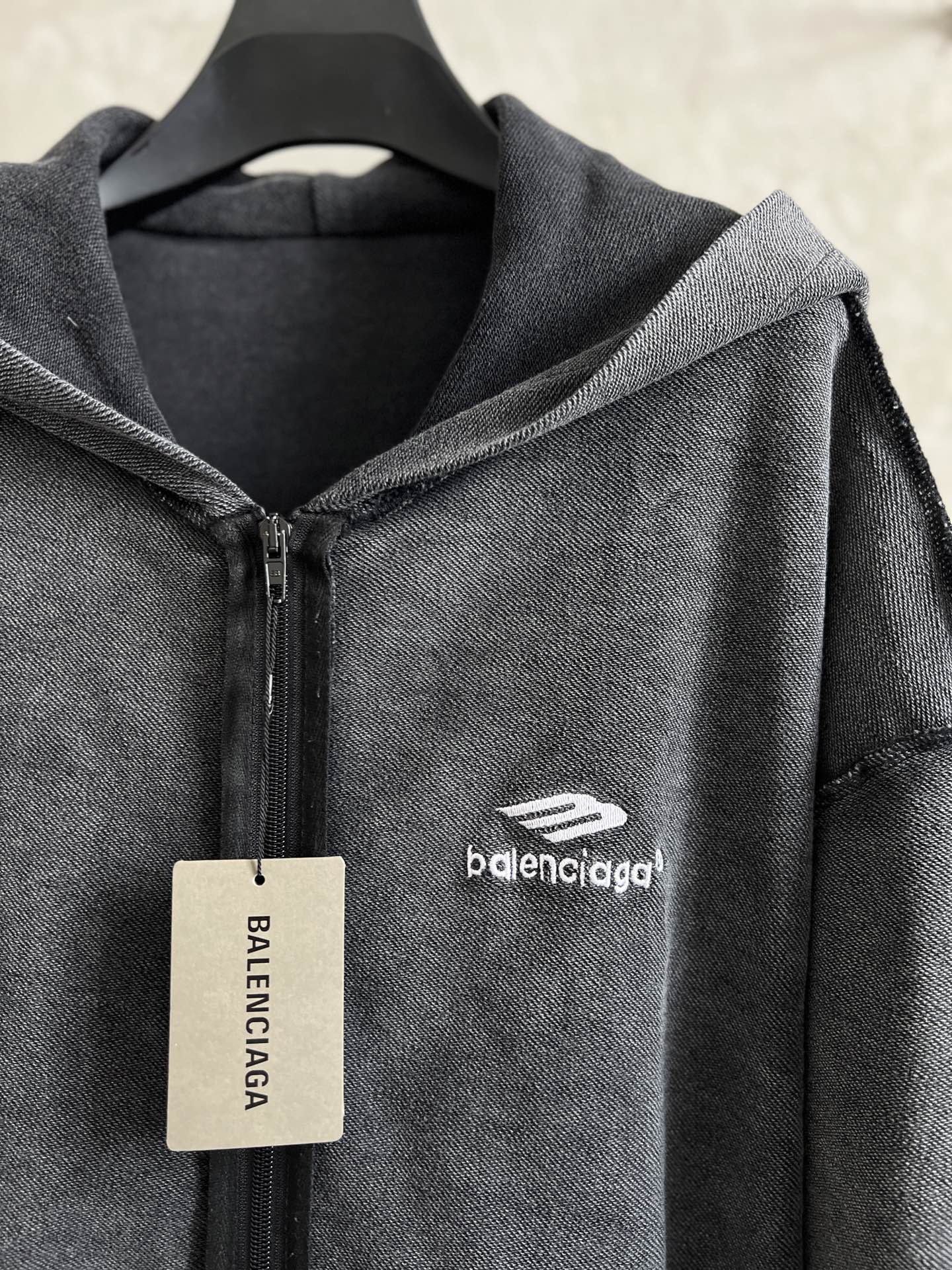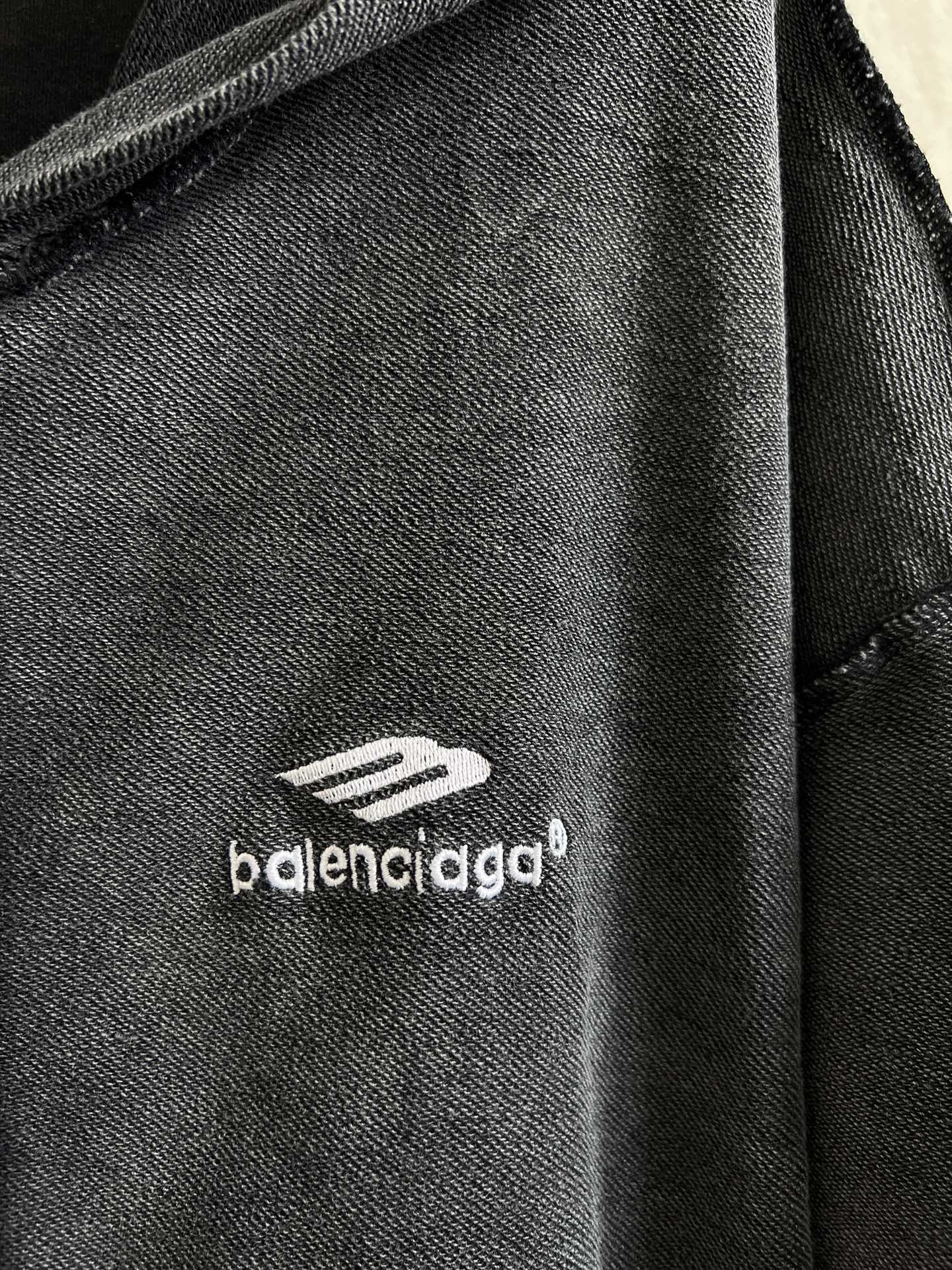 Balenciaga 25FW 3B Sports Icon distressed logo embroidery oversized hoodie & sweatpants set. Washed black, unisex, vintage look.