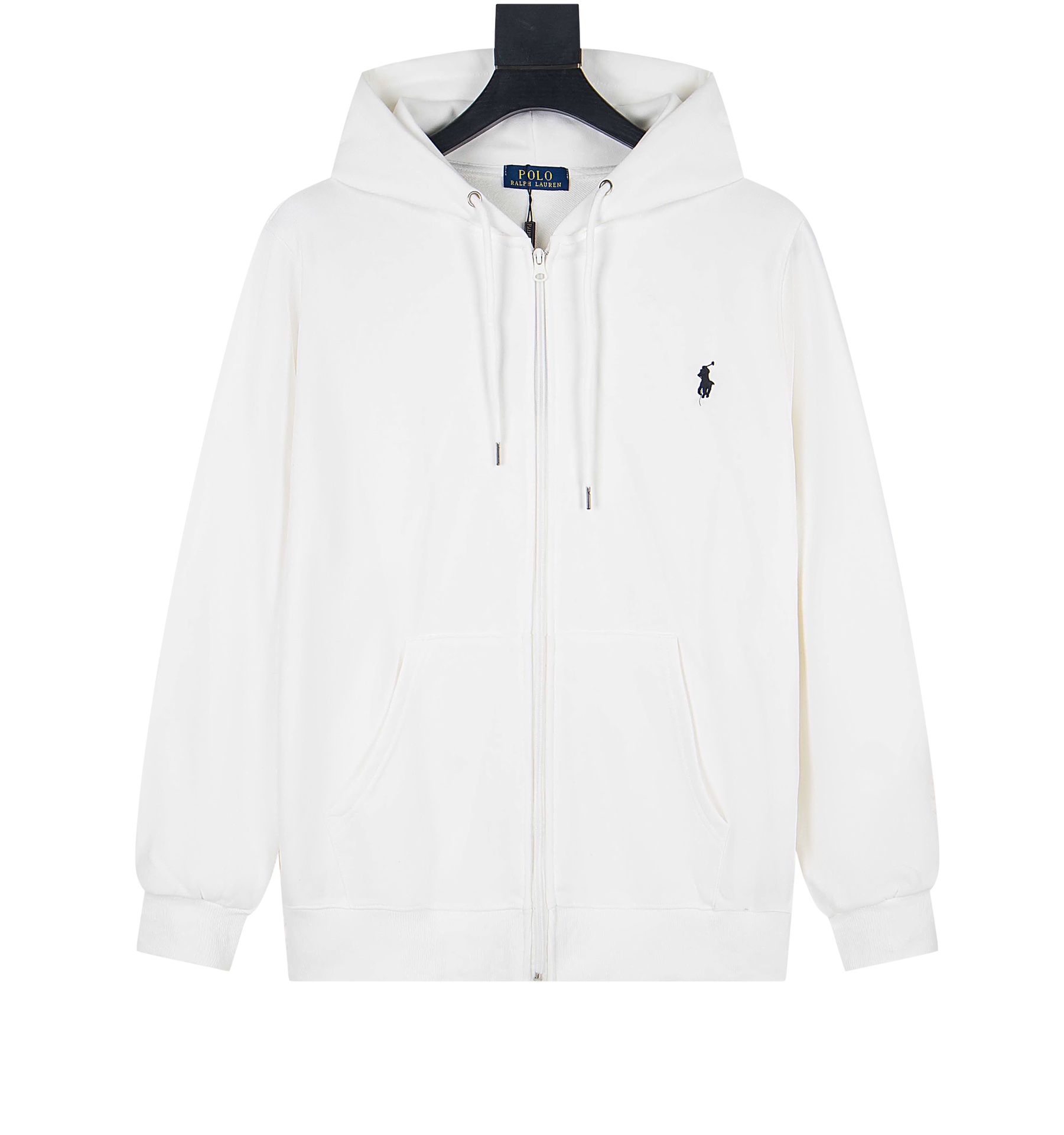 Ralph Lauren embroidered pony zip-up hoodie. New white color available. Made from high-quality pique cotton, relaxed fit. Sizes S-XL. Navy, black, gray, white.