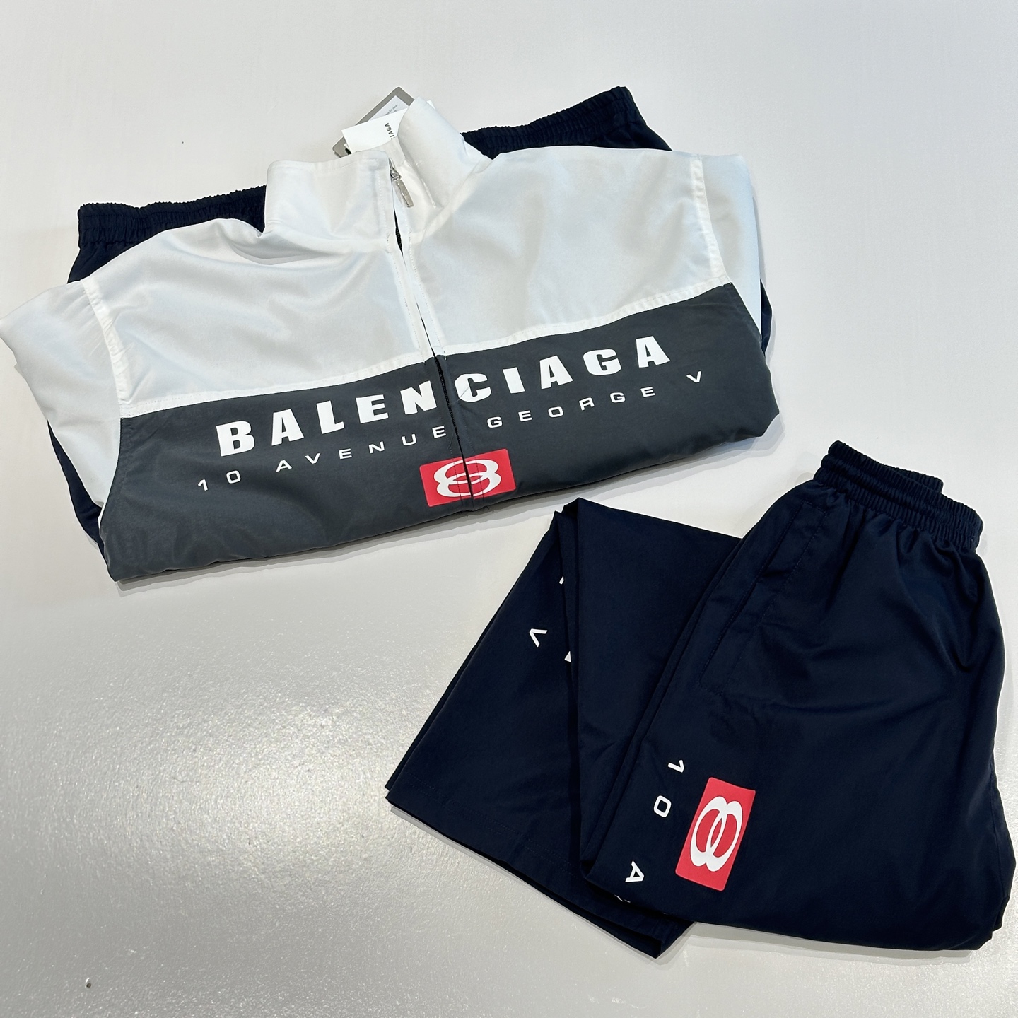 Balenciaga letter print set, loose unisex fit in black, blue, white. Sizes XS-S-M-L. Imported ink printing, pre-washed. 400g custom cotton, colorfast, wrinkle-resistant, breathable.