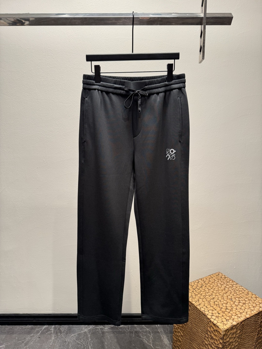 LOEWE 25SS straight-leg pants. Limited edition with 3D logo. Soft, wrinkle-resistant fabric. Elastic waistband. Colors: Black, Light Gray, Dark Gray. Sizes: M-3XL.