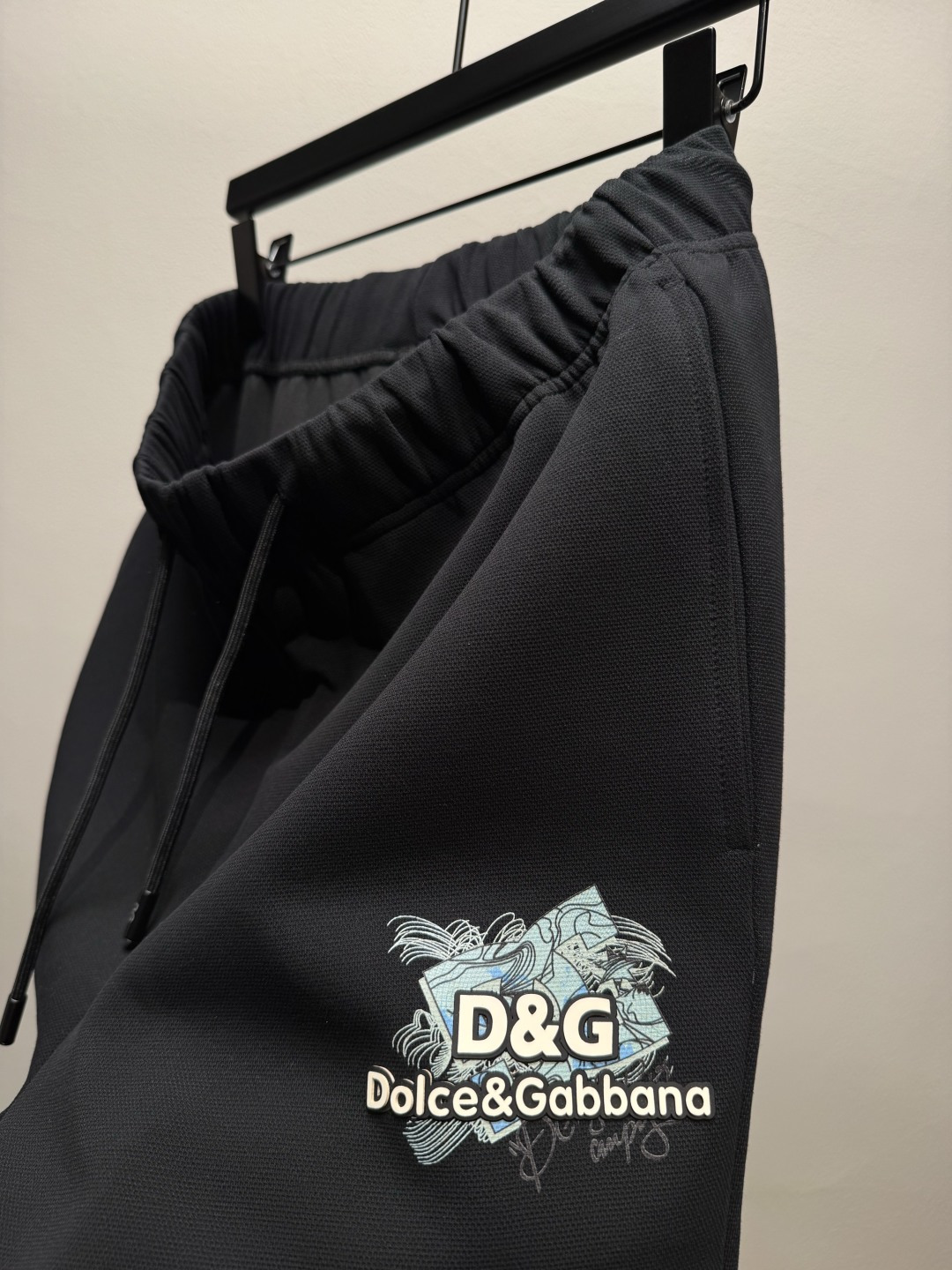 Dolce & Gabbana 25SS autumn/winter new sport Tencel set. Superb fit. Zippered top with D&G floral print, matching back. Elastic waist pants with prints, tapered ankles. 380g Tencel, soft. Colors: black, white. Sizes: M-3XL.