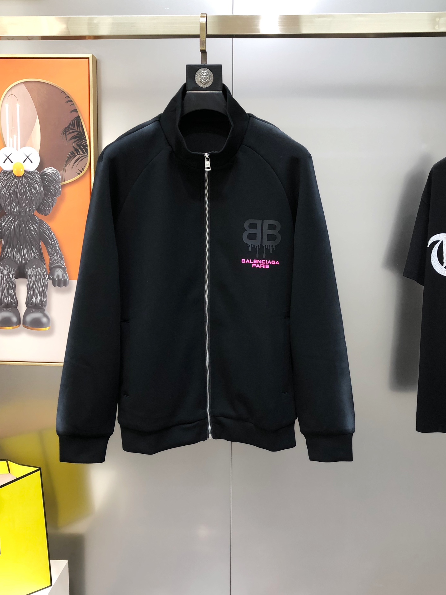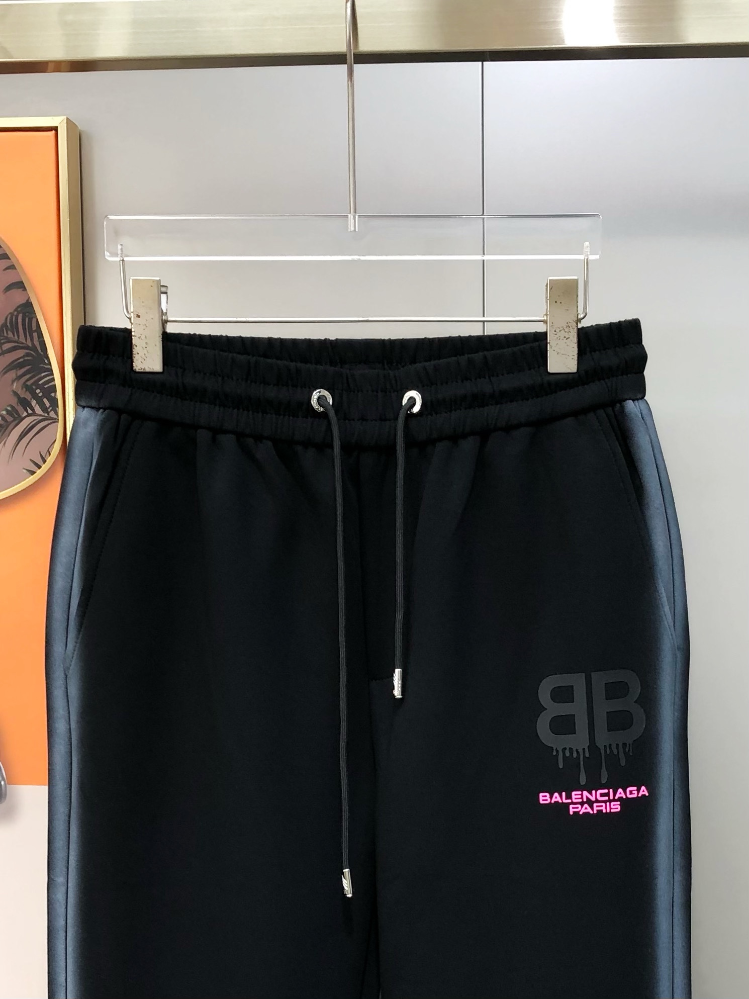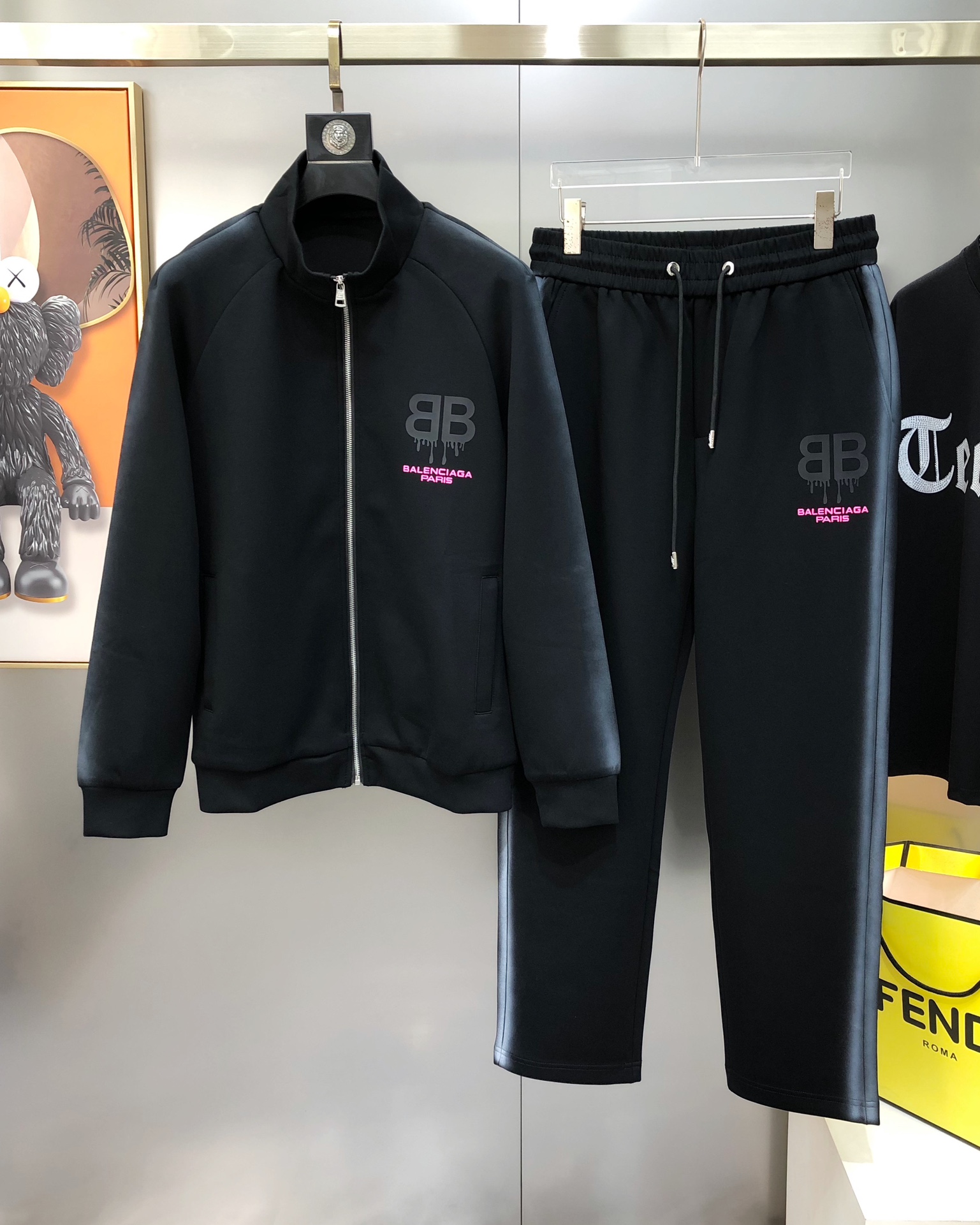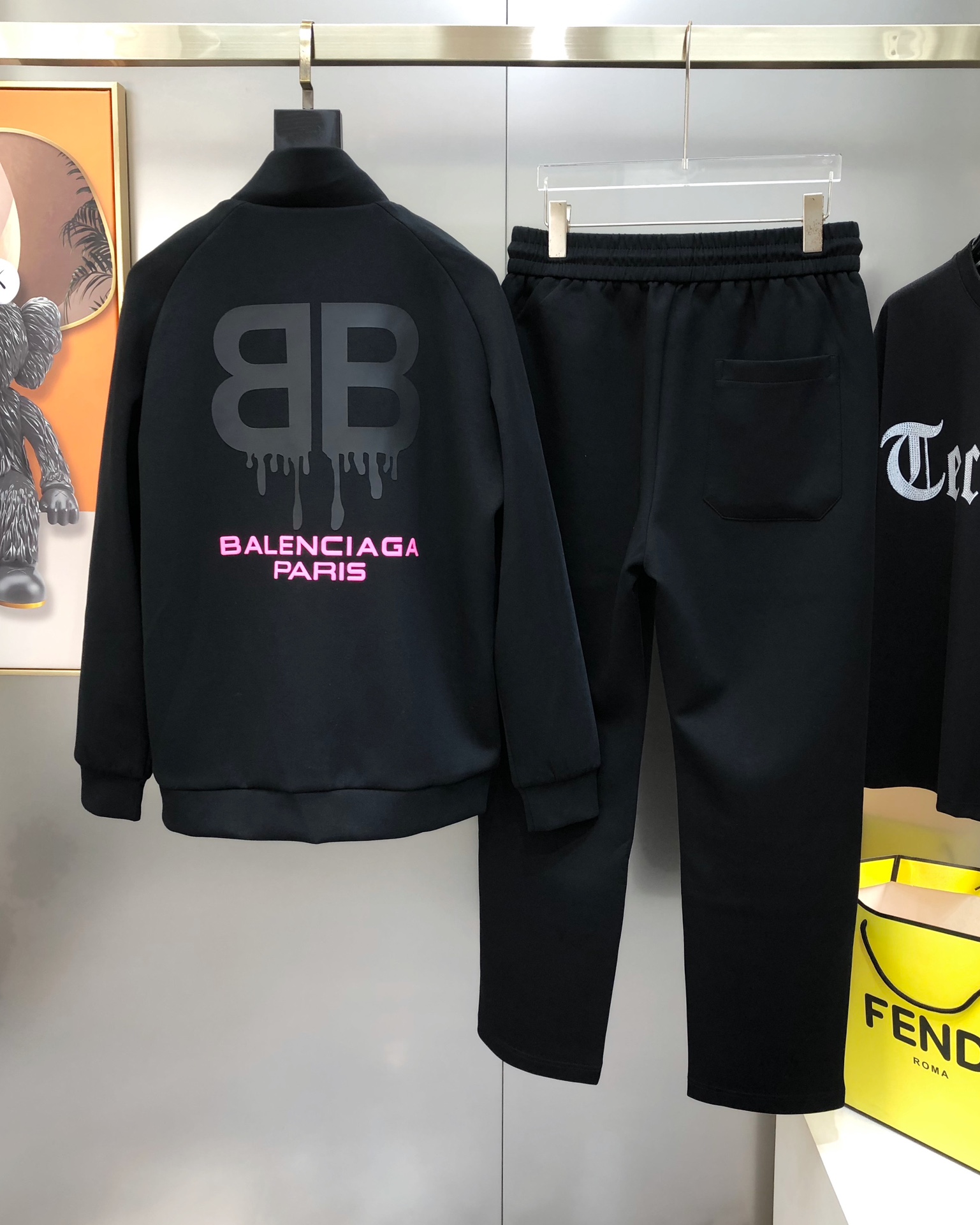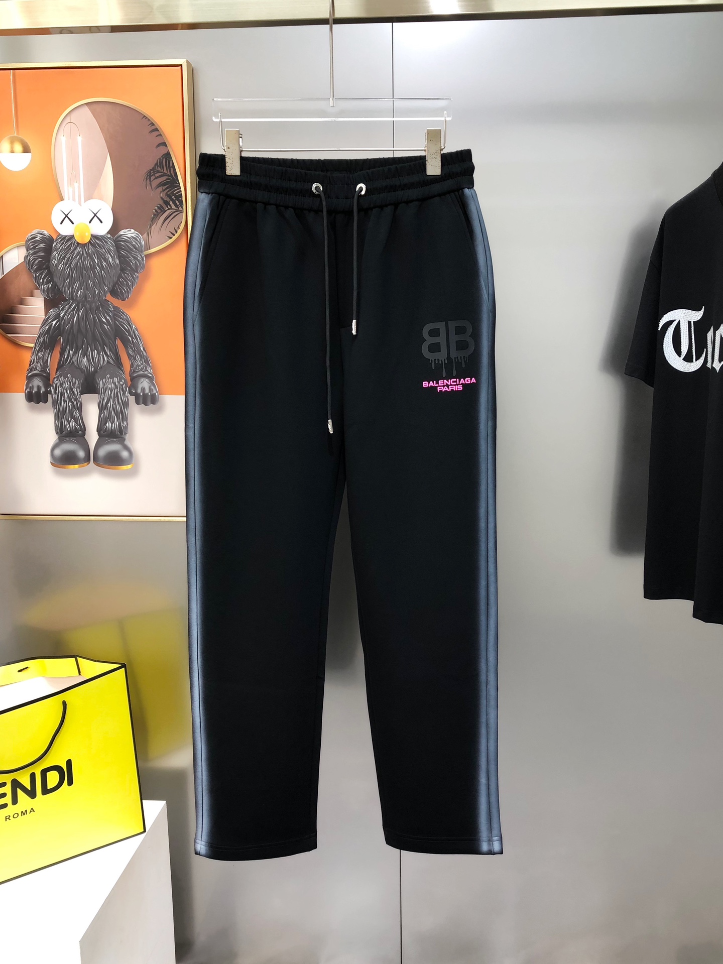 Bal*nciaga 2025 Fall/Winter Men's Casual Sportswear Set. Contrast gradient sides, 3D logo print, 100% cotton. Sizes M-3XL. Black.