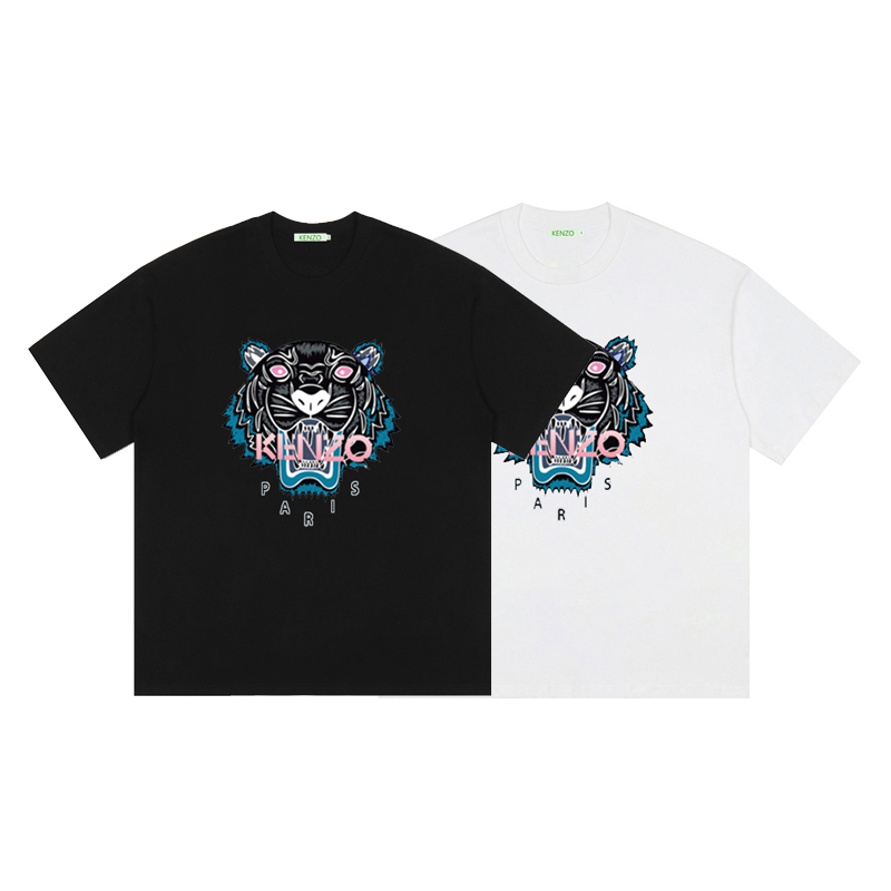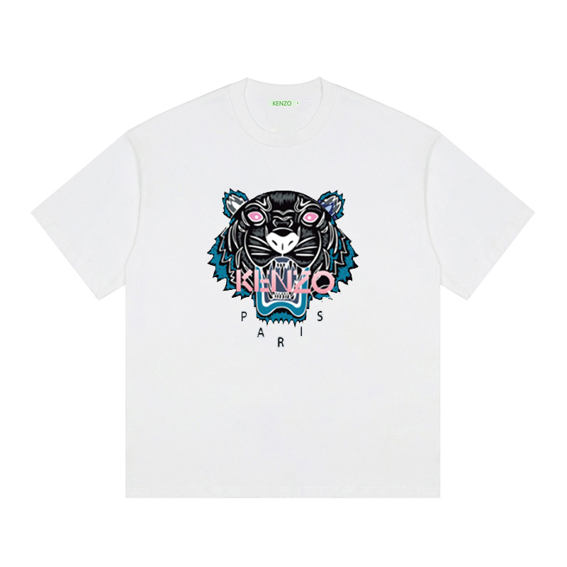 KENZO Tiger Head Print Round Neck Short-Sleeve T-Shirt