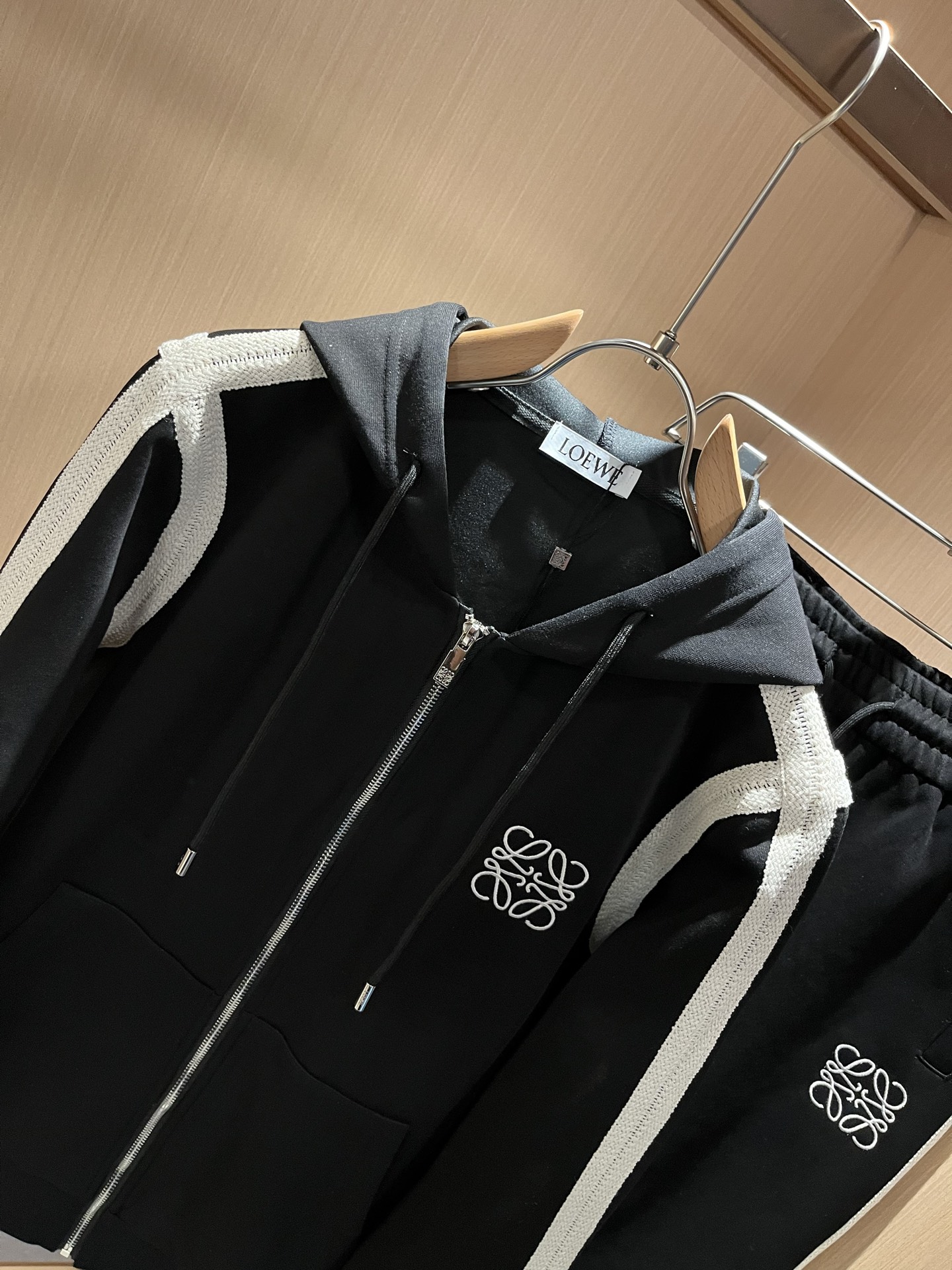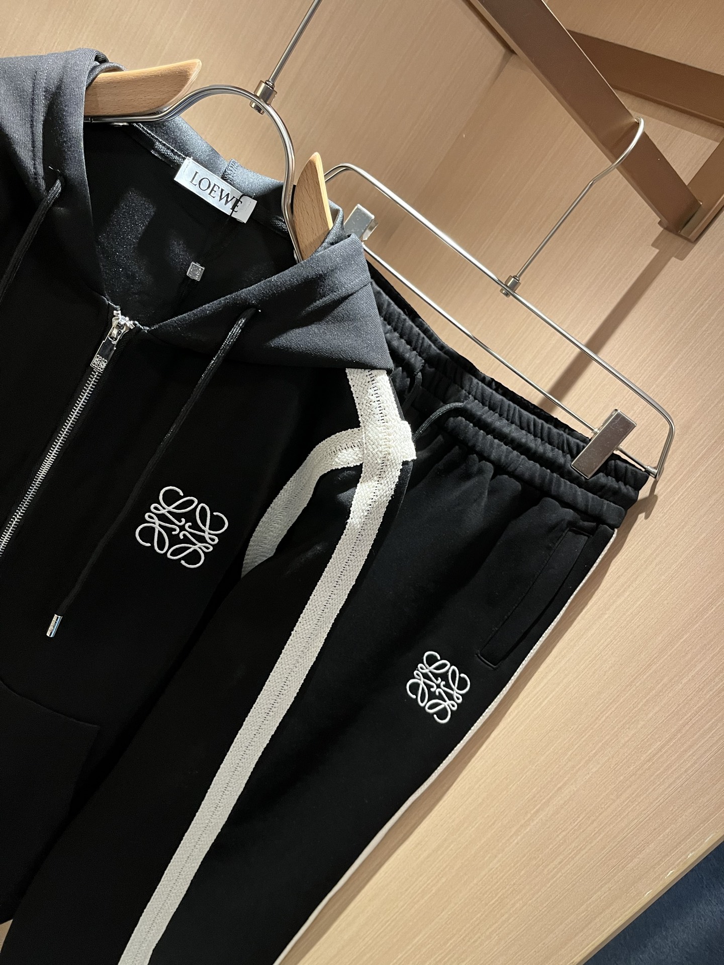 LOE*WE 2025 Fall/Winter unisex set. Italian factory order, custom cotton with embroidered logo. Trendy, high-end fashion item. Sizes: M-3XL.