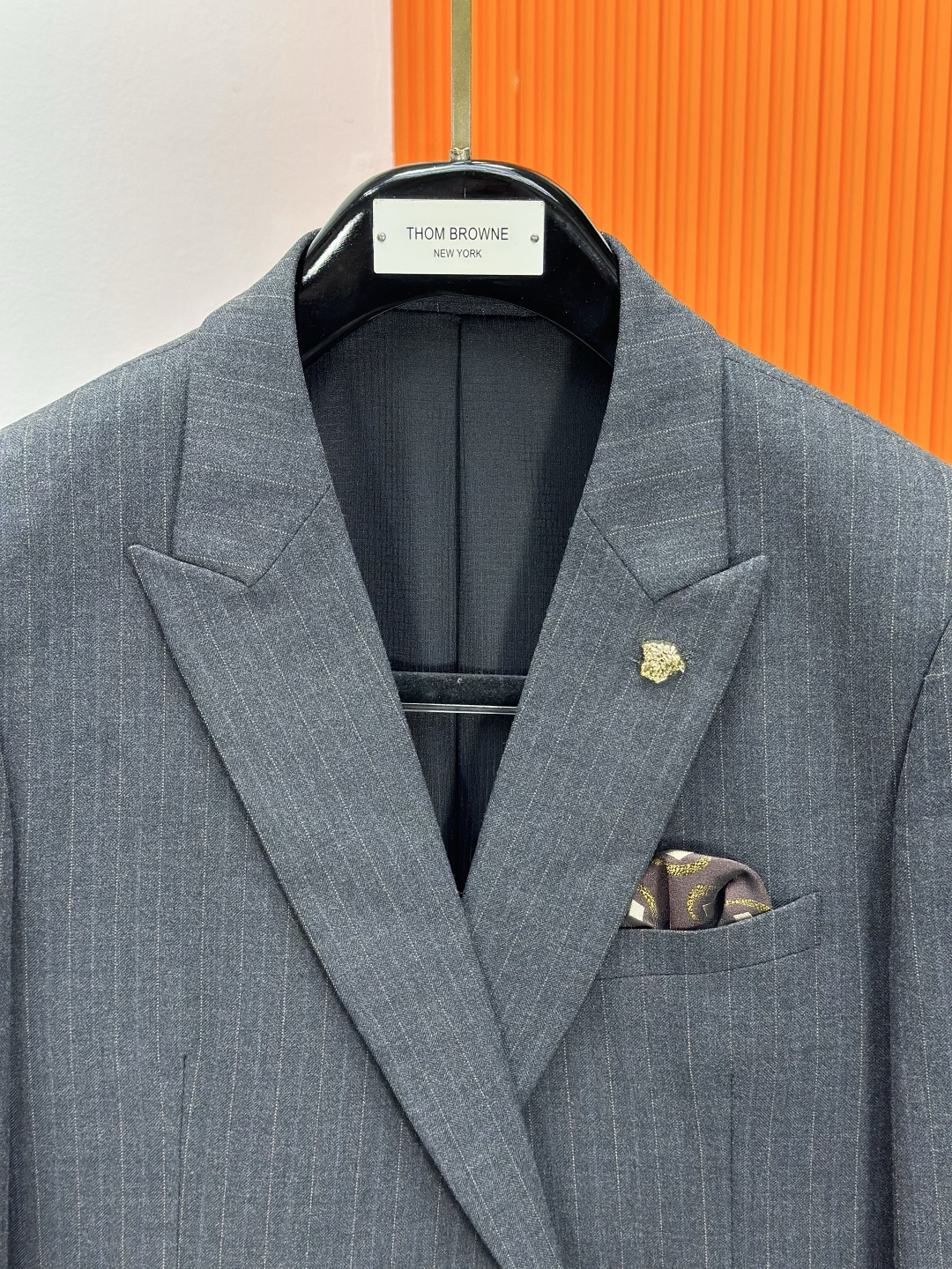 Versace 2025 casual business suit set. Modern clasp, classic lapel, custom logo. Sizes 46-56. Comfortable and stylish for various occasions.
